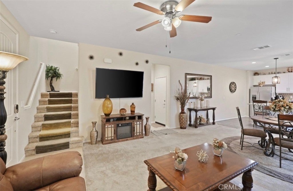 Welcome to this beautifully maintained three-bedroom, two-and-a-half bath home, built in 2022, and located in a desirable gated community in Perris. The open-concept kitchen features white cabinetry, quartz countertops, and stainless-steel appliances, seamlessly flowing into the main living area—perfect for everyday living and entertaining. The spacious primary suite offers a relaxing retreat with a walk-in shower and dual sinks. Additional highlights include an indoor laundry room, attached garage, The Quiet Cool system that cools the house without using AC amazing for Low energy efficiency, drop down water sprinkler system throughout the house. Residents enjoy resort-style community amenities, including a pool and spa, park, clubhouse, and outdoor cooking and barbecue areas. This newer home offers comfort, convenience, and a wonderful community lifestyle—don’t miss this opportunity!
