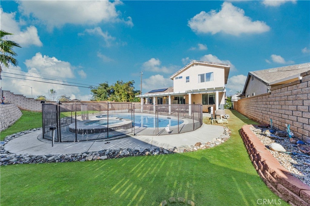 Schedule a private showing with the following link: https://calendar.app.google/WsuK8KYnL5jAVDXU7 A standout home in Yucaipa where major upgrades, dramatic space, and resort style outdoor living come together. This four bedroom, three bath two story residence welcomes you with tall ceilings and a wood burning fireplace, creating a warm and inviting living space. The layout is both functional and spacious, featuring a dedicated laundry room and an attached two car garage. The primary suite is a true retreat with a private en suite bathroom and a spacious walk in closet designed for comfort and privacy. The backyard is the showpiece of the home. Recently improved with new concrete in 2022, it offers a pool and spa, covered patio, fire pit, and custom outdoor bar added in 2023. Ideal for entertaining or enjoying Southern California living year round. Major improvements have already been completed, providing long term value and peace of mind. The home includes a new HVAC system installed in 2025, a new water heater in 2025, and new LG built in kitchen appliances installed in 2025 including a wall microwave and oven air fryer. Additional upgrades include new toilets installed in 2024, upgraded sink fixtures in 2024, a water softener system and swamp cooler. The property also offers accessibility features including door ramps, a stair lift chair, and shower grab bars, allowing flexibility for multigenerational living or enhanced mobility. Solar panels are leased and the buyer will assume the lease. Located in a quiet neighborhood in Yucaipa, this home offers comfort, upgrades, and lifestyle in one complete package. Homes with this level of improvements and outdoor amenities are rarely available. Schedule your private showing today. This property qualifies for a down payment grant up to 3.5%. Grant has No Income Restrictions, No Repayment Obligations and No First Time Homebuyer Requirement.