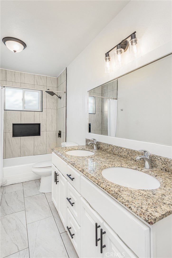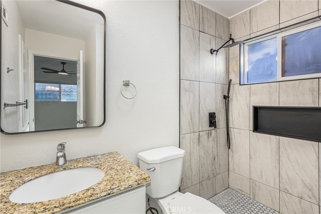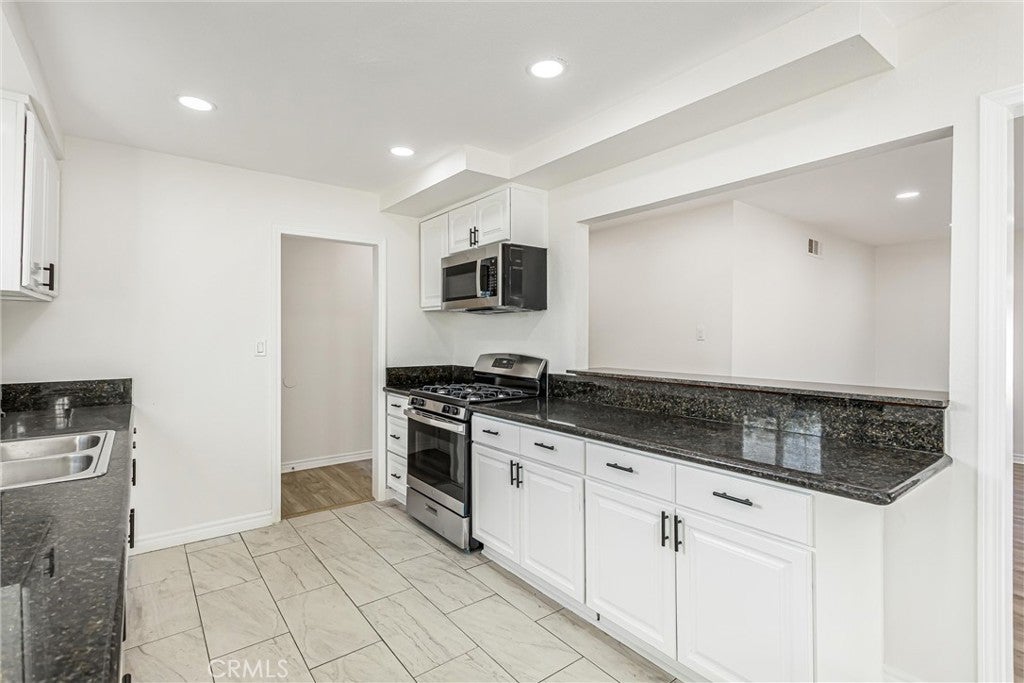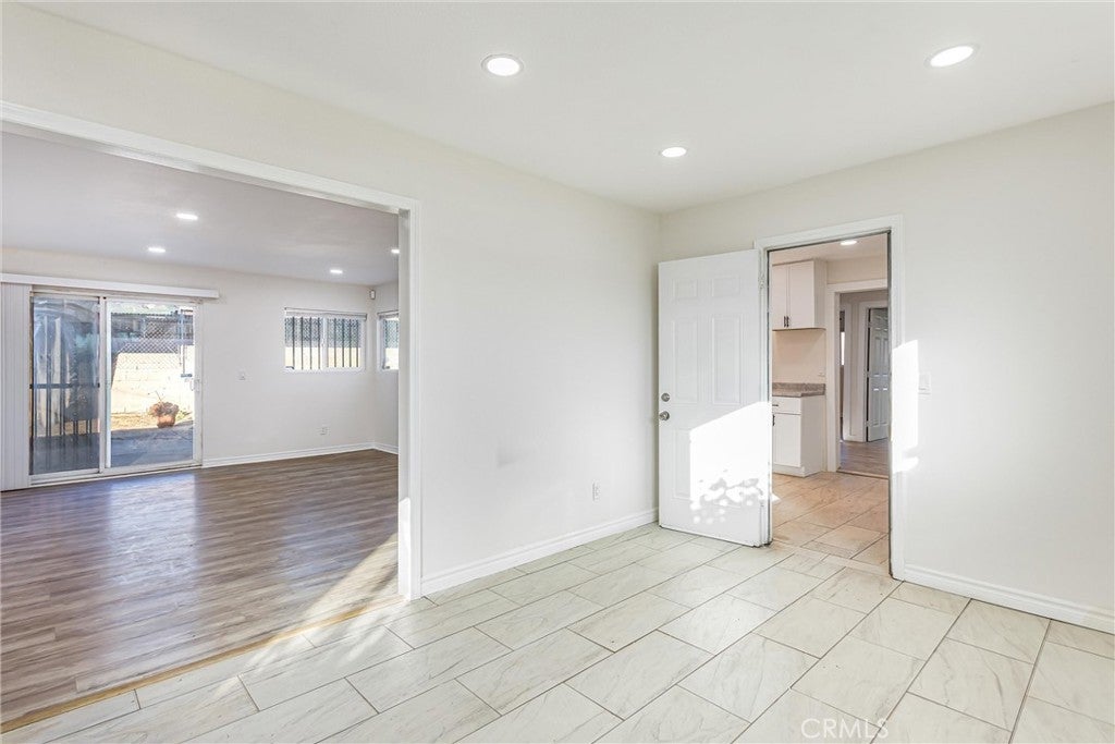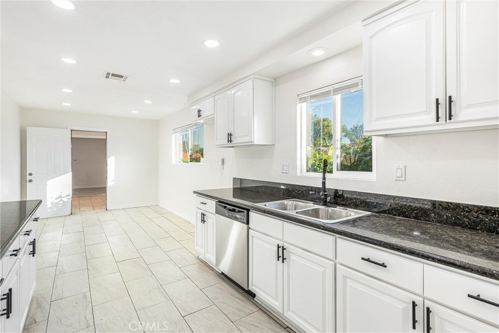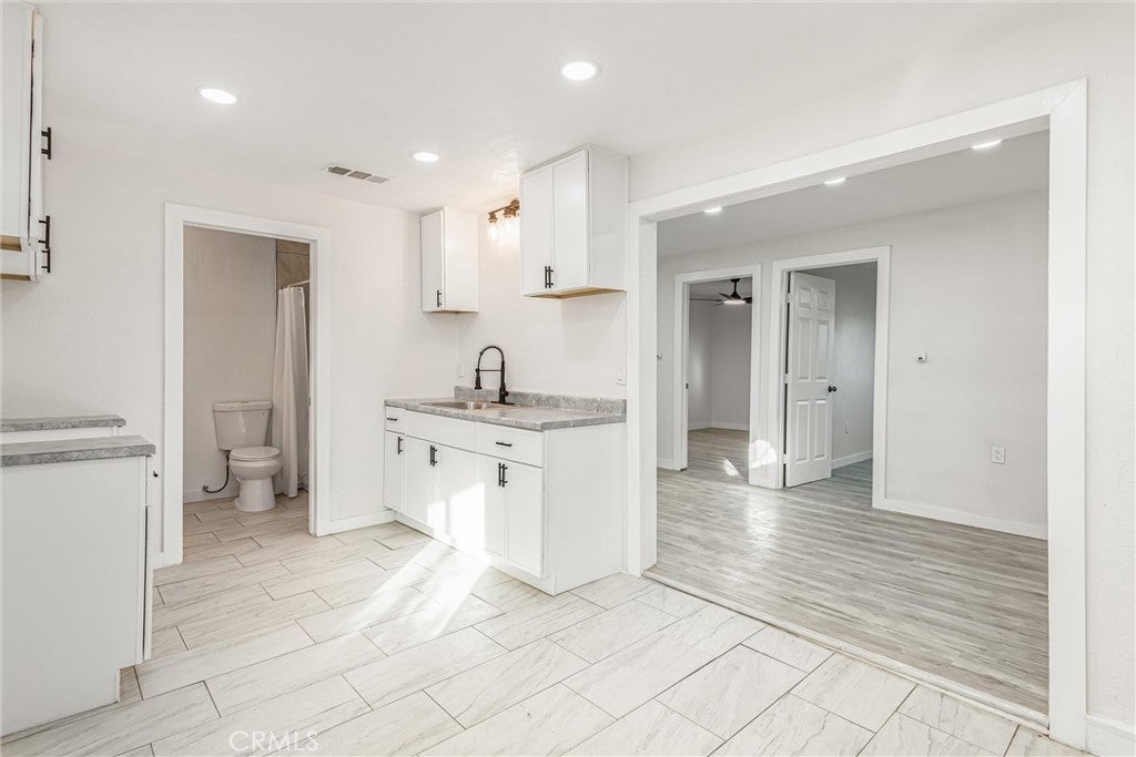 Freshly updated and move-in ready, this versatile 6-bedroom, 3-bathroom home offers exceptional flexibility with a highly sought-after attached and a 2-bedroom, 1-bath ADU—ideal for multigenerational living, extended family, guests, or potential rental income. The main residence features 4 bedrooms and 2 bathrooms, thoughtfully remodeled with neutral tile and laminate wood flooring throughout, creating a clean, modern feel. At the front of the home, the spacious kitchen impresses with dark granite countertops, a full suite of new stainless steel appliances including a gas range, microwave, dishwasher, and stainless sink, plus a generous dining area and breakfast bar counter. The kitchen opens seamlessly to the inviting family room, complete with a cozy gas fireplace and sliding glass doors leading to the backyard—perfect for everyday living and entertaining. Down the hall, you’ll find four nicely sized bedrooms. Three secondary bedrooms share a centrally located full bath featuring a double-sink granite vanity and an updated tiled shower/tub combination. The primary suite offers a peaceful retreat with a ceiling fan, dual closets, and a private en-suite bath featuring a granite vanity and a freshly tiled walk-in shower. The attached ADU is a standout feature, offering 2 bedrooms and 1 bathroom, its own private entrance, and optional access to the main home. The ADU features a dedicated kitchen area with sink and new cabinetry, offering space for a stove and microwave, along with a comfortable living area, a bathroom with a tiled shower/tub combination, and a centrally located laundry closet shared with the main home—creating a highly functional and flexible living space. Additional upgrades include fresh interior and exterior paint, new flooring throughout , recessed lighting, new ceiling fans, and tiled showers. Outside, enjoy a spacious, fenced backyard with a patio area and partial block wall surround. An additional fully fenced section of the yard features a brand-new painted wood fence and offers flexible use—ideal for storage, gardening, pets, or future possibilities. Centrally located with quick access to shopping, schools, and major freeways.