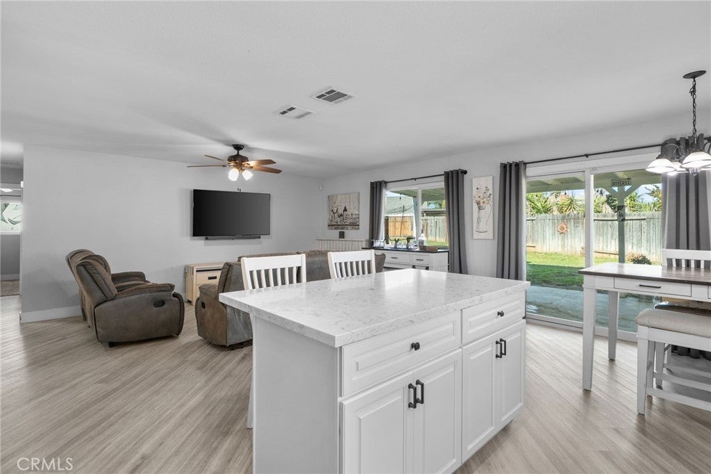Tucked away at the end of a cul-de-sac in lower Riverside, this tastefully updated four-bedroom home offers a comfortable and functional layout with room to make it your own. This single story home features rare RV parking on both sides of the property - providing exceptional flexibility for recreational vehicles, boats, and or additional storage. Inside, plank flooring flows throughout the home, paired with soft neutral tones and an open light-filled design. The kitchen is open to the family room, creating a welcoming central space ideal for everyday living and entertaining. It features quartz countertops, a center island, a deep sink, and clean finishes that blend seamlessly with the adjacent living area, where a cozy fireplace anchors the room. Sliding glass door leads to a generously sized backyard that feels open and full of possibility - perfect for gatherings, play, relaxation, or creating an outdoor space that brings your vision to life. This home is conveniently located and offers access to the 60 and 91 fwy with Riverside Airport, Van Buren Golf Center, Rutland Park nearby, and access to local shopping and dining making it an ideal choice for commuters while still enjoying the privacy of a cul-de-sac location. See it, love it, make it yours - schedule your private showing today!