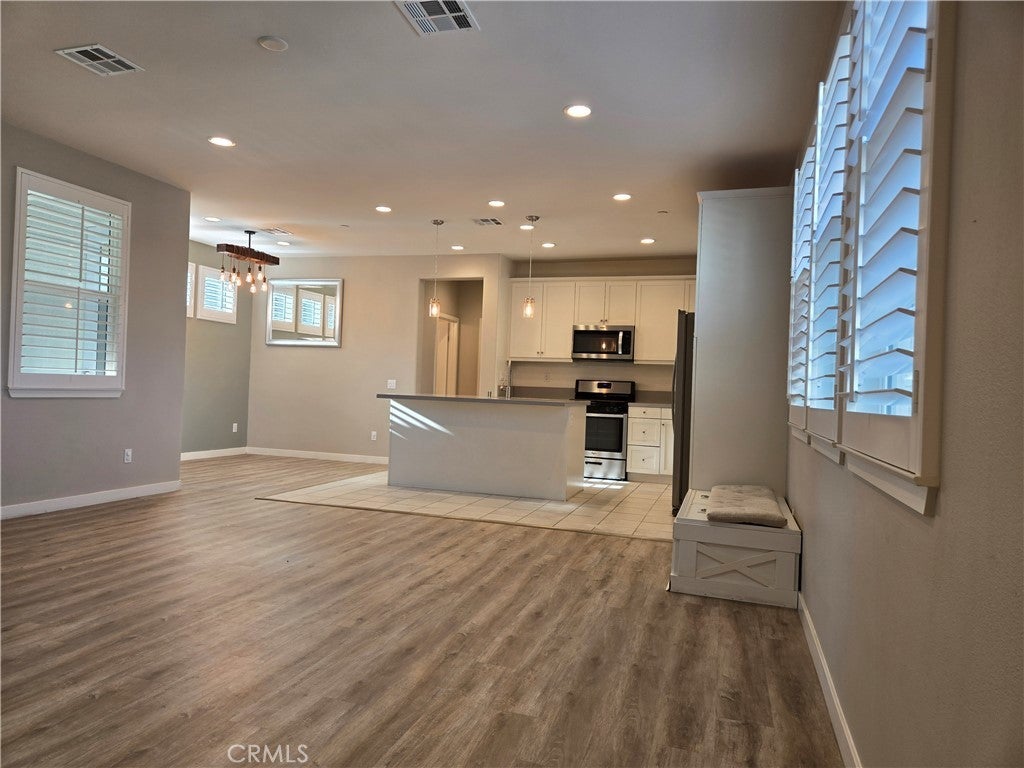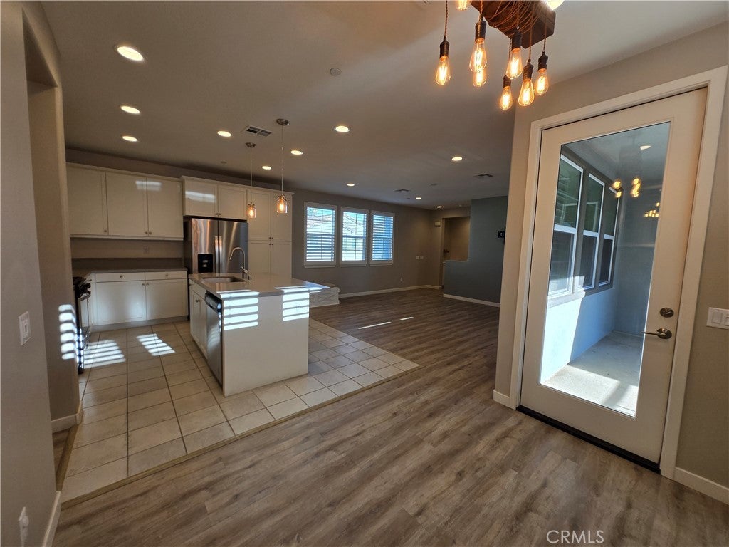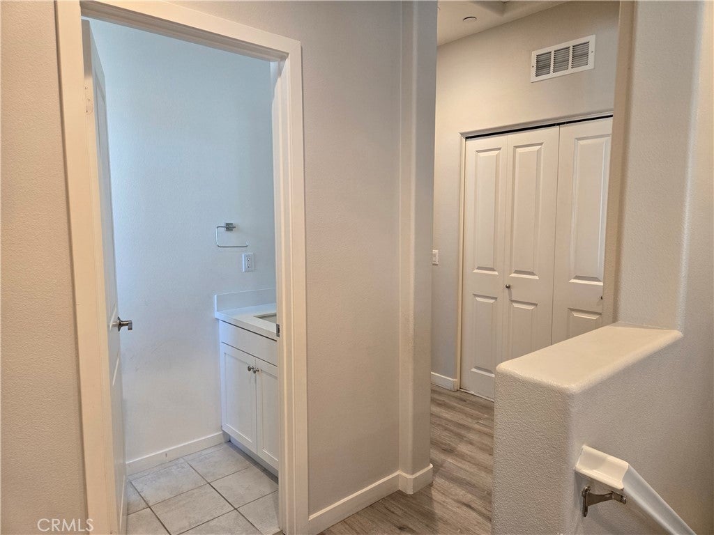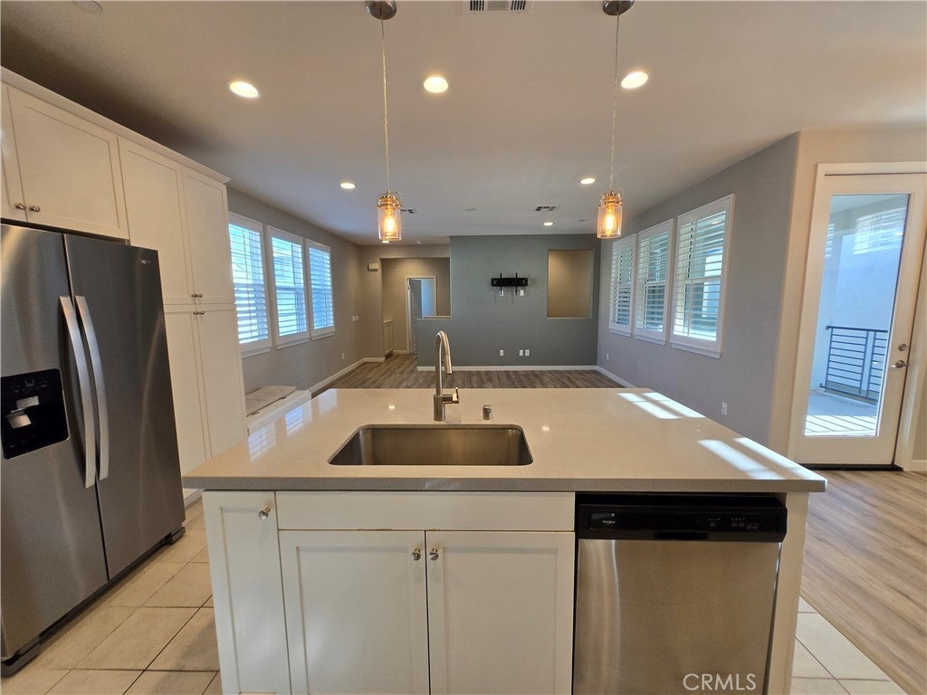 Come to enjoy the contemporary and resort lifestyle at The Resort Community in Rancho Cucamonga. This is a beautiful DETACHED condo individually located in the back line with no one above, down, or attached to you. The front entrance and attached 2-car garage are on the first floor. All the living spaces and bedrooms are on the 2nd level. The staircase is a work of art as you come in. Going upstairs, the living space in the middle and bedrooms are on each end. Wide-open floor plan with galore upgrades including custom paint, waterproof luxury vinyl flooring and modern lightings, etc. One powder room by the stairs for your guests. The gourmet kitchen has quartz countertop, large island, modern lighting, shaker-style cabinets and stainless steel appliances. The dining area leads to a cute private balcony. The right end is a large main suite with laminated wood flooring, a stylish barn door between the room and ensuite bathroom. The ensuite bathroom has a large walk-in closet and double sink vanity. The laundry closet is by the main suite. The left end is two bedrooms with brand new carpet and one full bath. The Resort Community amenities include a clubhouse, pool, Jacuzzi, yoga room, recreation and game plaza, fitness center, outdoor lounge, kitchen, BBQ, large and small dog play areas, business center, cabana, bocce ball court and ping-pong tables. The new modern, healthy and happy living is waiting for you!