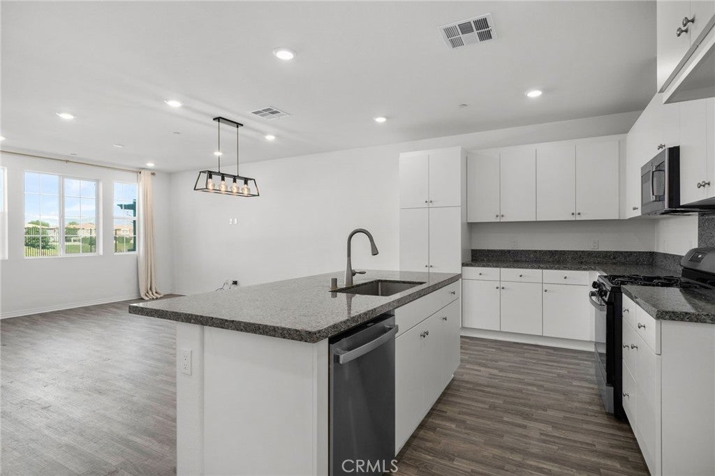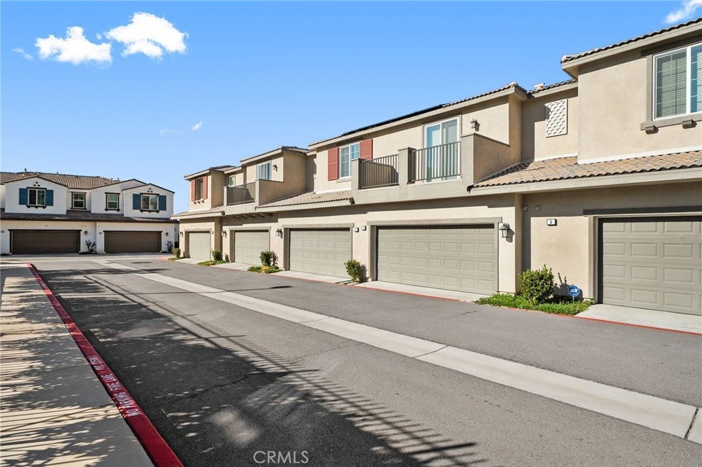 This beautifully upgraded Lennar home, built in 2022, offers 2 bedrooms and 2.5 baths in the highly desirable, gated Aspen Hills community of Moreno Valley. A charming gated courtyard porch welcomes you in, setting the tone for the thoughtful design found throughout the home. Inside, the main level features a spacious family room and a designated dining area that flows seamlessly into the modern kitchen, complete with a large island—perfect for everyday living and entertaining alike. Large windows fill the home with natural light and frame peaceful views of the community lake, creating a calm, open atmosphere that feels like a private retreat. A convenient half bath downstairs adds everyday functionality for guests while maintaining the privacy of the upstairs living spaces. Upstairs, the home features dual primary suites, each with its own en-suite bath and separated for maximum comfort and privacy. One bedroom includes a generous walk-in closet, while the other offers a private balcony with views overlooking the community pool. An upstairs laundry room adds to the home’s practical and efficient layout. The design is modern yet warm, efficient yet spacious, with paid-off solar providing energy efficiency, comfort, and long-term savings. Residents of Aspen Hills enjoy a resort-style lifestyle with access to a pool and spa, playground, scenic walking trails surrounding the private lake, parks, and a spacious community center—all within a secure, gated setting. Ideally located near shopping, dining, entertainment, and Riverside City College, this home offers the perfect blend of convenience, comfort, and serenity.