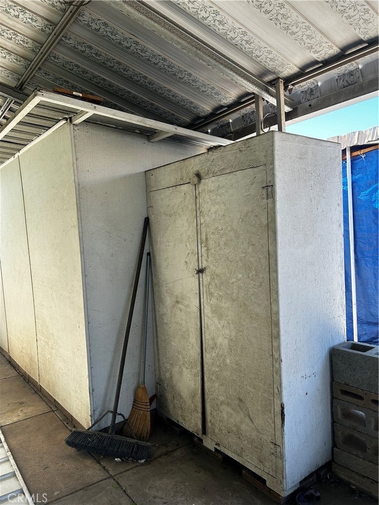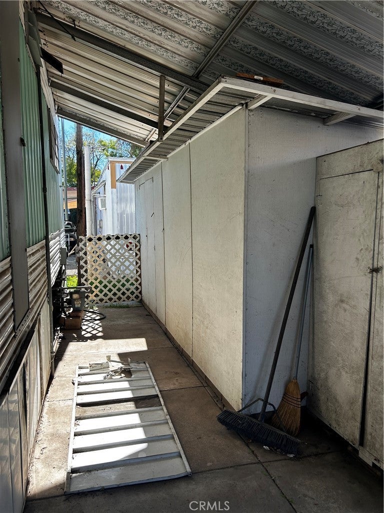 This home is located in a very clean, well-maintained park. Age specific for seniors (55+) park. This home has an expando bedroom. The two good-sized bedrooms have built-in closets and shelves for storage and have been newly painted. It has new vinyl flooring throughout the home. Open floor plan with living room and kitchen. Lots of natural light from the many windows in the living room. There is a built-in stovetop and oven, refrigerator stays. Washer and dryer located in the screened-in porch area also included. Sliding doors for entering the living room and one of the bedrooms are off the porch. The bathtub has been reglazed and there is a corner shower in the spacious bathroom. The water heater is new. Unknown age of the roof; however, there are no leaks after all the rain we have experienced. It has central air & heating plus an evaporative cooler in the living room, keep or remove as you like. For the handyman in you, there is a workshop at the end of the carport where you can store your tools and/or make things. The carport has parking for two vehicles. The park has storage for your RV and other toys. Affordable space rent. Sold AS-IS.