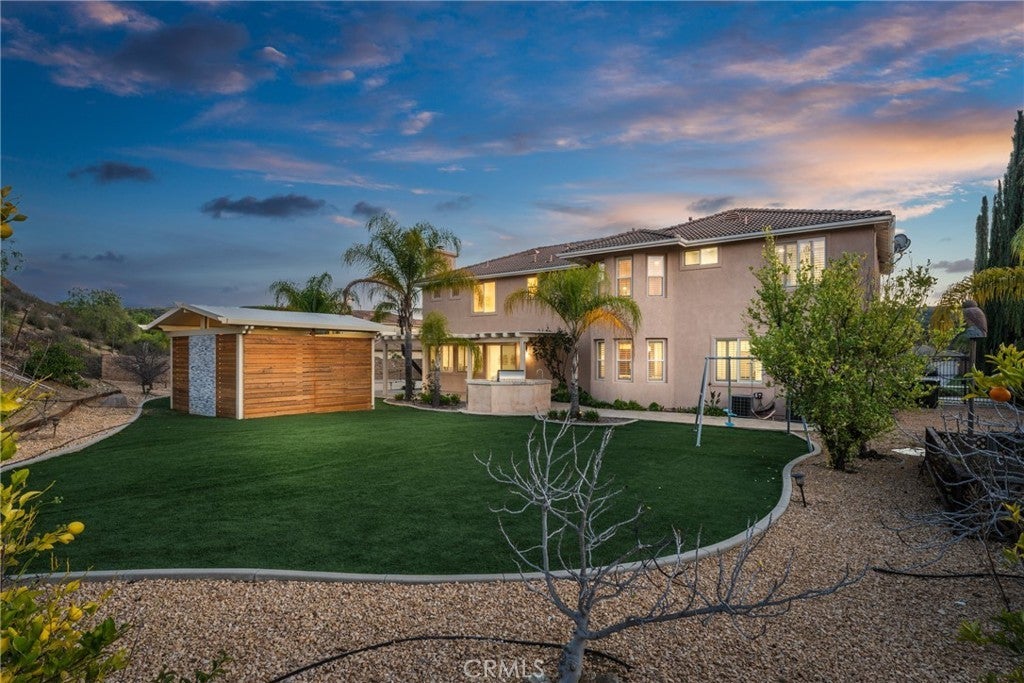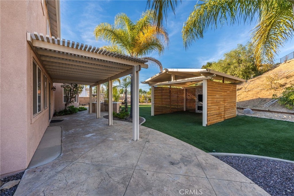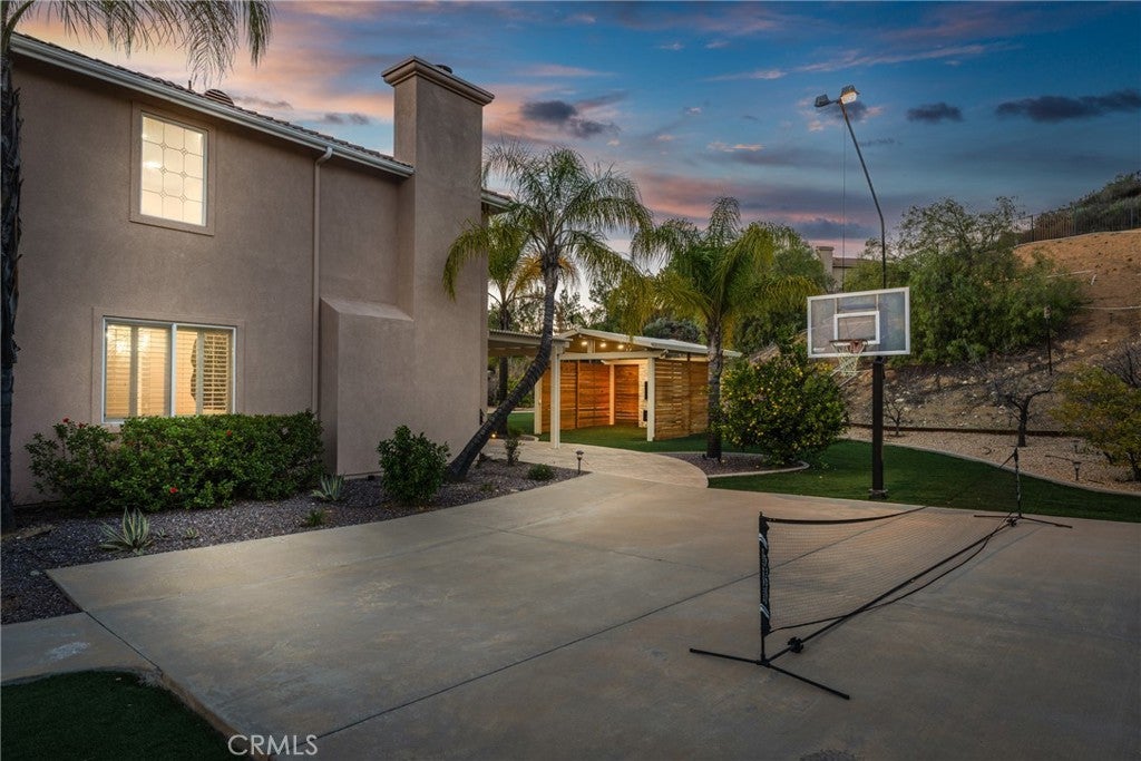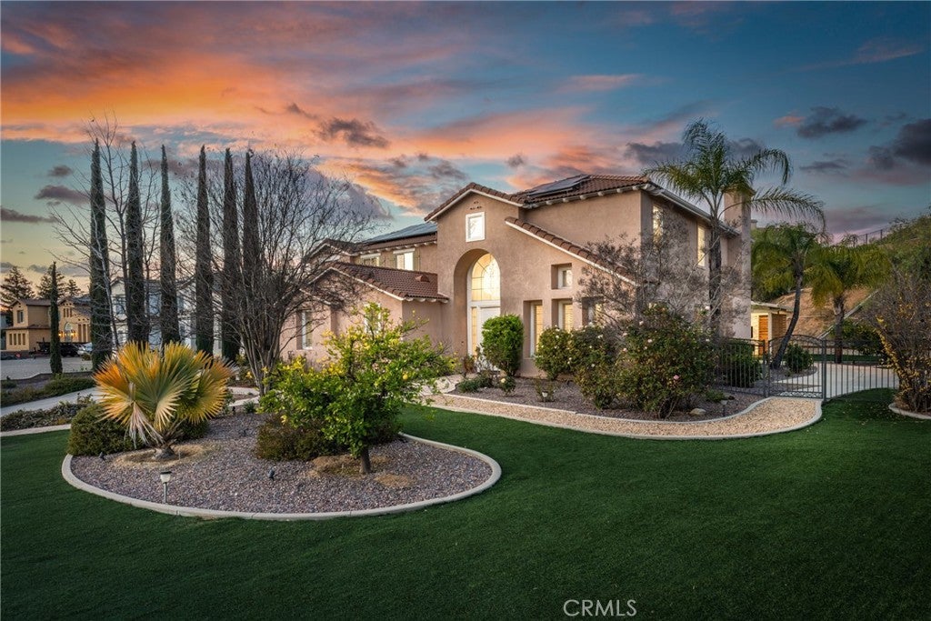 Total privacy and peace surround this charming home in a prestigious South Redlands neighborhood. This contemporary Spanish-style two-story has a comfortable and convenient layout that is perfect for families. Front and back all-season landscaping ensures a beautiful yard throughout the year. Walk through the stately front door and into a travertine-tiled entry. The space immediately opens up to reveal two-story ceilings, modern light fixtures, and a spacious living room. Luxury upgrades and high-end finishes are everywhere here. Flex your creative culinary skills in a spacious, modern kitchen with sturdy Taj Mahal Quartzite countertops and a huge island. Enjoy your own Wolf 8-burner range, a custom-built-in Sub-Zero fridge, and a large contemporary wine fridge from Wine Enthusiast. A huge office with wood built-ins opens up plenty of options for work-from-home or personal projects. Adjacent to the office is a convenient guest bedroom with an ensuite bathroom. Upstairs, the primary suite offers plenty of space and a second fireplace. The primary bath features a modern jacuzzi tub, walk-in shower, one of two bidets, an elegant vanity, and double sinks. And while every bedroom has its own walk-in closet, the walk-in primary closet is the pinnacle of luxury for the individual with sartorial taste. It sports floor-to-ceiling cedar lining that absorbs odors and helps protect your most treasured items from pests. Smart features in the home include a Nest thermostat and a Ring system. You also get a reverse osmosis and alkaline water softening system! The backyard offers recreation, a sports court, a covered gazebo lounge area, an outdoor kitchen and barbecue, and a sprawling garden of fruit trees. Watch the game on TV while lounging under the gazebo in front of an outdoor fireplace, while your barbecue chef prepares the gameday feast. Or cultivate your walkable garden of apple trees, pomegranates, avocado trees, and more! Paid solar with battery-storage credits. Historic Downtown Redlands, Caroline Park, and Redlands Country Club are just a short drive away. Hike the nearby Creekside Trail or Carriage Trail. Part of the highly-rated Redlands Unified School District.