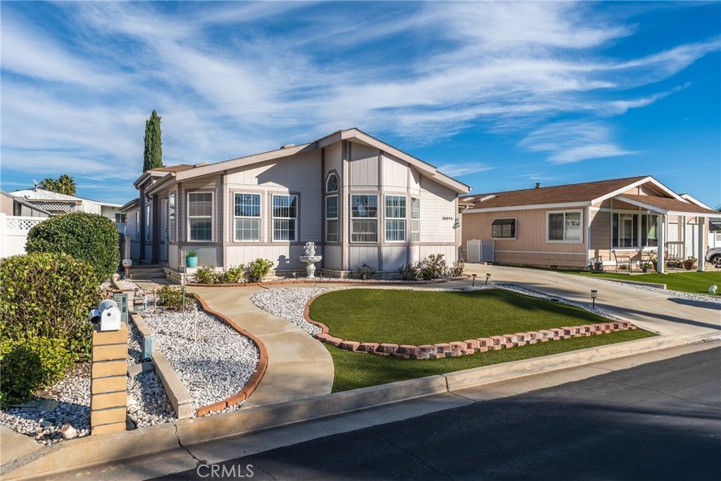 Welcome to 38094 Calle Amigable, a well maintained 3 bedroom, 2 bathroom home located in a desirable area of Murrieta within the 55+ Golf Knolls community. Set on a permanent raised foundation (no land lease), this home offers comfort, peace of mind, and a low maintenance exterior with vinyl fencing and an artificial grass front yard for great curb appeal and easy upkeep. Inside, you will find a bright and open floor plan with a spacious kitchen featuring an island, abundant cabinet space, and room for everyday dining, along with a separate formal dining area ideal for hosting family and friends. The bedrooms are generously sized with ample closet space, while the primary suite includes a relaxing garden tub and a separate shower. Additional highlights include a large indoor laundry room with extra storage and an expansive covered patio that is perfect for entertaining or enjoying quiet evenings outdoors. The low maintenance yard allows you to spend more time enjoying the home, the community, and everything Murrieta has to offer. Golf Knolls is an active 55+ community that hosts a variety of social events and activities throughout the year, creating a welcoming and engaging lifestyle for residents. Conveniently located near shopping, dining and freeway access, this home is a short drive to Murrieta Hot Springs Resort, nearby golf courses, and the Temecula wineries. Enjoy local favorites like Murrieta Market Nights, held on the 1st and 3rd Thursday of each month, just minutes from home.