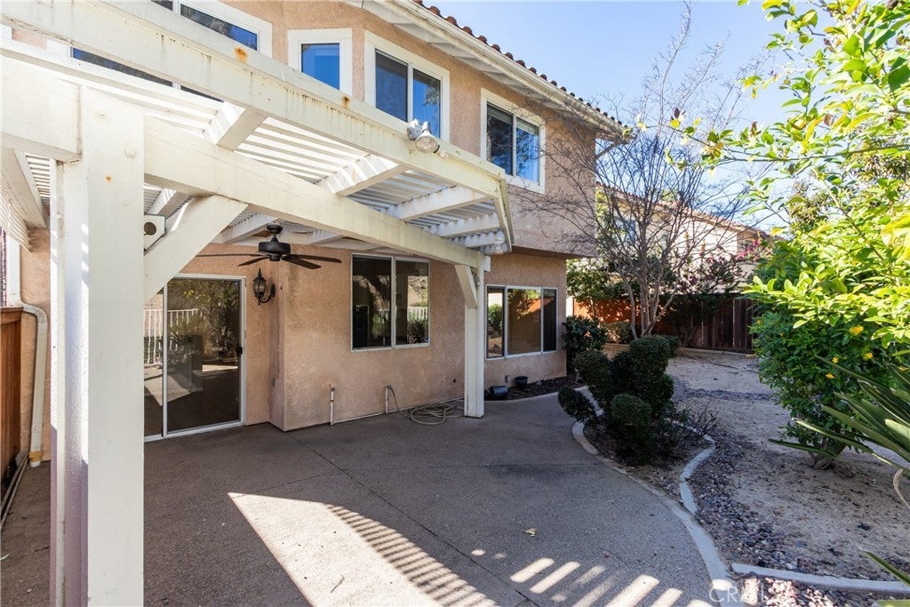 This beautiful Move-in Ready home boasting 2,378 square feet offers 4 Bedrooms plus Office/Loft with a built in desk, a gated courtyard entrance providing privacy and security plus a 3 car garage! Centrally located between Cal Oaks and Nutmeg, the location offers outstanding convenience—close to top-rated schools, a large city park within walking distance, and excellent freeway access for commuting or weekend getaways, all this plus LOW Property Taxes and No HOA. The home immediately impresses with attractive curb appeal, highlighted by premium artificial turf, swaying palm trees, a spacious three-car garage, and a private, gated tropical courtyard. Inside, the popular floor plan features a dual-sided fireplace shared between the formal living and family rooms, creating a warm and inviting atmosphere, some highlights include brand-new carpeting upstairs and wood LVP flooring downstairs. The kitchen offers abundant counter space, ample storage, white cabinets, granite countertops and pleasant views of the backyard, ideal for both daily living and entertaining. Step outside to a private, low-maintenance yard featuring a covered patio and mature trees—perfect for relaxing or hosting gatherings. Upstairs, you’ll find four generously sized bedrooms plus a versatile loft with built-in desk and lighting. The loft was originally offered as an optional fifth bedroom and can be easily converted if desired. The spacious primary suite includes a well-appointed bathroom with dual sinks, a soaking tub, and a separate shower. The three-car garage is thoughtfully equipped with epoxy flooring & extensive cabinetry making it ideal for storage, hobbies, or recreational vehicles. This exceptional home offers comfort, convenience, and value—and is sure to attract strong interest.