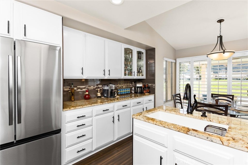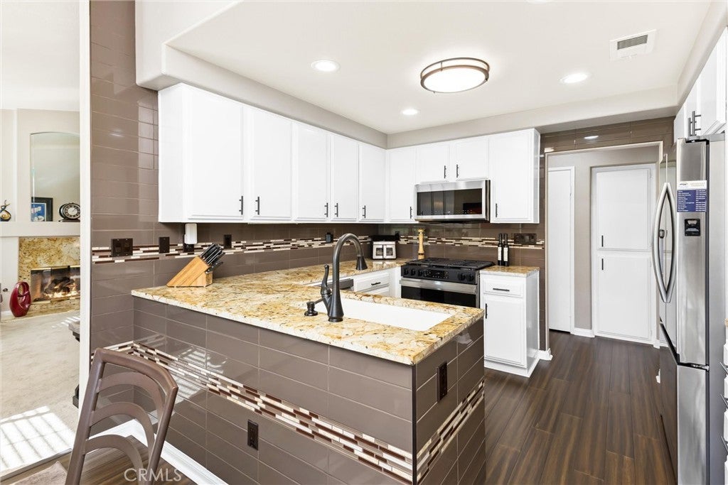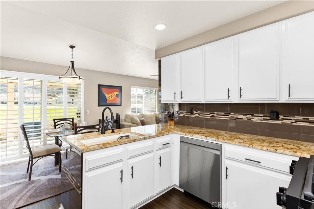 Highly upgraded 2-bedroom, 2-bath condominium offering 1,261 square feet of refined living space in the desirable 55+ gated community of Sun Lakes Country Club. As you enter the double doors of this beautifully updated condo, the stunning fireplace lined in granite immediately becomes the main focal point of the living room. The gorgous kitchen with granite countertops, high-end stainless steel appliances will quickly become the gathering area with spendid views of the golf course and surrounding hills. Both bathrooms have been extensively upgraded with granite countertops, elegant tile and glass enclosures. The primary suite shines with golf course views and a walk-in closet that features custom built-in drawers and ample storage. The guest bedroom includes a built-in Murphy bed with custom cabinetry, ideal for flexible living or home office use. The attached two-car garage with separate golf-cart garage is an answer to any golfers dream, and the tankless water heater provides engery efficiency. Sun Lakes Country Club offers exceptional amenities including three clubhouses, three swimming pools, two restaurants plus bar and lounge, 2 golf courses, tennis courts, bocce ball courts and so much more. This condo offers a rare opportunity to enjoy UPGRADED comfort with resort-style living.