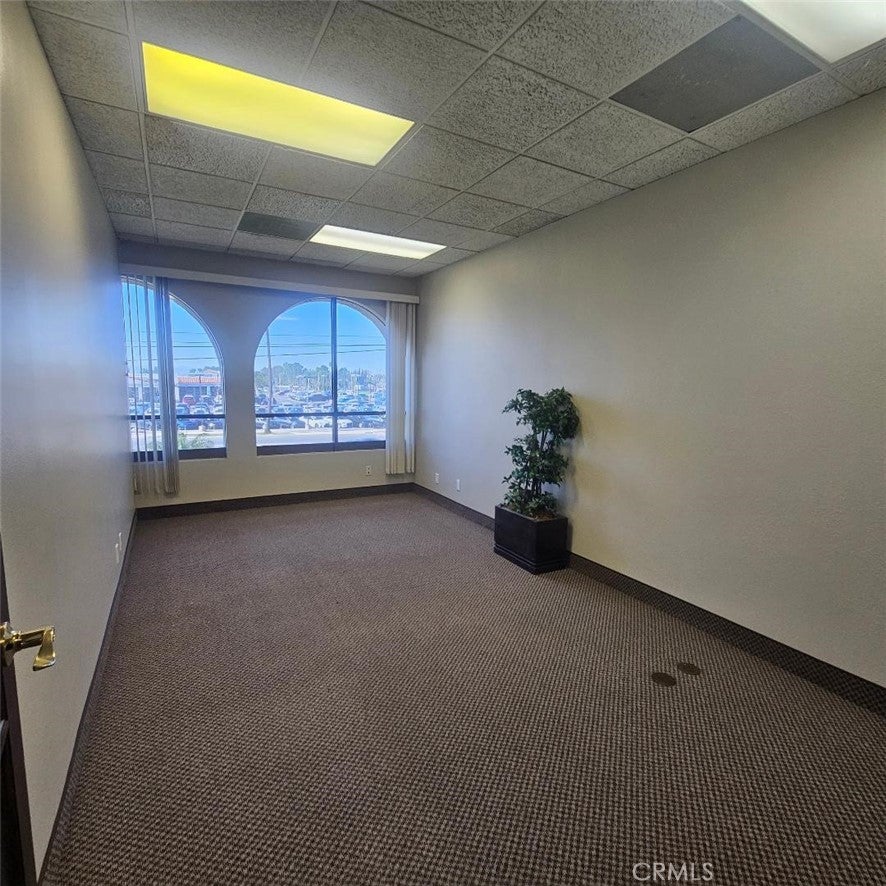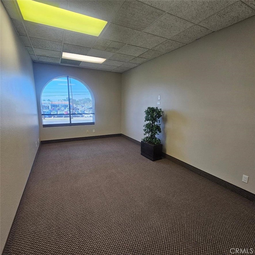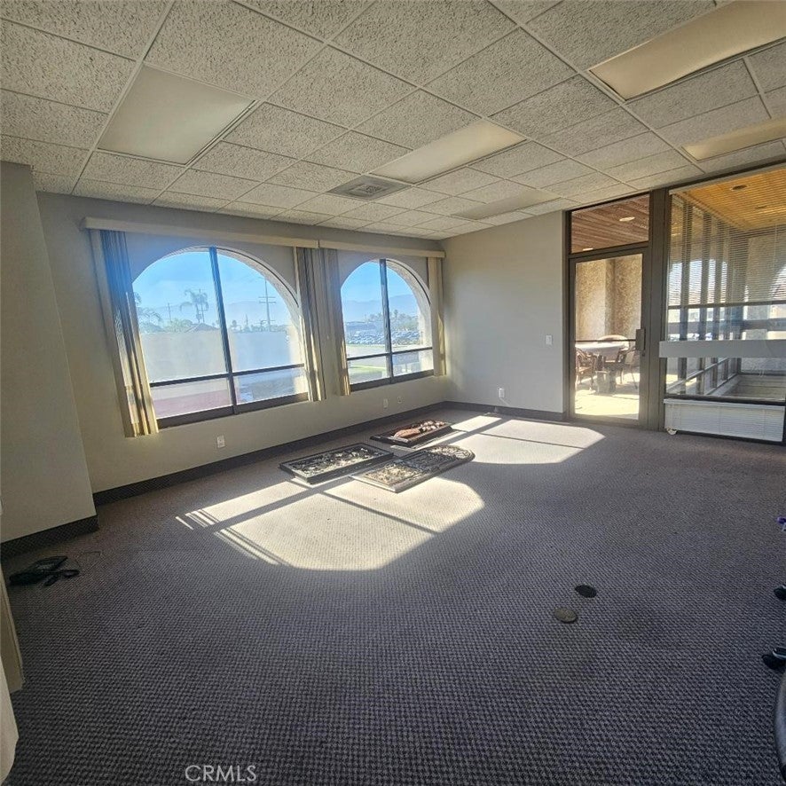 Upstairs Office space for rent! Great location easy access to the 15 freeway! Approximately 2500 square feet, with a covered balcony. 4 Private offices, built in workspace and plenty of other space. Ample number of electrical outlets, Interior freshly painted, carpets freshly cleaned. Kitchen and 2 bathrooms. 2 staircases. Water, trash, gas, and landscaping included in the rent. Approximately 12 parking spaces. Tile flooring in kitchen hallways and bathrooms.