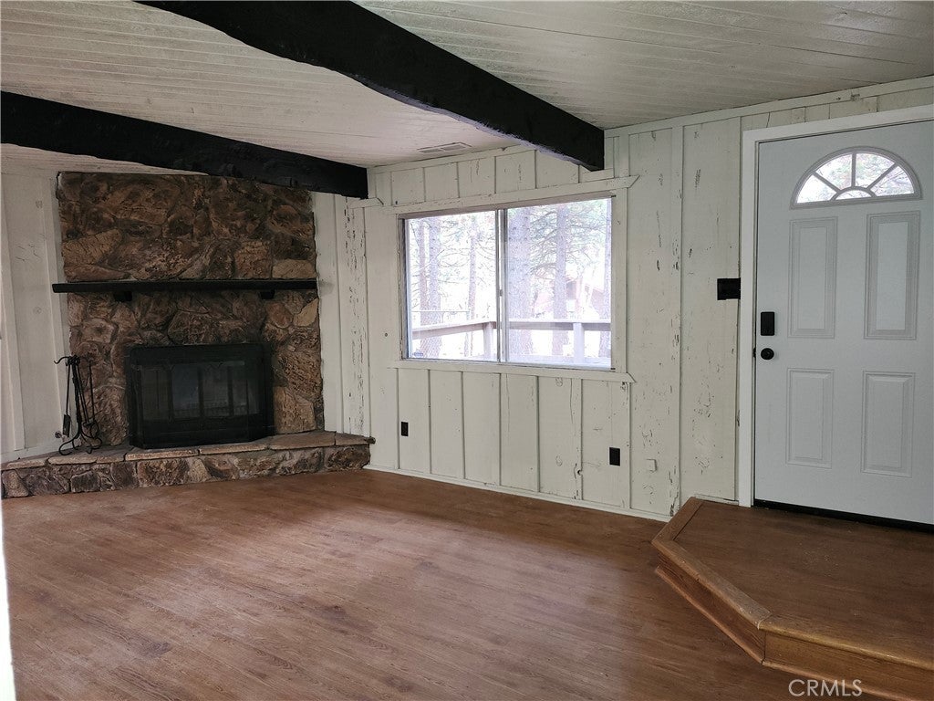 View this "Sierra" style cabin with its log accents, large front decking, beautiful treed/level lot (with plenty of room to add a garage). Remodeling is finished and ready to move in! Improvements include: New carpet in bedrooms; completely painted interior; new bathroom flooring, toilet, vanity; new interior doors; yard hardscape (with pavers and lovely backyard patio area); attached storage shed; and more! Important features include 884 sq', 2 bedrooms, 1 full bath, Washer/Dryer hookups, forced air heat, 5,000 sq' treed lot. Priced to sell.