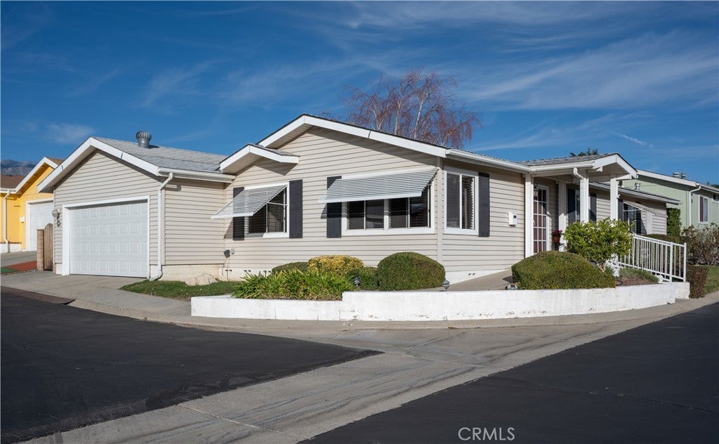 Welcome home to this well-maintained manufactured home in Banning, where comfort, upgrades, and outdoor living come together nicely. The home features a large living room with plenty of windows that bring in natural light and allow for great airflow. Hardwood floors run through the living room, dining area, and kitchen, and a ceiling fan adds comfort. A sliding door in the dining room opens to the backyard patio. The kitchen is a good size with lots of cabinet storage, a stove that is about one year old, and a new goose neck faucet. A separate laundry room includes a washer and dryer that are approximately two to three years old. Major improvements include a brand-new roof completed January 10, 2026, a water heater that is two years old, and an air conditioner estimated at six years old. The bedrooms are nicely sized. The primary bedroom has an ensuite bathroom with a walk-in shower, large window, and linen cabinet, with space to add a tub if desired. The second bathroom has been renovated and includes a tub with shower. Both toilets have been recently replaced. The front and backyard are landscaped and include a sprinkler system, along with a key lime tree in the front yard. The backyard patio is perfect for enjoying your morning coffee. The garage offers cabinets on both sides and a workbench, providing excellent storage. Additional features include a reverse osmosis water system that is about one year old for clean drinking water, showers, and laundry. The park amenities include a large swimming pool with restrooms, a covered picnic and BBQ area, and pickleball and tennis courts.