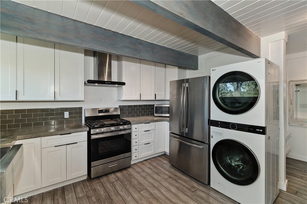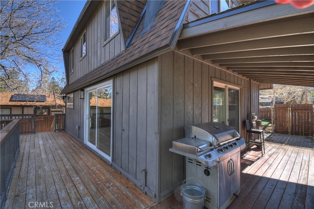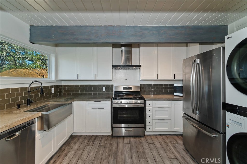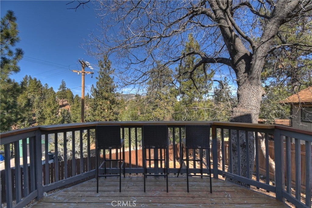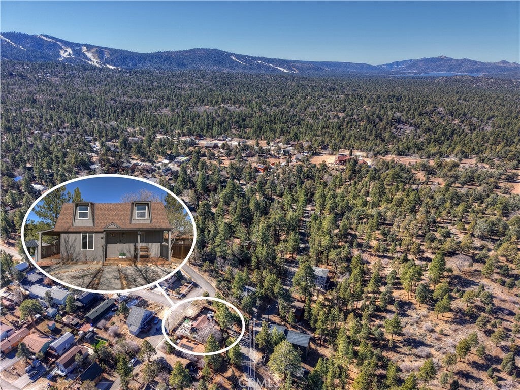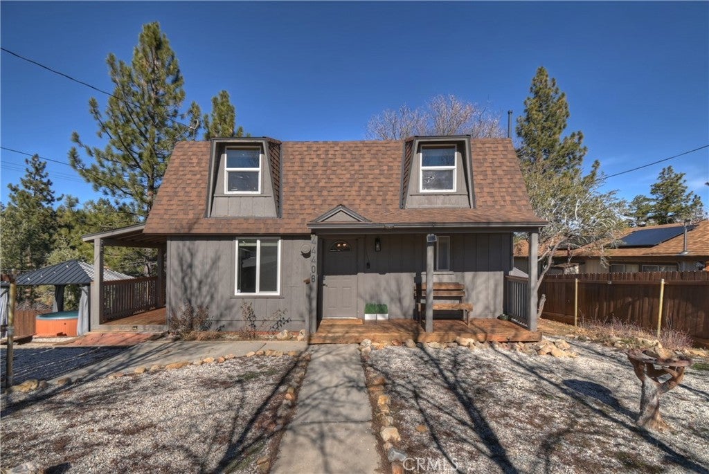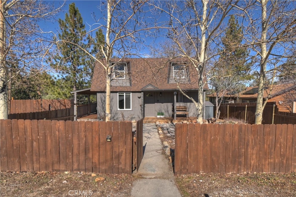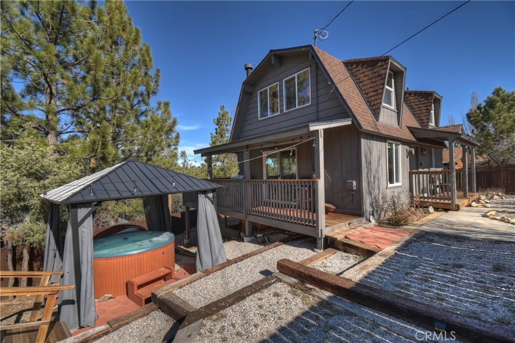 This mountain home is beautiful inside and out! The main floor living space is open and bright, with high ceilings and accent beams. You get gorgeous views from all the windows and 2 large sliders, which are all newer for maximum energy efficiency. The living room also features a warm and cozy wood burning, stone fireplace. The kitchen is equipped with newer stainless steal appliances, as well as an oversized sink and full size stacked washer and dryer. Concrete countertops add a modern element, along with the updated light fixtures. The full downstairs bath has a large clawfoot tub for a nice, relaxing soak, and a shower as well. Upstairs the high ceilings and beautiful mountain views continue, in the 2 spacious bedrooms. There is also a half bath upstairs. Outside there is a wraparound deck with bar seating and the entire lot is fenced in. This home is situated on a corner lot and comes with an additional parcel, totaling 8300 sqft. It's all usable and fenced in. There is also a new spa and gazebo, and a firepit with more seating. There is ample parking and it is all level and south facing! This home was completely redone in the last few years, even the roof was done in 2023. This home would make a great full time, vacation home or short term rental.