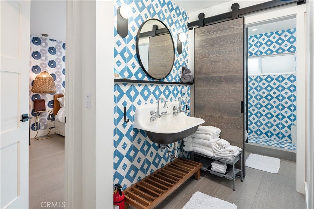 Remodeled coastal home just steps from the beach and near the Del Mar Race Track. Corner lot with privacy, multiple outdoor entertaining areas, and seamless indoor-outdoor living via two accordion doors. Features spa, built-in grill, high-end appliances, and filtered water throughout. Ideal for entertaining family and/or friends. In addition to the main home, enjoy a detached 818 sq ft guest house offering 2 bedrooms and 2 bathrooms. High ceilings invite beautiful natural light throughout, creating a bright and airy feel. Equipped with a kitchenette, stackable washer and dryer, mini split HVAC, and its own address. This charming and stylish space is as functional as it is delightful.