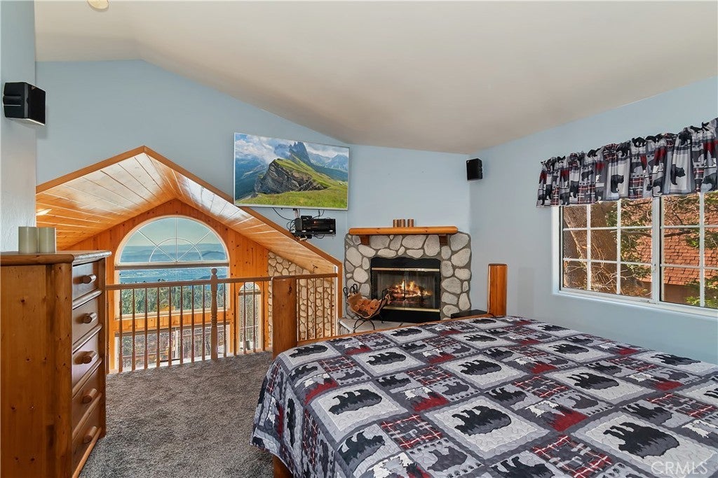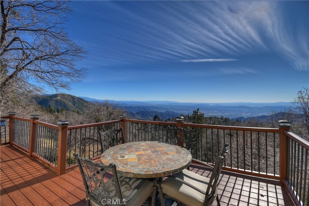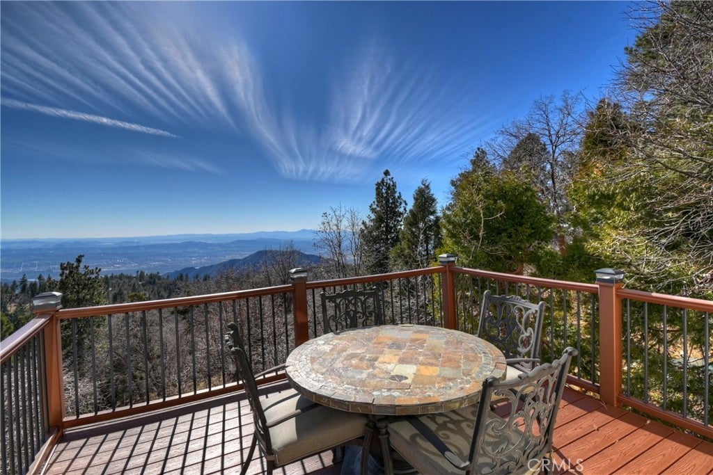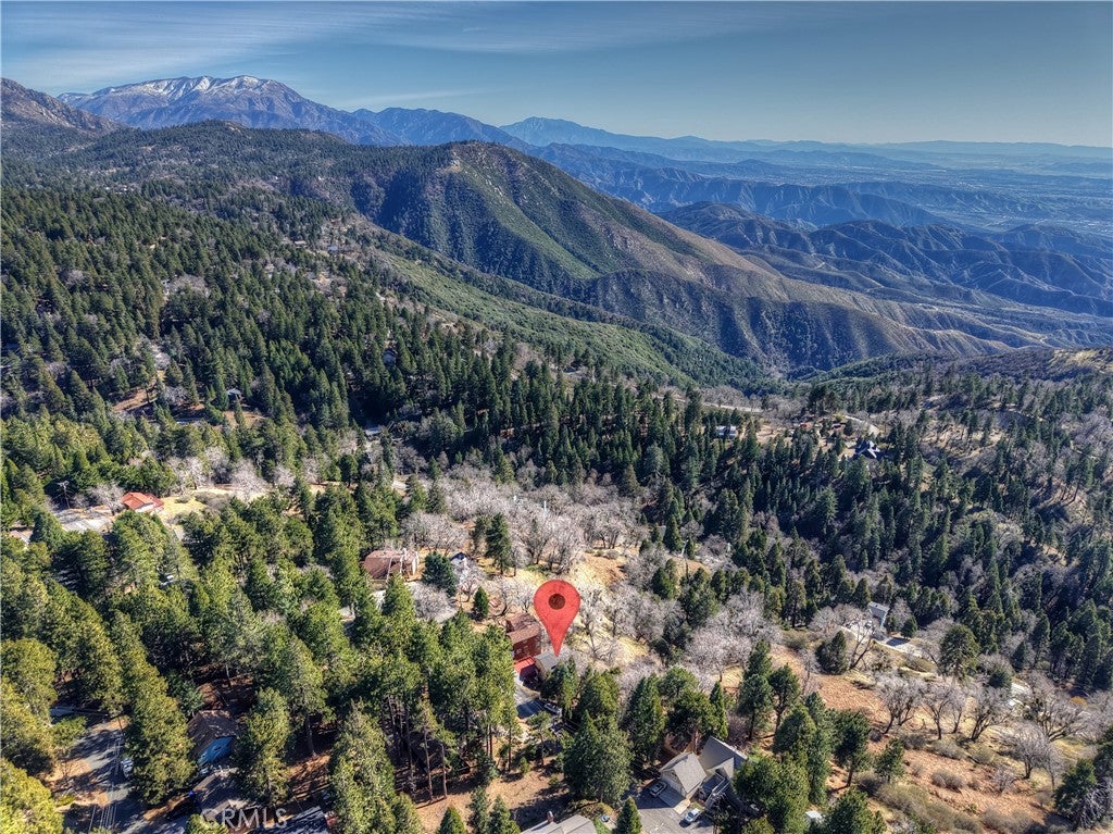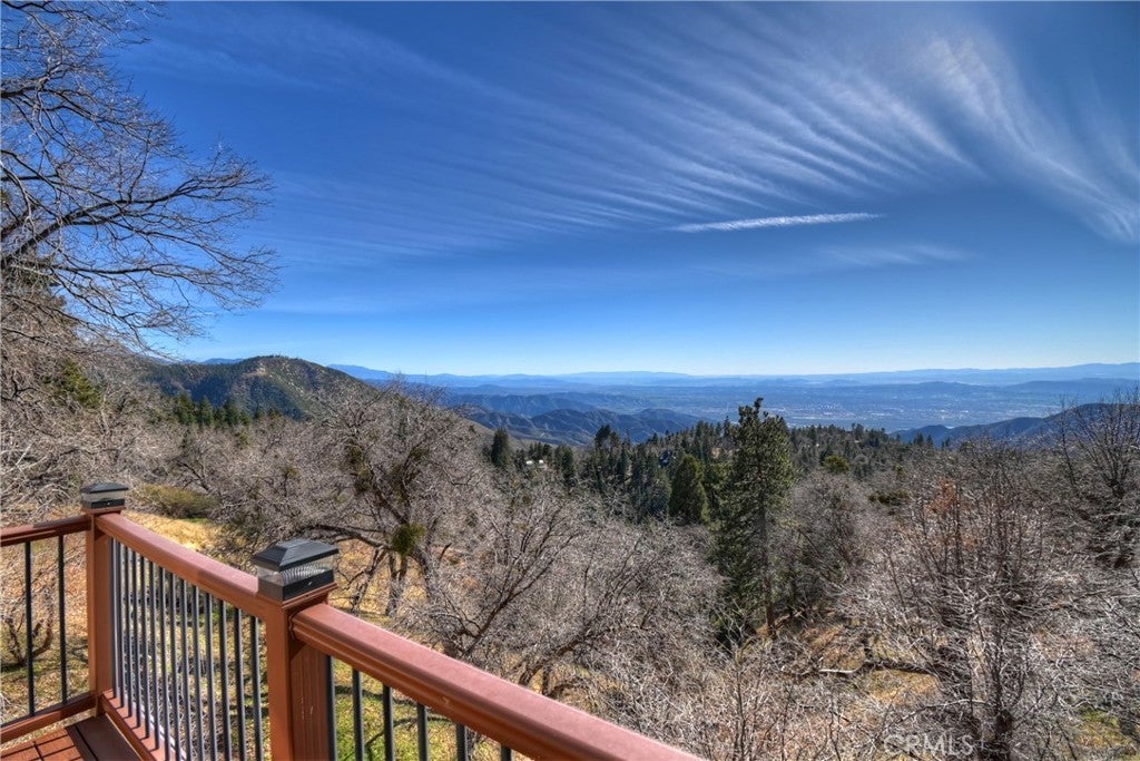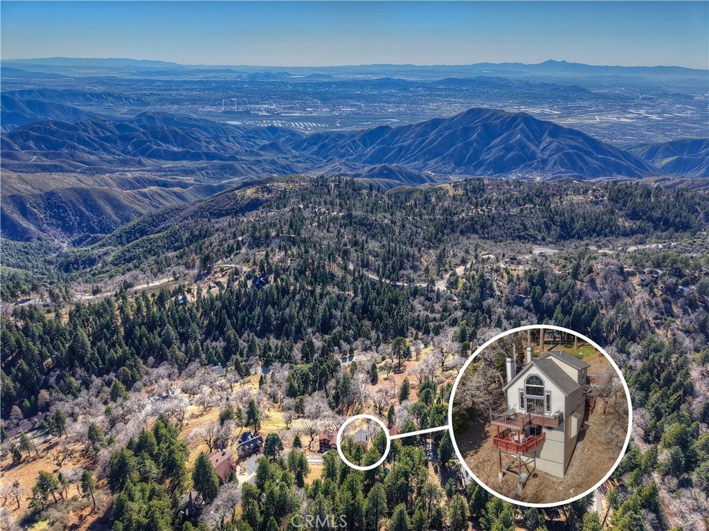 Welcome to your private mountain retreat! This stunning three-level home offers breathtaking panoramic views of sparkling city lights, majestic mountains, and lush forest canopy from multiple vantage points throughout the property. The main level welcomes you with an inviting living room anchored by a striking river rock fireplace, creating the perfect ambiance for relaxation. The well-appointed kitchen features a convenient breakfast bar and dining area, ideal for both casual meals and entertaining guests. Step through to the upper back deck and prepare to be captivated by the sweeping vistas that stretch before you. This level also includes a comfortable bedroom and full bathroom, offering convenient single-level living if desired. Ascend to the top level where the luxurious primary suite awaits. This serene retreat features its own cozy rock fireplace for intimate evenings and spectacular views to wake up to each morning. The spa-like primary bathroom is designed for indulgence, complete with dual sinks for busy mornings, a relaxing jetted tub for unwinding after a long day, and a separate walk-in shower. The lower level transforms into an entertainer's dream with a dedicated game room that includes a pool table and electronic dart board, perfect for hosting friends and family. The private bar adds a sophisticated touch for gatherings, while the laundry closet provides practical convenience. Another bedroom and full bathroom on this level ensure comfortable accommodations for guests, and access to the lower back deck provides yet another spectacular setting to enjoy those unforgettable views. With easy, level parking and thoughtful design throughout, this exceptional property offers the perfect blend of mountain living and modern comfort. Every level of this home has been crafted to maximize the stunning natural surroundings while providing the amenities and space for comfortable everyday living and memorable entertaining. This is a great, short drive location to Running Springs town, Hwy 330 for commuters, Snow Valley Ski Resort, Green Valley Lake, Sky Park At Santa's Village, etc.!