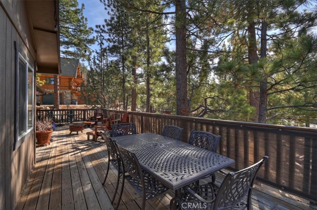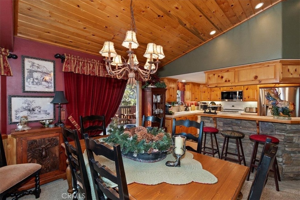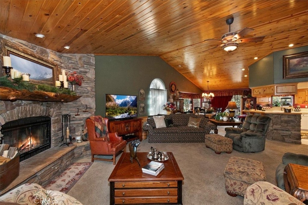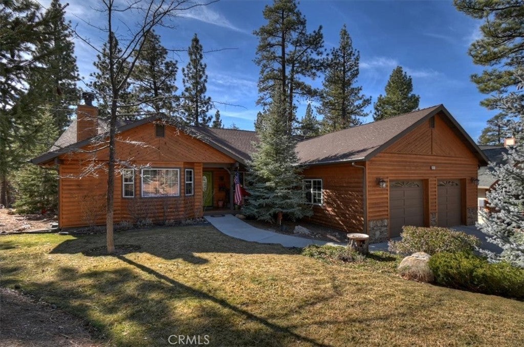 Public Remarks: Experience the warmth and mountain charm of this beautifully maintained Castle Glen home, ideally located near everything Big Bear has to offer. Designed for convenience and accessibility, this property features a rare flat, level entry and a desirable single-level floor plan. As you enter, you are welcomed into a spacious open great room highlighted by knotty pine tongue-and-groove ceilings, classic wainscoting, and rich wood accents throughout—creating a warm, inviting atmosphere. The open-concept design seamlessly connects the living area, kitchen, and dining space, making it ideal for both everyday living and entertaining. The well-appointed kitchen offers abundant knotty pine cabinetry and a large center island, perfect for casual meals and gatherings. Cozy winter evenings can be enjoyed around the gorgeous wood-burning fireplace, a true focal point of the living space. The spacious primary bedroom provides direct access to the rear deck and features a walk-in closet and a private ensuite bath. The expansive back deck spans the entire full width of the home—an ideal setting for entertaining, relaxing, and enjoying the fresh mountain air. Extra amenities include solar panels, low-maintenance landscaping, and a two-car attached garage with ample space for vehicles and mountain toys. Whether you are seeking a full-time residence, second home, or investment opportunity in a short-term rental–friendly neighborhood, this lovingly maintained property is located in one of Big Bear’s most desirable communities. Put this one on your list! ______________________________________________________________________________________