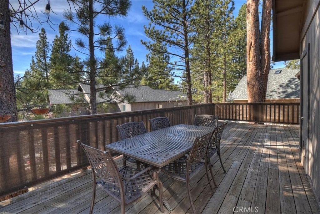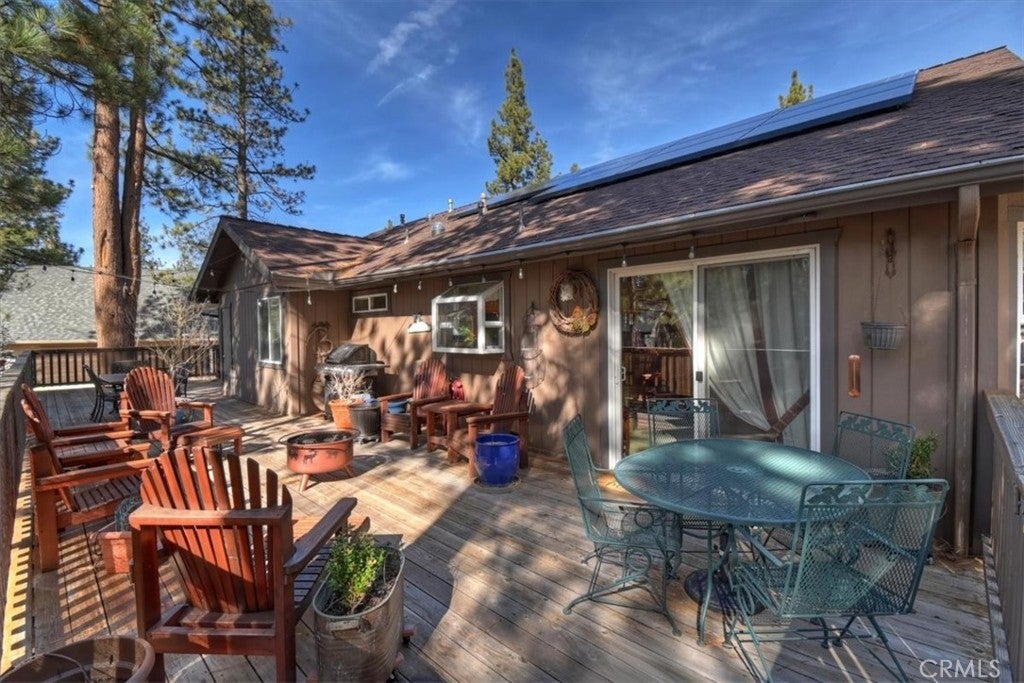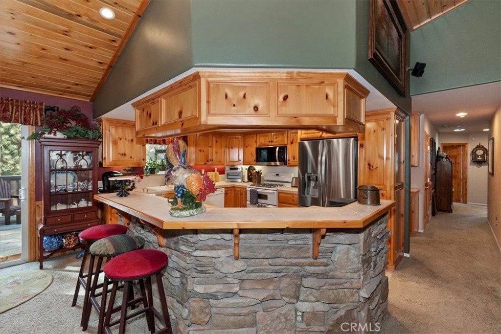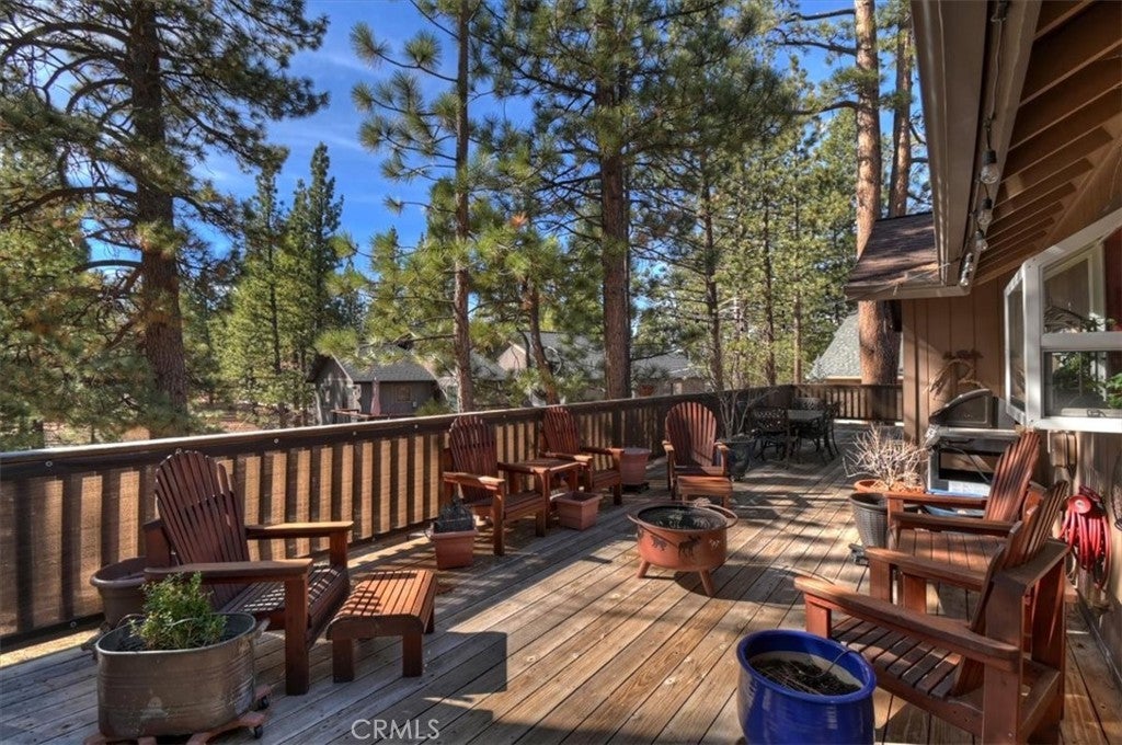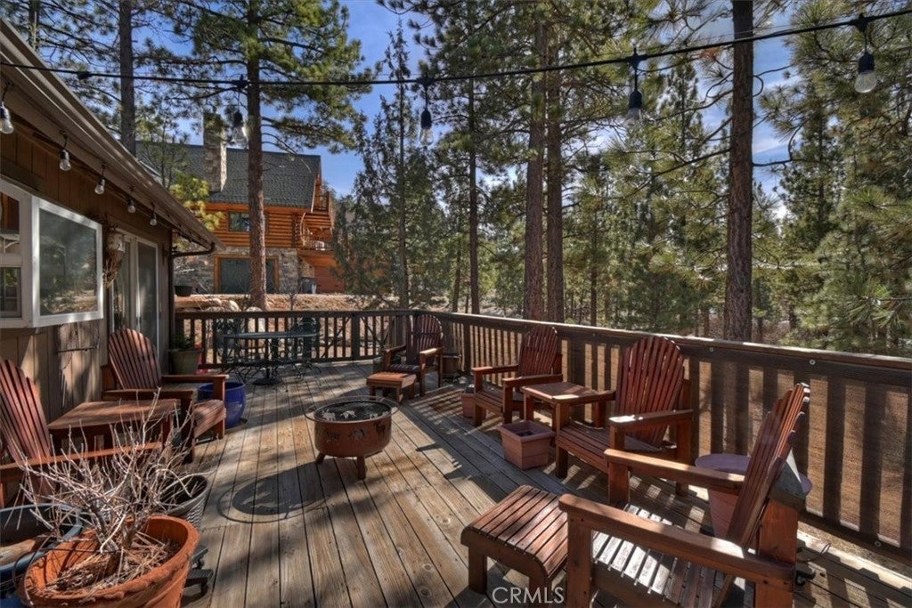 Public Remarks: Experience the warmth and mountain charm of this beautifully maintained Castle Glen home, ideally located near everything Big Bear has to offer. Designed for convenience and accessibility, this property features a rare flat, level entry and a desirable single-level floor plan. As you enter, you are welcomed into a spacious open great room highlighted by knotty pine tongue-and-groove ceilings, classic wainscoting, and rich wood accents throughout—creating a warm, inviting atmosphere. The open-concept design seamlessly connects the living area, kitchen, and dining space, making it ideal for both everyday living and entertaining. The well-appointed kitchen offers abundant knotty pine cabinetry and a large center island, perfect for casual meals and gatherings. Cozy winter evenings can be enjoyed around the gorgeous wood-burning fireplace, a true focal point of the living space. The spacious primary bedroom provides direct access to the rear deck and features a walk-in closet and a private ensuite bath. The expansive back deck spans the entire full width of the home—an ideal setting for entertaining, relaxing, and enjoying the fresh mountain air. Extra amenities include solar panels, low-maintenance landscaping, and a two-car attached garage with ample space for vehicles and mountain toys. Whether you are seeking a full-time residence, second home, or investment opportunity in a short-term rental–friendly neighborhood, this lovingly maintained property is located in one of Big Bear’s most desirable communities. Put this one on your list! ______________________________________________________________________________________