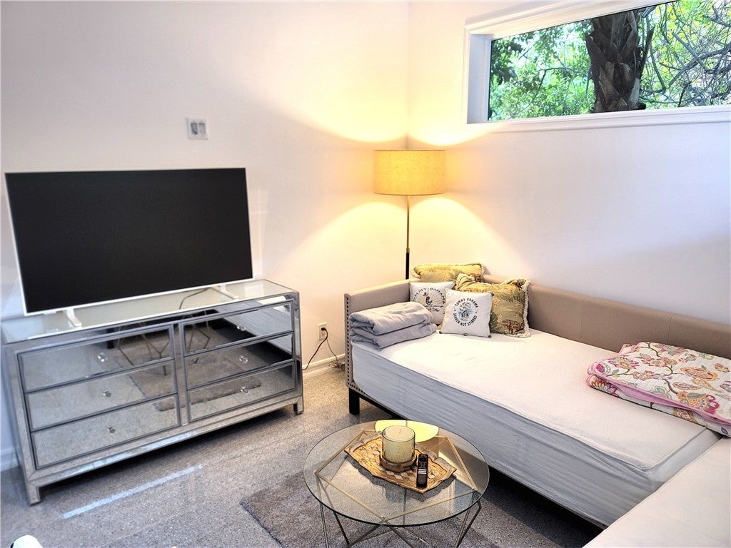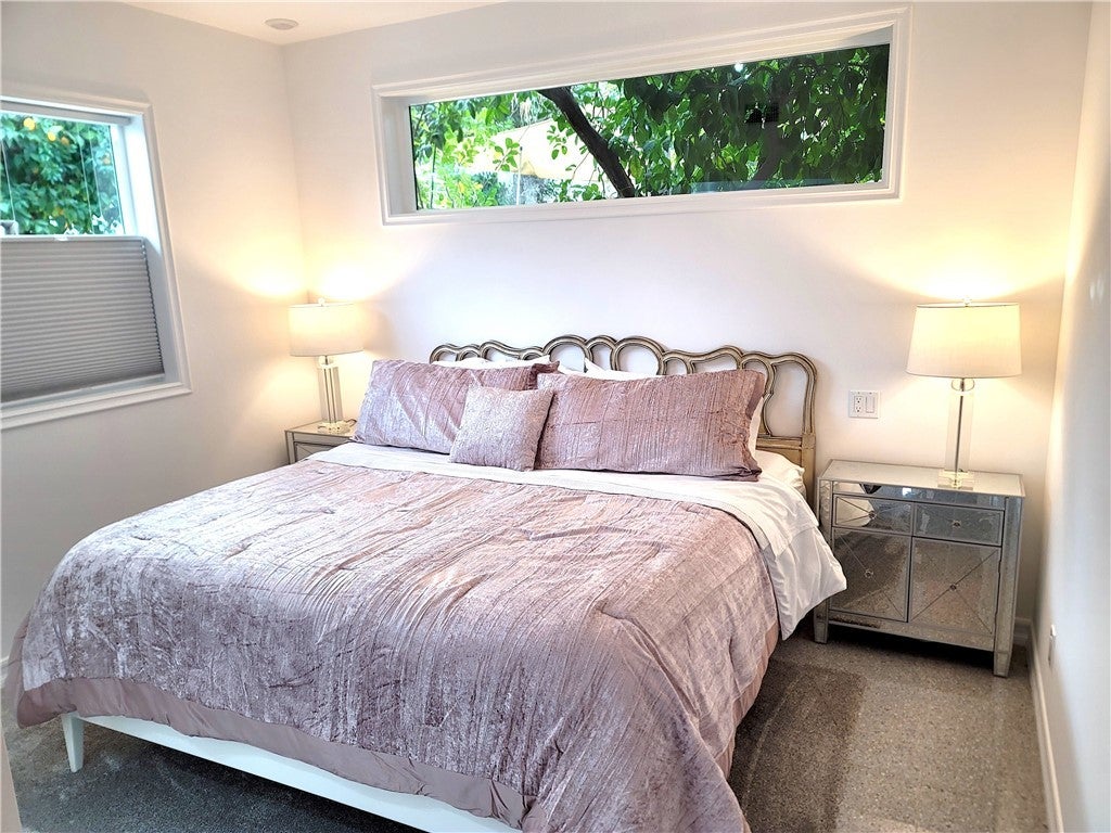 A thoughtfully designed 2-bedroom 1-bath guest residence in prime South Palm Desert, moments from the boutiques, galleries, shopping and dining of El Paseo. This fully furnished detached ADU delivers a quiet, private retreat with curated interiors, natural light, and a seamless indoor-outdoor flow. The kitchen is outfitted for both short and extended stays with full-size appliances, gas range, Nespresso, and in-unit washer/dryer. The primary bedroom offers a king bed dressed in hotel-quality linens while the second bedroom transitions effortlessly between office, media room, and guest suite, complete with daybed, dual monitors, printer, and TV. A spa-inspired bath features a curbless LED rainfall shower, gold fixtures, and premium finishes. A private entrance and outdoor seating area enhance the sense of exclusivity and separation. Utilities and Wi-Fi are included for an effortless experience suitable for work or leisure. No Pets. 30-day minimum stay. Available now.