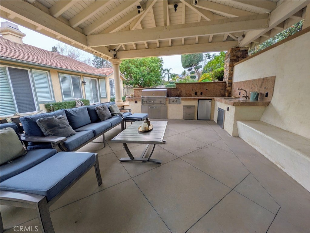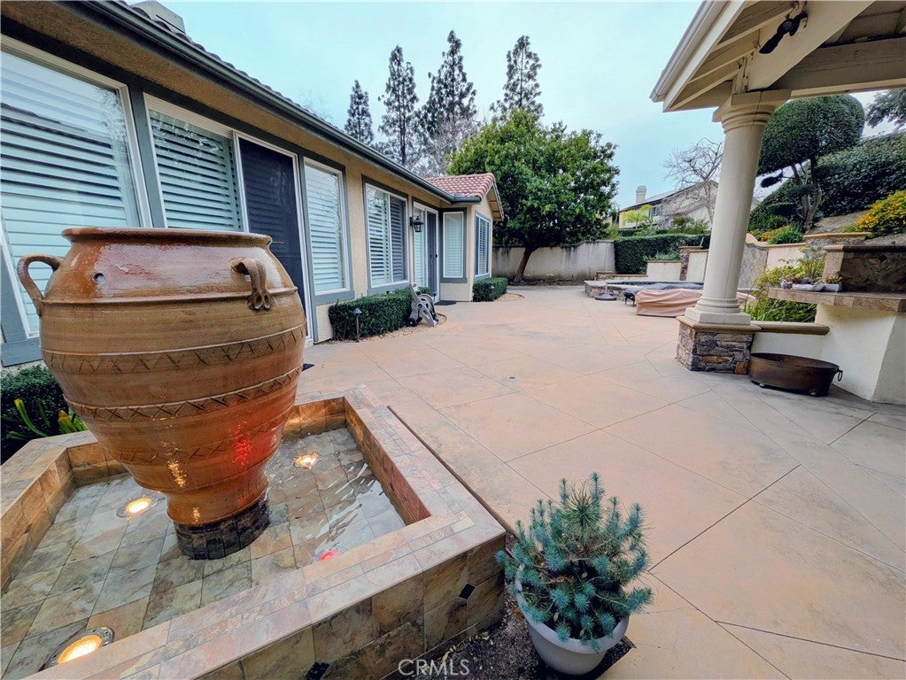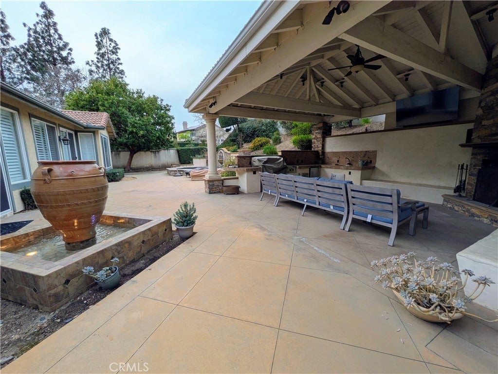 Welcome to this beautifully maintained 4-bedroom, 2-bathroom home offering nearly 2,200 sq. ft. of single floor living space located in the sought after Brentwood neighborhood. Close to highly rated schools in the Etiwanda school district, scenic parks, shopping, dining, and freeway access, 14060 Arcadia Way perfectly blends comfort, convenience, and style. Your recently renovated front yard features low-maintenance, drought-tolerant landscaping, split face block garden wall, and dramatic landscape lighting. Double entry doors open to a large formal living room showcasing soaring ceilings, expansive windows, and a flexible dining space—ideal for entertaining or quiet gatherings. The oversized kitchen is a chef’s delight, boasting custom antique white cabinetry, gorgeous granite countertops, a large island with built-in cooktop and ceiling pot rack, stainless steel appliances, and formal dining area. The adjacent family room, complete with a cozy brick fireplace, vaulted ceilings, and sliding glass door access to the backyard, creates the perfect open-concept living space. Retreat to the spacious primary suite with double-door entry, custom shiplap accent wall, dual closets, and direct backyard access. The luxurious ensuite bath features a soaking tub, separate shower, dual sink vanity, and walk-in closet. Three additional generously sized bedrooms provide plenty of room for family, guests, or a home office. Your hall/guest bathroom also features dual sinks and a full tub/shower with glass doors. Step outside to your private entertainer’s paradise — a beautifully landscaped, expansive backyard designed for relaxation and gatherings. Your recently renovated 12-person spa with Pebble-Tec finish welcomes you after a long day, while a huge custom pavilion with an outdoor fireplace, abundant seating, outdoor kitchen with premium Lynx stainless steel grill, TV and speaker system, and a ceiling fan sets the scene for countless memorable days and nights. A tranquil water feature just outside your primary suite also adds to the peaceful ambiance. Your new home boasts real hardwood floors throughout entry, family room, kitchen, hallways, and primary bedroom, tile in both bathrooms and laundry room, newer carpet in living room and two bedrooms, upgraded laminate flooring in front bedroom, and upgraded plantation shutters throughout. This home beautifully combines timeless elegance with modern amenities and a resort-style outdoor space, come see it today!