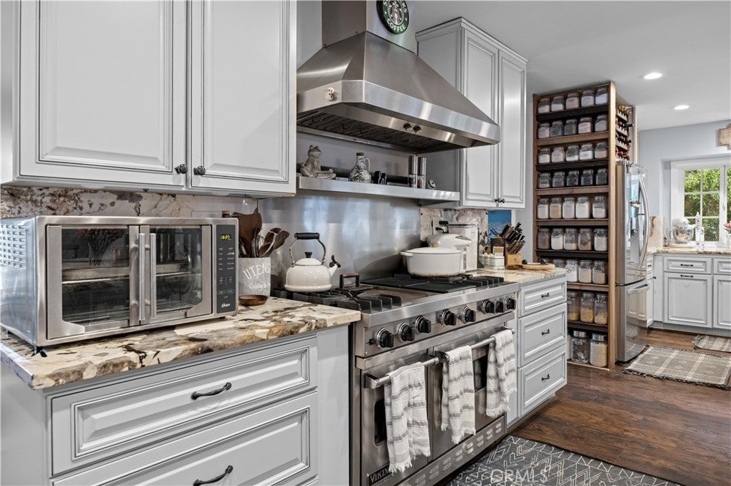 Price Improvement! Incredible opportunity to own this rare 1-acre Yorba Linda property with expansive entertaining spaces and a beautifully updated kitchen. Situated on an expansive lot, this unique property offers exceptional space, privacy, and versatility rarely found in the area. The expansive kitchen features two islands, two sinks, abundant counter space, and generous storage, ideal for entertaining and everyday living. The beautifully landscaped grounds showcase mature fruit trees, a personal garden, quaint seating areas, a resort-style pool, and a large barn/shop, creating a private, estate-like environment with ample space for gatherings, your RV and/or your boat. Two downstairs rooms are currently configured as a bar and a therapy room, offering flexible options for entertaining, wellness, or work-from-home use. Recent improvements include new ABS piping. Solar includes two systems — one owned and one leased. Buyer to assume leased solar at approximately $100/month. A truly special property combining upscale living with rare lot size and exceptional outdoor amenities.