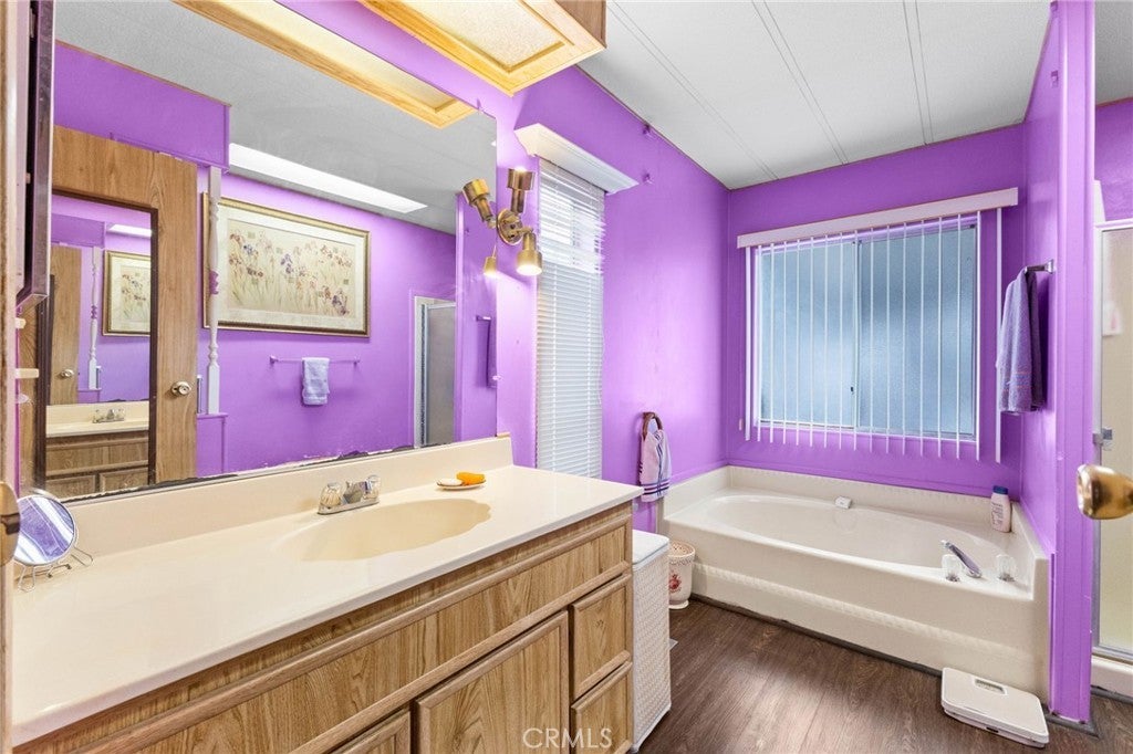 Hello there!!! Have you been on the hunt for a manufactured home in a 55+ community with NO Space Rent, LOW HOA, on a PERMANENT FOUNDATION where you OWN the land???? Well this is the one for you!! I am excited to introduce you to 340 Potrero St, a spacious 1,440 sqft, 2 bedroom, 2 bath home in Cottonwood Estates in the city of San Jacinto. When you enter the front door, you walk into a spacious, sun lit family room to the right, with the dining area and built-in hutch just beyond. To the left is a secondary living room, with a slider door that leads out to the porch that takes you to a very large backyard. The bedrooms are pretty spacious, with tons of built in storage. The primary bathroom has a separate tub and shower, and is also quite spacious. The laundry room also doubles as an office with built in desk, and has a utility sink. Outside, you are sure to appreciate the 6,098 sqft lot that this home sits on, the 2 car detached garage with additional storage, as well as the space for RV parking and hookups. The potential savings you can enjoy in this home are significant, so be sure to schedule a showing today, you have to see it to appreciate it.