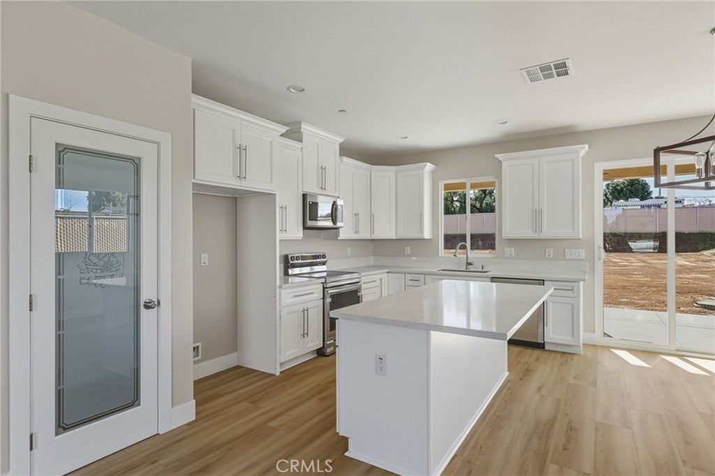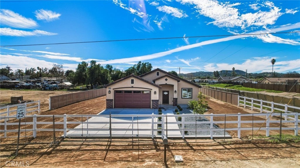 Welcome to this Gorgeous New Construction Home. Modern Custom Built, Home features 3-bedroom,2-bath and 1,597 sqft of living space. Situated on a large 0.31-acre lot. The home features a nice kitchen with Quartz countertops, a nice pantry and plenty of cabinets. a center island, ideal for cooking and Entertaining. Stainless steel appliances. Laundry room is conveniently located inside the home. Paid-off solar panels provide energy efficiency and savings. Well-sized bedrooms and a generous lot offer both comfort and flexibility. Theres no HOA fees. Close to the 215 freeway and to Perris Lake. this is beautifully designed waiting for you!!