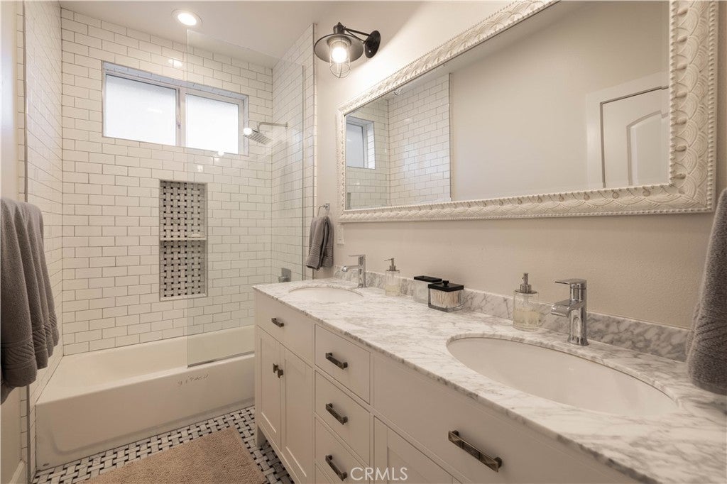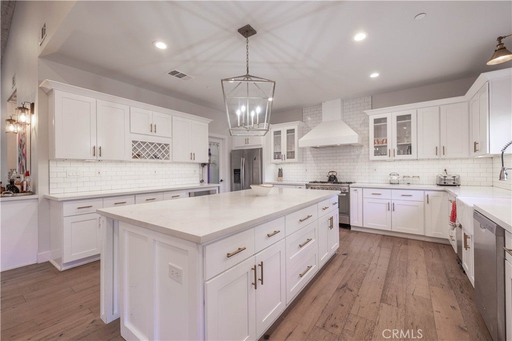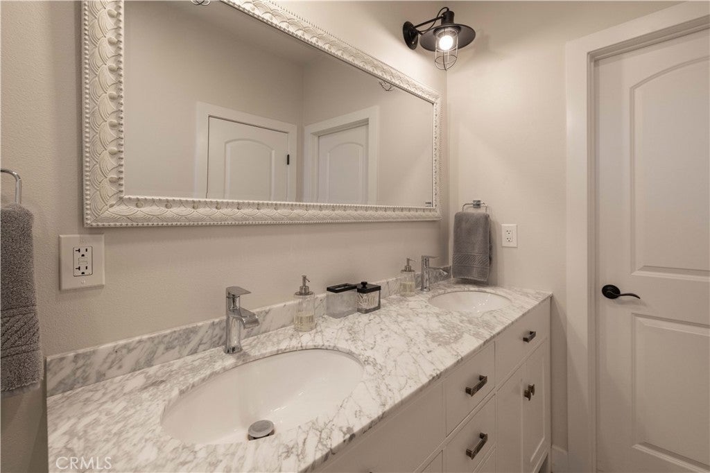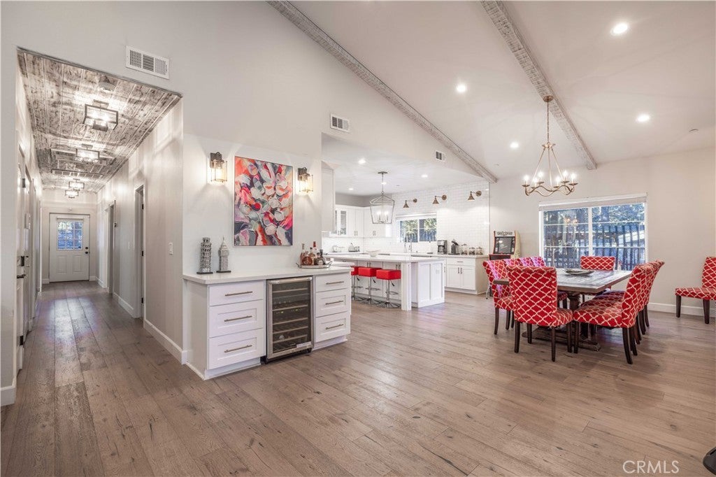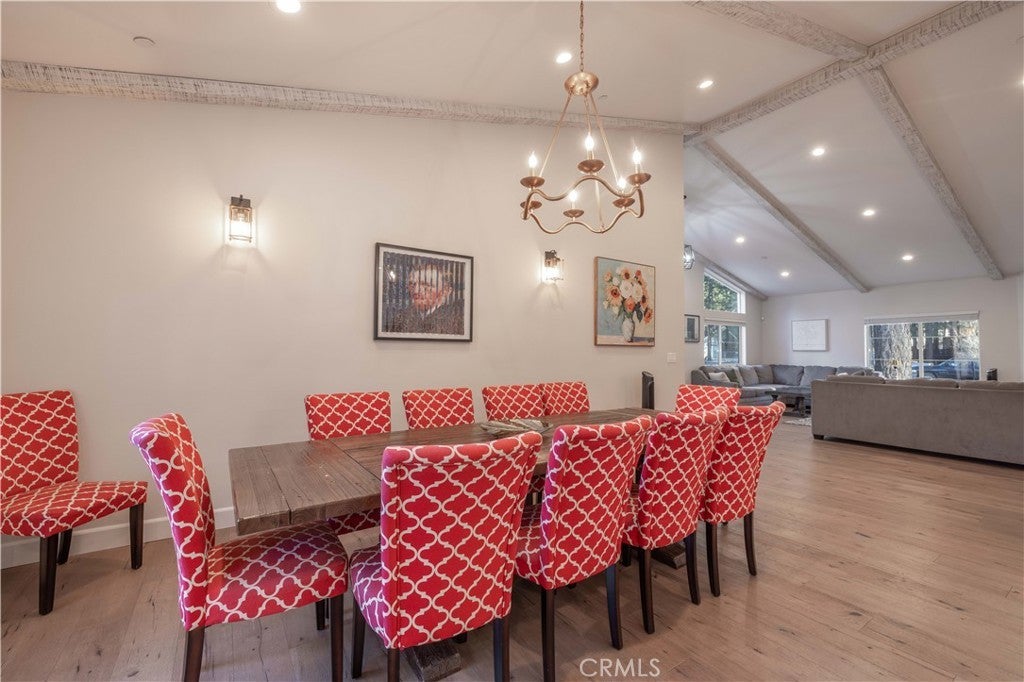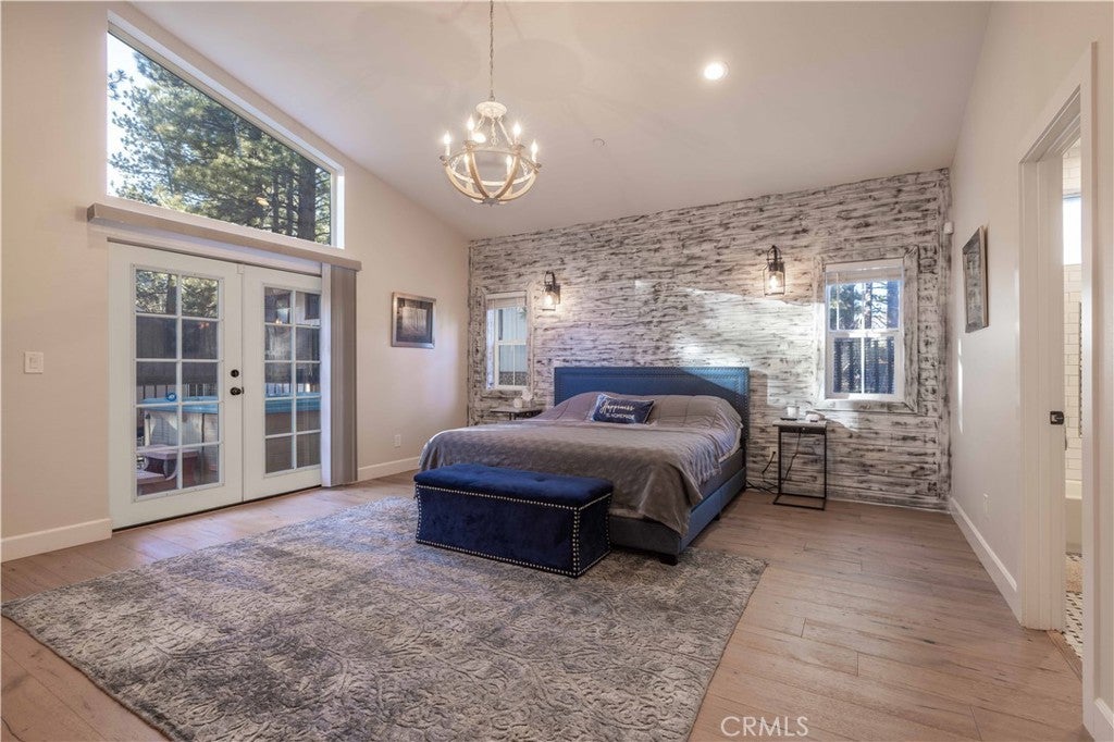 Experience effortless single-level living in this beautifully crafted newer construction home, ideally located in the heart of Big Bear Lake. Just around the corner from the lake, beach, Meadow Park, dog park, tennis and basketball courts, this property offers rare proximity to Big Bear’s most sought-after amenities. The home is also just minutes from the Village, farmers market, and ski slopes, making it easy to enjoy everything the area has to offer year-round. Whether you’re walking the lake, heading to the slopes, or grabbing dinner in the Village, the location delivers both convenience and lifestyle. Thoughtfully designed for comfort and style, the residence features a gourmet kitchen with an oversized island, Calacatta quartz countertops, classic subway tile backsplash, stainless steel appliances, and a spacious walk-in pantry. The open-concept layout is filled with natural light from abundant dual-pane windows and enhanced by soaring cathedral ceilings, creating an airy and welcoming atmosphere. Upgrades throughout the home include premium interior and exterior paint, distressed-look engineered flooring, and designer doors, hardware, and lighting. Custom tiled bathrooms. Each bedroom is equipped with ceiling fans for year-round comfort. The primary suite offers a private retreat with an en-suite bath and double French doors that open to a generous 440-square-foot backyard porch—ideal for entertaining or unwinding. Step outside to enjoy the outdoor jacuzzi, spacious yard, and peaceful evenings under the stars. This is true mountain living with unbeatable access, modern comfort, and a location that puts you close to everything Big Bear Lake has to offer.