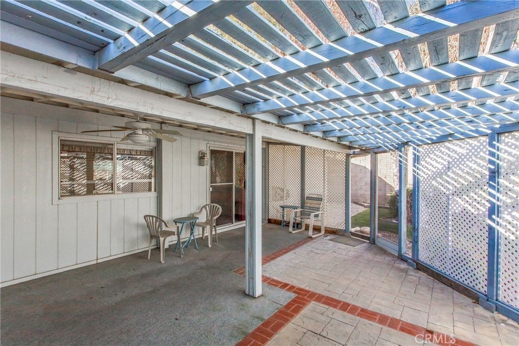 This wonderful home has so much to offer! Upon entering through the front door, you’re welcomed into a large, open living room with a separate dining area, perfect for everyday living and entertaining. The centrally located kitchen features ample cabinetry, generous counter space, and a convenient breakfast bar, and comes equipped with a refrigerator and dishwasher. Both guest bedrooms are situated at the front of the home and are filled with beautiful natural light. A nearby guest bathroom includes a tub and shower combination. The home also offers an indoor laundry room with additional storage cabinets for added convenience. The spacious primary bedroom is privately located at the back of the home, providing a quiet retreat away from the guest rooms. The primary bathroom is generously sized and includes a walk-in shower, vanity area, and abundant storage. A charming sunroom off the living room and kitchen creates the perfect space to enjoy morning coffee or unwind on a warm summer evening. The private backyard features a grassy area, a lemon tree, and is fully enclosed with a block wall. Completing the home is a two-car garage attached to the house with a covered walkway that leads directly into the laundry area. Don’t miss this opportunity! This home is a must-see!