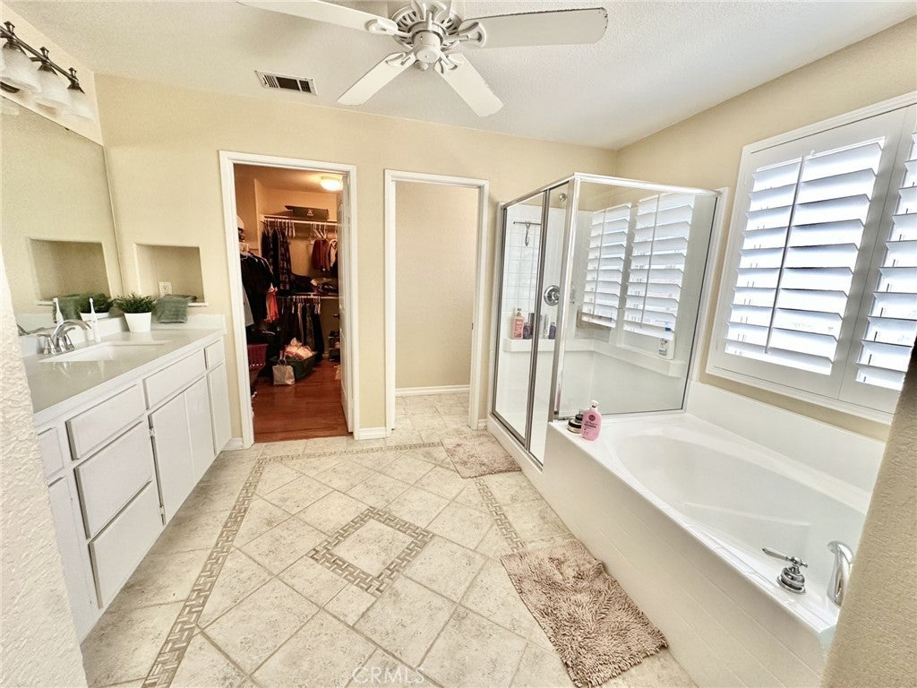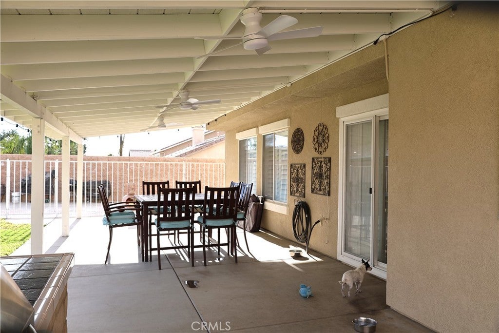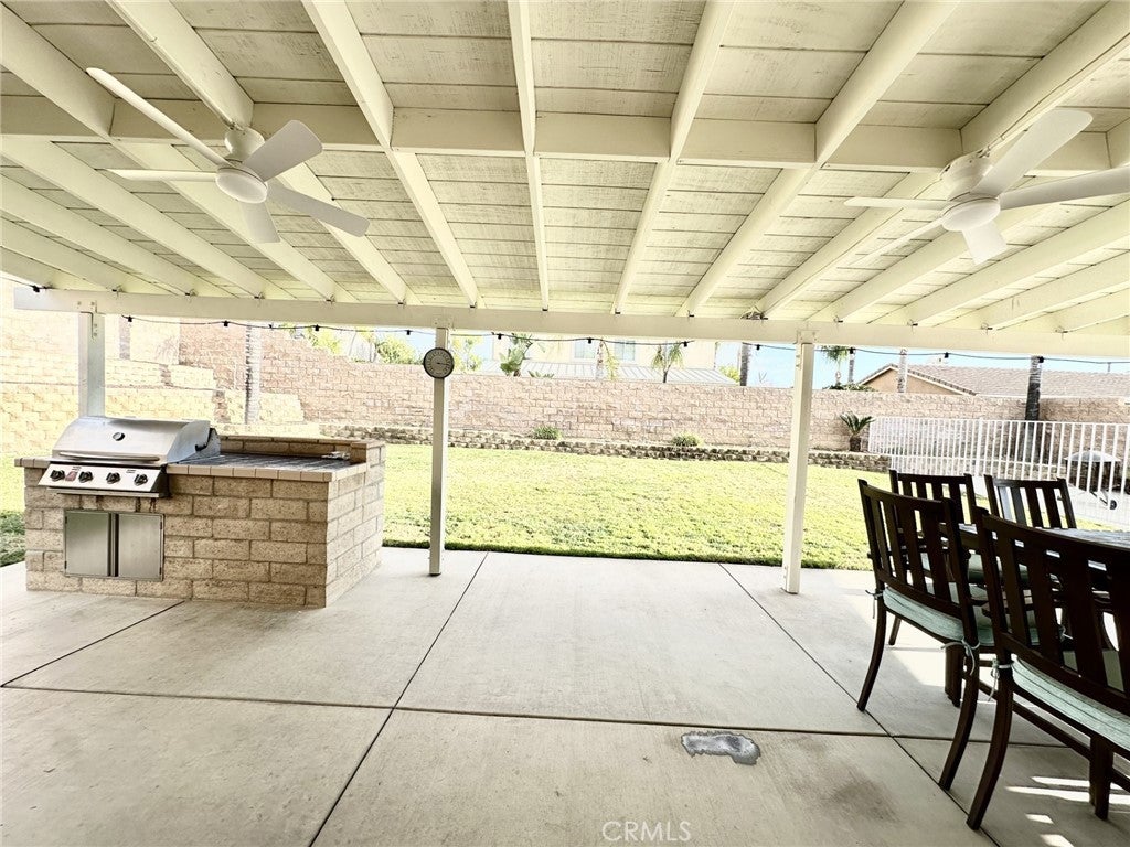 WELCOME TO VENTANA ENTRADA, THIS 4 BEDROOM, 2 1/2 BATH HOME LOCATED IN THE HIGHLY SOUGHT AFTER COMMUNITY OF EAST HIGHLAND WHERE THERE IS NO HOA!! PERFECT FOR THE CAR ENTHUSIAST FEATURING A 4 CAR ATTACHED GARAGE, ONE IS TANDEM. GIVING PLENTY OF SPACE FOR ALL YOUR CARS AND TOYS AS WELL AS A FULLY GATED RV PARKING AREA. KITCHEN HAS BEEN FULLY REMODELED WITH RECESSED LIGHTING, WHITE CABINETRY, KITCHEN AID APPLIANCES, ELEGANT DOOR HANDLES, GRAY ISLAND WITH BEAUTIFUL GRANITE COUNTERTOP AND AN ELECTRICAL OUTLET AND CLEAR GLASS DROP DOWN ISLAND LIGHTING, GRANITE ROCK COUNTERTOP AND DECORATIVE BACKSPLASH, BUILT-IN MICROWAVE HOOD VENT, FAMILY STYLE LARGE PLANTATION SINK WITH SPIRAL FAUCET. DESIGNER TILE FLOORING IN THE KITCHEN AND ALL WOOD FLOORING THROUGHOUT. GAS BURNING FIREPLACE IN LIVING ROOM, PLANTATION WHITE SHUTTERS THROUGHOUT. UPSTAIRS YOU WILL ENTER A SPACIOUS LOFT FOR YOUR UPSTAIRS FAMILY GATHERINGS. LEADING TO A VERY LARGE PRIMARY WITH A NEW GLASS ENCLOSURE AND NEW GLASS SHOWER DOOR AND NEW MARBLE COUNTERTOP. THE HALL BATHROOM HAS BEEN FULLY REMODELED WITH DUAL SINKS, GRANITE COUNTERTOP WHITE TILE BACKSPLASH AND ELEGANT LIGHTING AND MIRRORS AND TILE FLOORING. CEILING FANS ARE IN EVERY BEDROOM AND DUAL AC UNITS. BACKYARD IS PERFECT FOR ALL YOUR FAMILY GATHERINGS FEATURING A COVERED CONCRETE PATIO THAT IS 16 FEET BY 42 FEET, BUILT IN BARBEQUE ISLAND, CEILING FANS, AND A BLOCK WALL FOR YOUR PRIVACY. SOLAR IS PURCHASED WITH AN ASSUMABLE LOAN