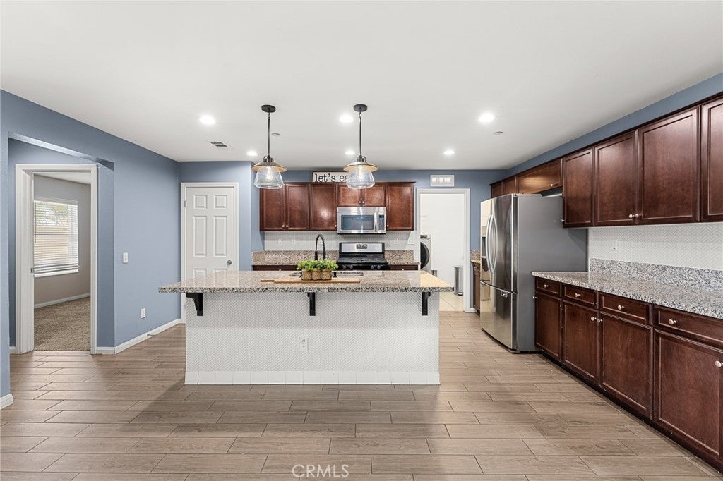 OPEN HOUSE 2/7/2026, 11AM-2PM!! Welcome to this MOVE IN READY home located in a no HOA community located near local freeway access. This property offers 5 bedrooms, 3.5 bathrooms PLUS A LOFT. The downstairs bedroom is a JUNIOR suite with its own bathroom! The backyard is equipped with low maintenance artificial grass and a nice sized patio cover, the front yard has a large driveway with the possibility of RV parking! Open concept kitchen is completed with granite countertops, and a subtle white subway tile backsplash and a good sized island and pendant lighting. This home has upgraded "wood-like" tile flooring on the main level and NEW carpet throughout the rest of the home. On the first floor you will find the first of five bedrooms, upstairs there is a loft for an additional living space, space for kids,or what have you. Did I mention the View? NO NEIGHBOR BEHIND, which offers privacy and serenity. This home also has PAID OFF SOLAR!