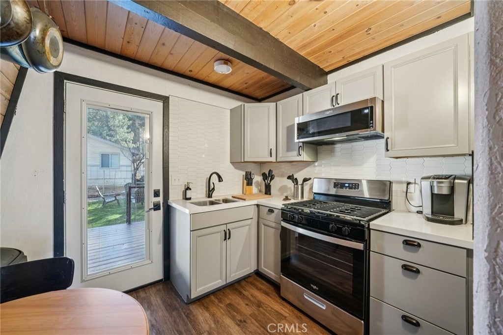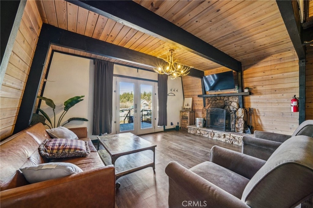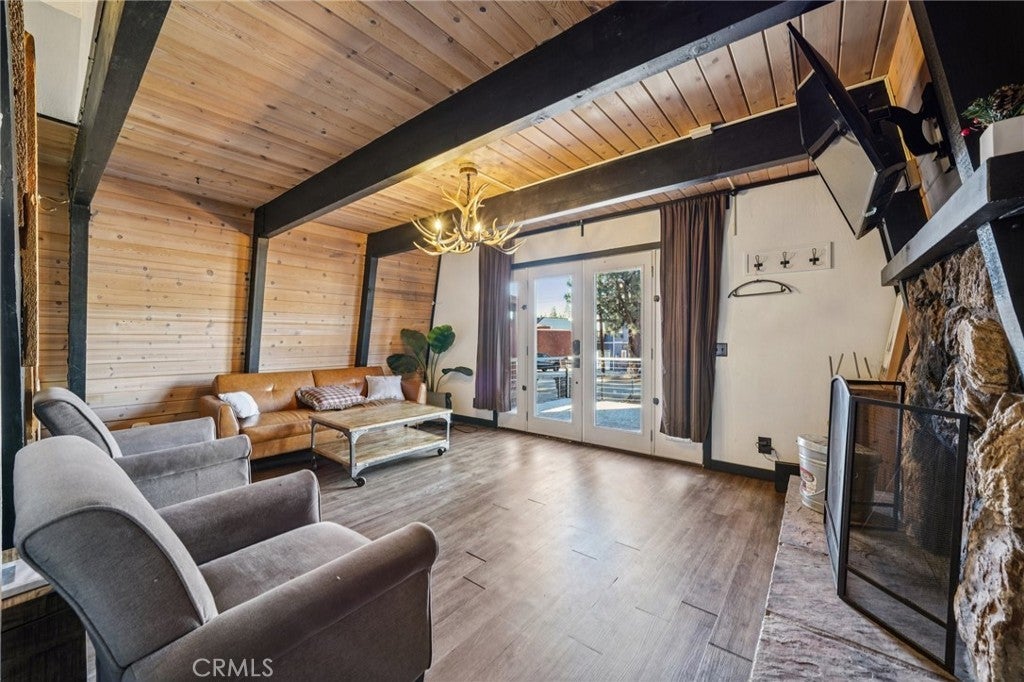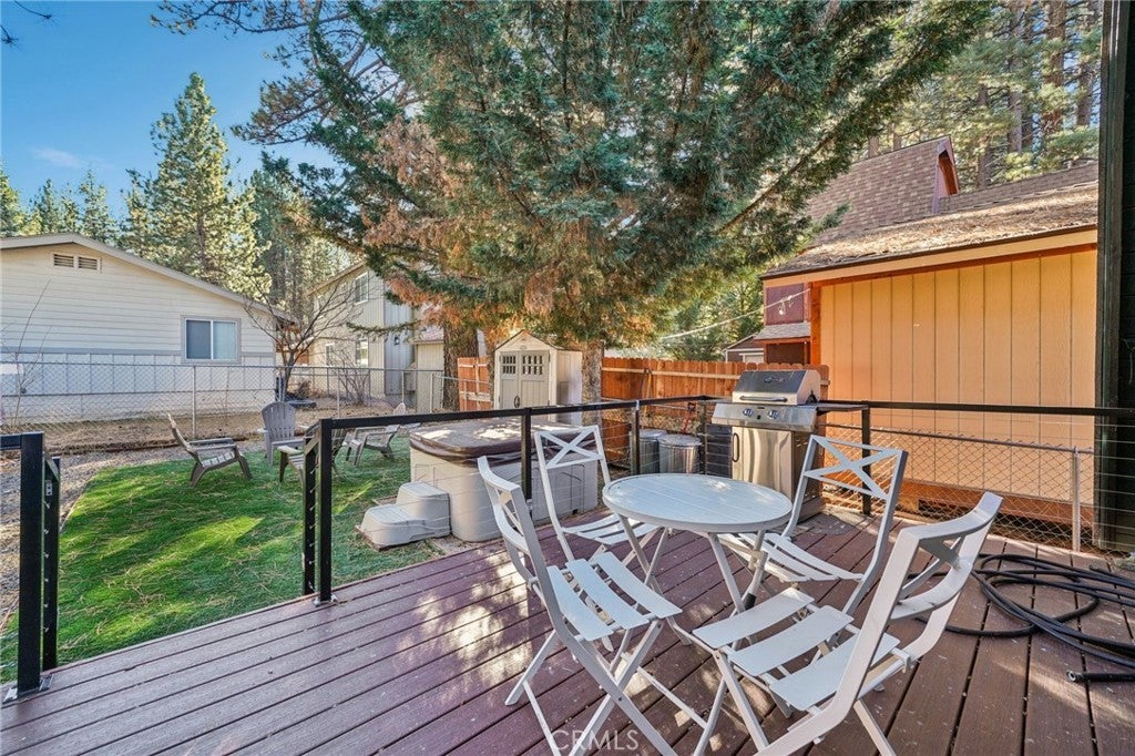 Successful vacation rental just minutes from Snow Summit, Bear Mountain shuttles and parking, hiking trails, and the zoo—this adorable modified A-frame in lower Moonridge offers the perfect blend of location, charm, and comfort. With flat roads and easy year-round access, this mountain retreat is ideal as a getaway, investment, or full-time home. Inside, you’ll find a warm cabin ambiance with wood beams, wood-paneled walls, and a cozy rock fireplace that anchors the living space. Recent upgrades bring modern convenience, including newer appliances and updates to the kitchen and bathroom, creating a stylish yet inviting interior that balances rustic character. Go outside to enjoy the beautifully designed exterior spaces featuring low-maintenance Trex decking and a fantastic backyard setup. The spacious deck is perfect for BBQs, outdoor dining, and entertaining, while the grassy fenced yard provides room to relax or play. Unwind in the hot tub under the mountain sky, and take advantage of the storage shed for all your gear. This property delivers the ultimate Big Bear lifestyle with strong rental appeal and classic cabin charm.