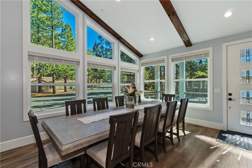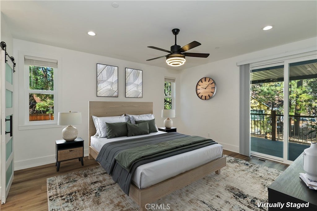 This 2023 built masterpiece has never been lived in and is ready for you to make it a home! As you pull up you will be pleased to see this one story custom modern home rests on a level corner lot ~ You will love spending mornings on the covered front porch, relaxing with your warm cup of coffee, listening to mother nature greet a new day while breathing the clean mountain air ~ As you enter you will be greeted by high vaulted and wood beamed ceilings above your massive great room ~ The living room features a floor to ceiling stacked stone electric fireplace ~ The kitchen is a chef's delight with its granite counter tops and backsplash, brand new appliances, and huge island/breakfast bar ~ Walls of windows allow natural light to flood in, almost as if the outdoors have come inside ~ 8mm thick wood grain vinyl floors flow throughout and all doors are 9 foot tall ~ 3 of the 4 bedrooms are En Suite with their own bathrooms ~ The master bedroom opens to the covered section of the back deck where you have hot tub potential with the electric already ran in the wall ~ The master bathroom boasts a two person jetted tub and two 4 foot by 9 foot porcelain walls in the shower ~ All 4 bathrooms have temperature adjustable electric heated floors, porcelain shower walls and granite counter tops ~ In the back of the house there is room to park your RV, boat, or any other toys you need space for ~ The attached 2 car garage has an EV charger and the solar panels are paid for ~ You can walk to the lake and Boulder Bay Park or take a 5 minute drive to Pleasure Point Marina for a day of play out on the lake ~ Whether you want to relax in mountains, spend the summers adventuring outside, or enjoy the ski slopes in the winter, this is the where you can do it all with all of your loved ones under one roof and live in luxury!