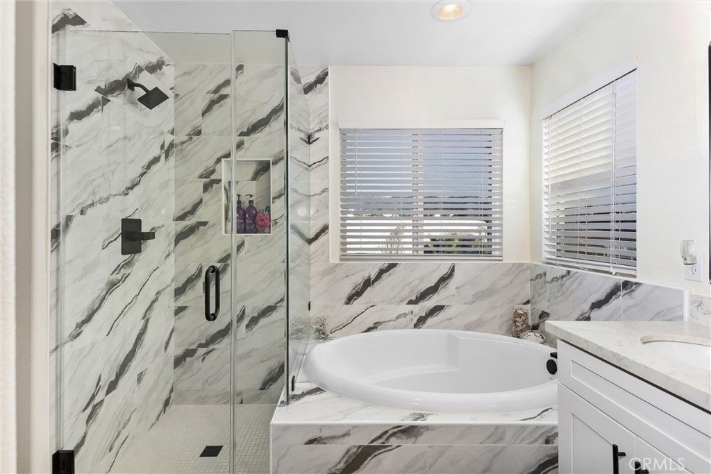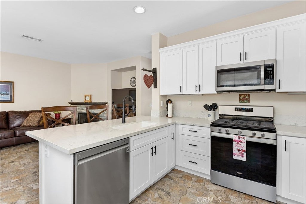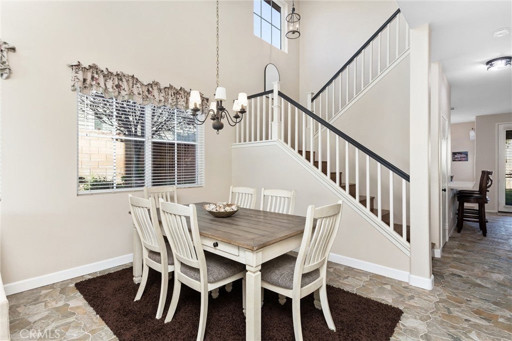 Welcome to Yucaipa's most desirable community, Chapman Heights! This beautifully updated 4-bedroom, 2.5 bath home featuring upgrades galore. Upon entry, you’re welcomed by a formal living and dining area with high ceilings that create an open and airy feel. Ceramic tile imported from Spain flows throughout the downstairs, adding durability and style. Past the dining area, the staircase leads to the second level with vinyl wood plank flooring throughout the upstairs. Beneath the stairs is a wraparound storage and coat closet, offering practical and well-designed storage. The kitchen opens to the family room, creating an ideal space for everyday living and entertaining. The family room features a remodeled fireplace, adding character and warmth to the space. The updated kitchen includes new stainless steel appliances with a no-preheat air fry oven, a single-basin sink with pull-down faucet, and custom cabinetry with pull-out pantry drawers, a lazy Susan, a pull-out spice rack, and soft-close drawers and doors. Additional built-in counters and cabinets provide extra storage, complemented by new light fixtures and modern finishes throughout. Upstairs, the primary suite offers a comfortable retreat with natural light, a remodeled bathroom, and a spacious closet. Three additional bedrooms provide flexibility for guests, home office, or family needs. The guest bathroom features a remodeled floor-to-ceiling tiled shower with convenient access to one of the bedrooms. The private backyard includes a covered patio, rose bushes, decorative river rock landscaping, and lemon and lime trees, perfect for outdoor enjoyment. Additional features include a three-car tandem garage with cabinets for extra storage, a brand-new garage door, and a whole-home water softener system. This home offers a great combination of upgrades, space, and functionality in a desirable setting. From upgraded finishes to versatile living spaces, this home checks all the boxes.