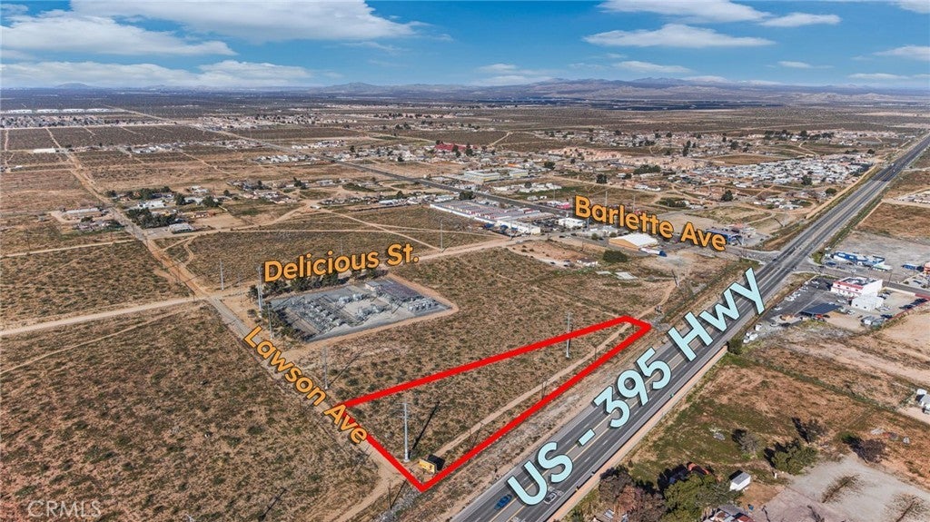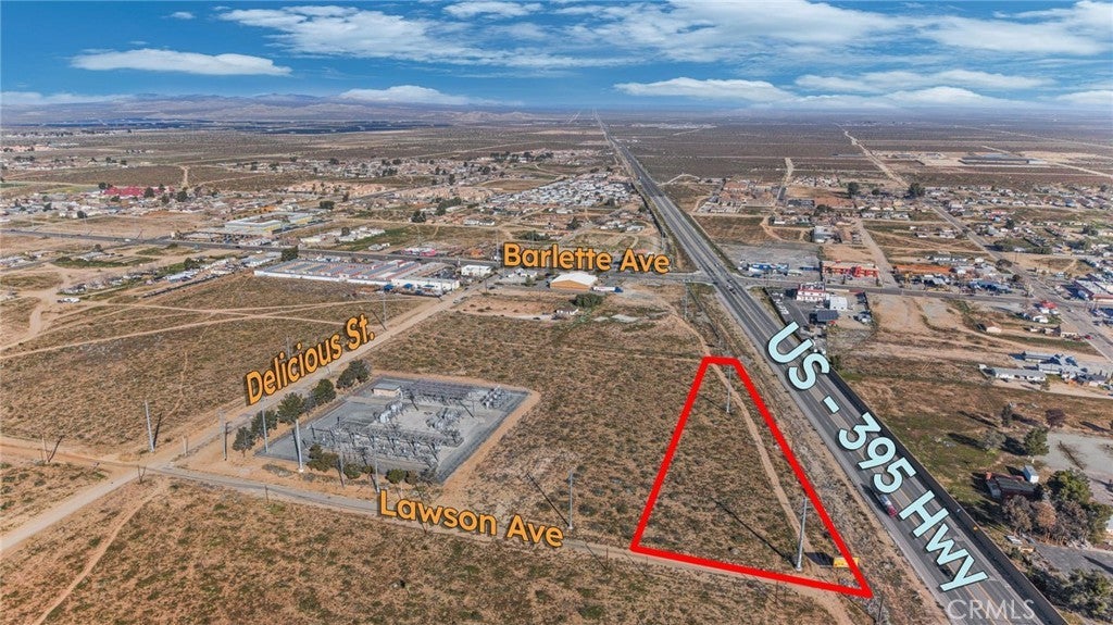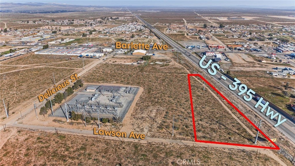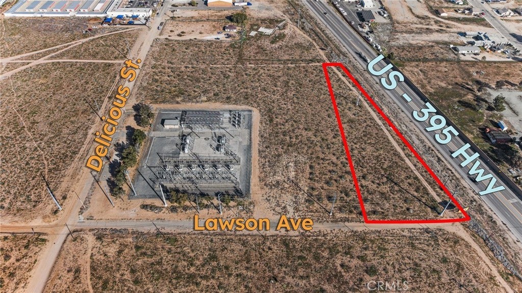 Prime vacant land opportunity in Adelanto, CA, offering excellent potential for commercial, mixed-use, multi-family, or investment development (buyer to verify all zoning, permitted uses, and entitlements). The property is highly visible with strong exposure to Highway 395 traffic and is located near the proposed Caltrans signalized intersection at Lawson Ave and Hwy 395 (buyer to verify status and timing). Adjacent to major utility infrastructure, including Southern California Edison, with water, power, and sewer nearby. Close proximity to the San Bernardino County Sheriff’s Department (Adelanto Station), Adelanto Branch Library, Adelanto City Hall, and a public park, along with surrounding commercial activity, enhances accessibility and appeal. An excellent opportunity for developers or investors seeking visibility, infrastructure access, and growth potential. This parcel is ideally sold together with the adjacent parcel APN? 0459181630000 to maximize development potential, though each lot is available individually.