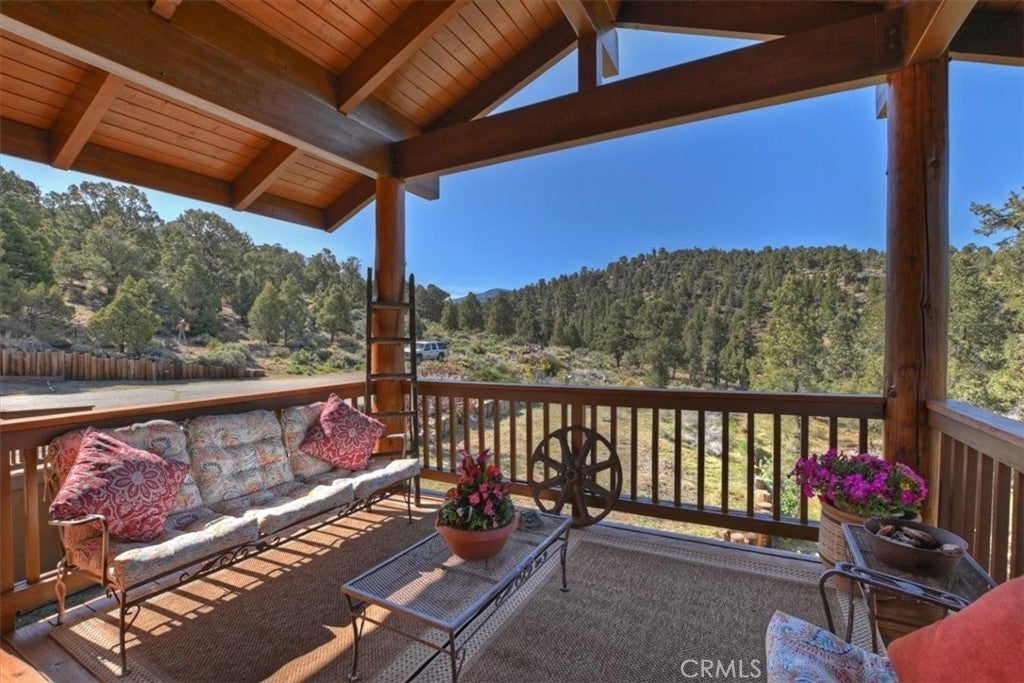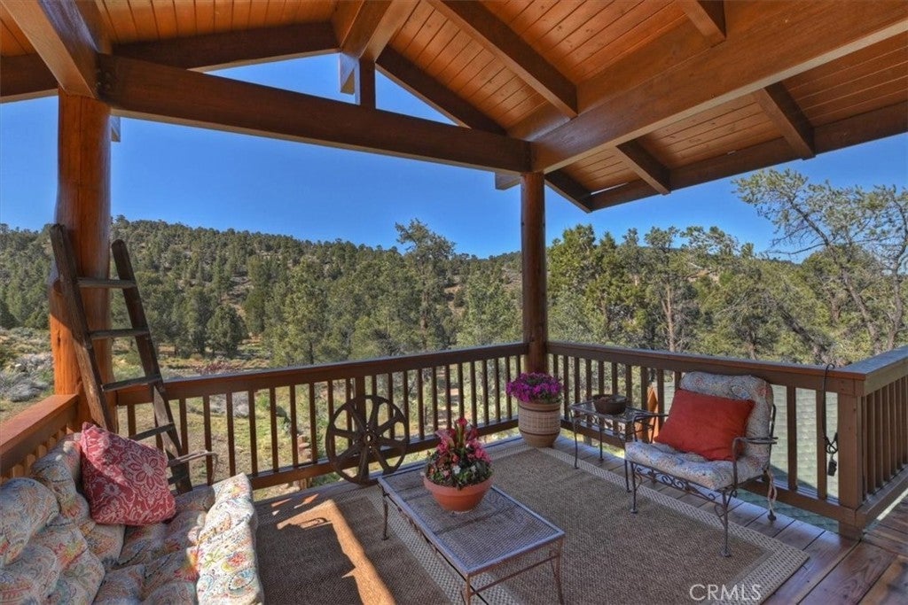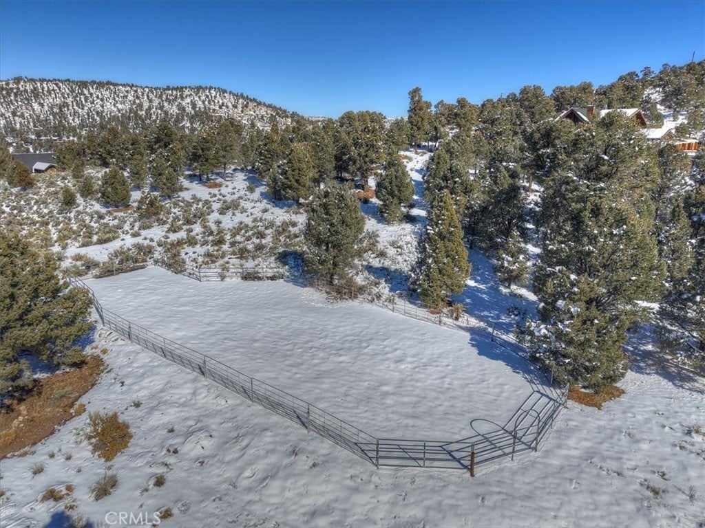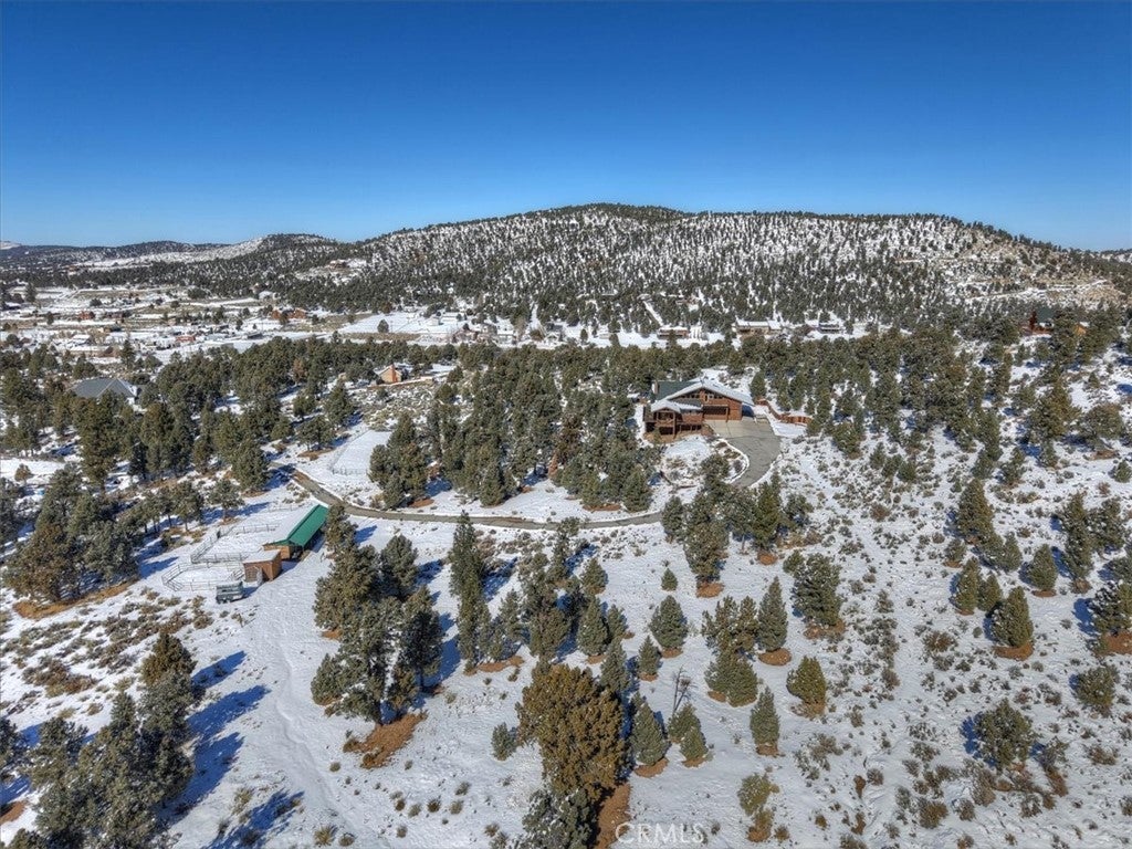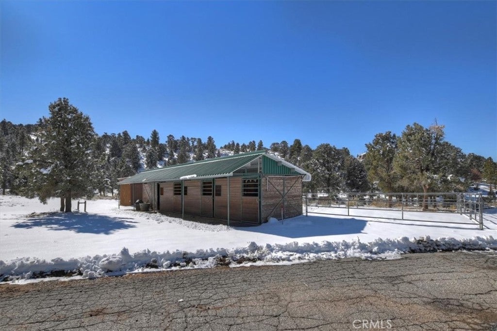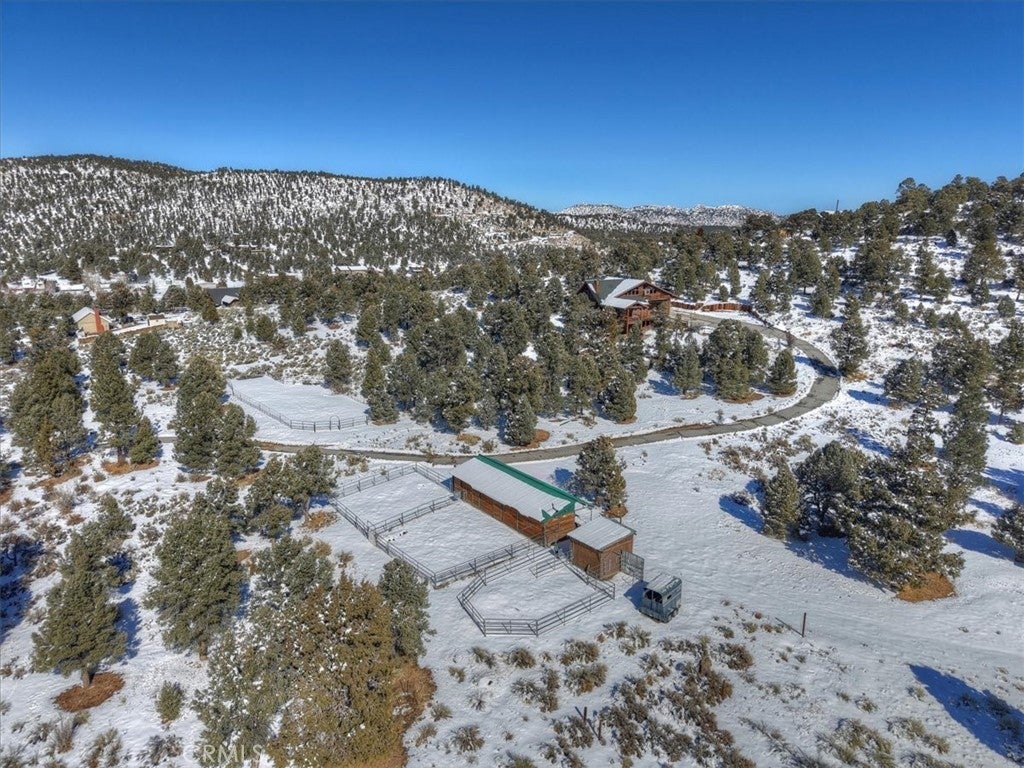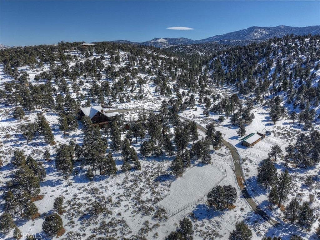 HOME, HOME ON THE RANGE... Welcome to your 10-acre mini ranch. You’ll love the views and the peaceful atmosphere here. This custom ranch-style home offers a tranquil setting, with five bedrooms (or four plus a loft) and four bathrooms. The home has its own private well and is about 3,300 square feet. Features include a spacious open floor plan, a floor-to-ceiling rock fireplace in the living room, and another in the main bedroom. There is a full kitchen with stainless steel appliances, including a range, dishwasher, microwave, refrigerator, granite countertops, a pantry, a breakfast bar, a spacious dining area, central forced-air heating, hickory wood floors, and a full laundry room with a deep sink. The home also features vaulted ceilings, a three-car attached garage, large redwood decks, and a three-stall barn, each with its own corral, an attached tack room with a half bath, a hay storage shed, a riding arena, and covered RV parking. All of this is set on 10 wooded acres in the middle of a pinion forest, with views of the surrounding hills and Baldwin Valley. The exterior has just been freshly painted and stained. This property is ideal for equestrian use but offers many other uses as well. Furnishingsare negotiable.