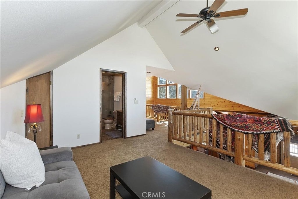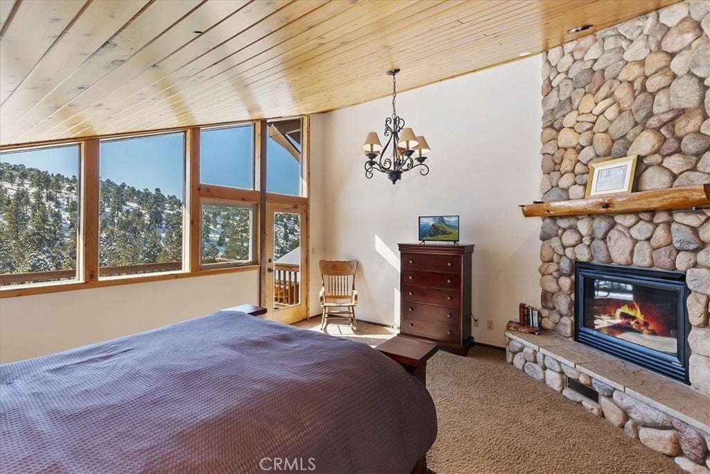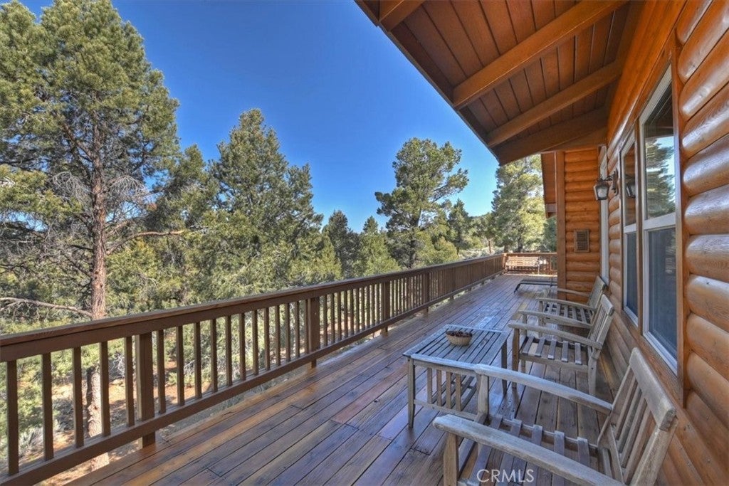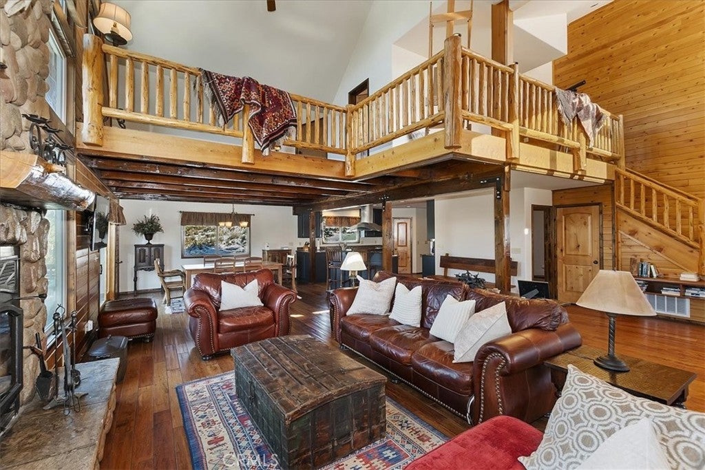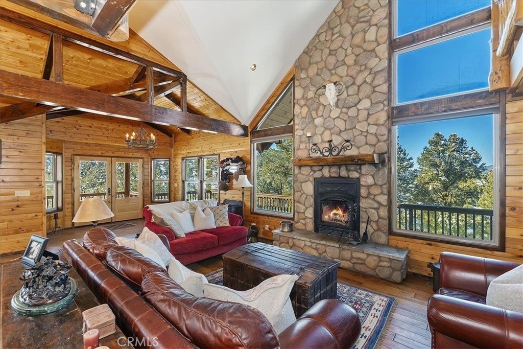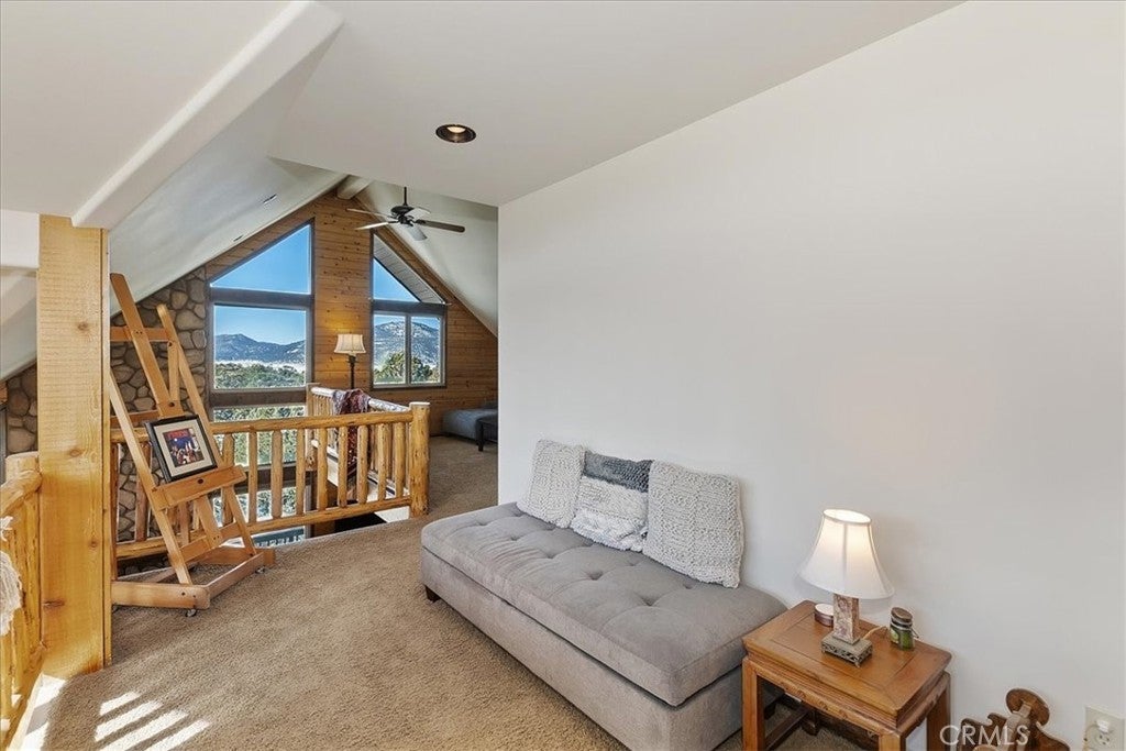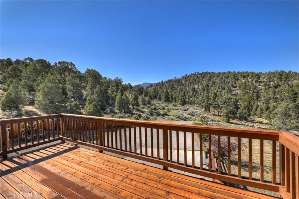 HOME, HOME ON THE RANGE... Welcome to your 10-acre mini ranch. You’ll love the views and the peaceful atmosphere here. This custom ranch-style home offers a tranquil setting, with five bedrooms (or four plus a loft) and four bathrooms. The home has its own private well and is about 3,300 square feet. Features include a spacious open floor plan, a floor-to-ceiling rock fireplace in the living room, and another in the main bedroom. There is a full kitchen with stainless steel appliances, including a range, dishwasher, microwave, refrigerator, granite countertops, a pantry, a breakfast bar, a spacious dining area, central forced-air heating, hickory wood floors, and a full laundry room with a deep sink. The home also features vaulted ceilings, a three-car attached garage, large redwood decks, and a three-stall barn, each with its own corral, an attached tack room with a half bath, a hay storage shed, a riding arena, and covered RV parking. All of this is set on 10 wooded acres in the middle of a pinion forest, with views of the surrounding hills and Baldwin Valley. The exterior has just been freshly painted and stained. This property is ideal for equestrian use but offers many other uses as well. Furnishingsare negotiable.