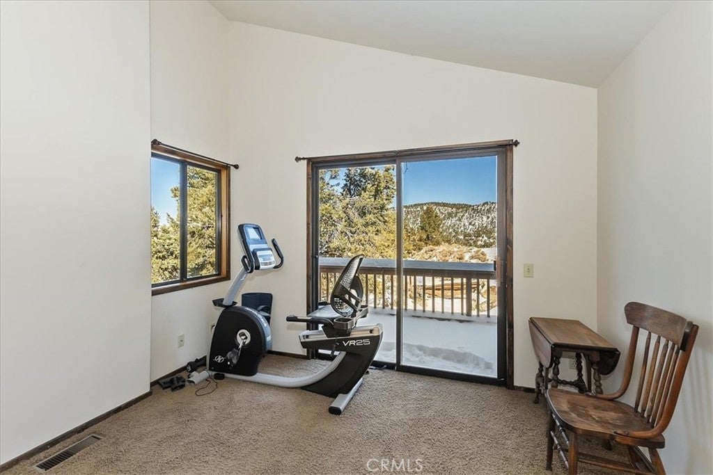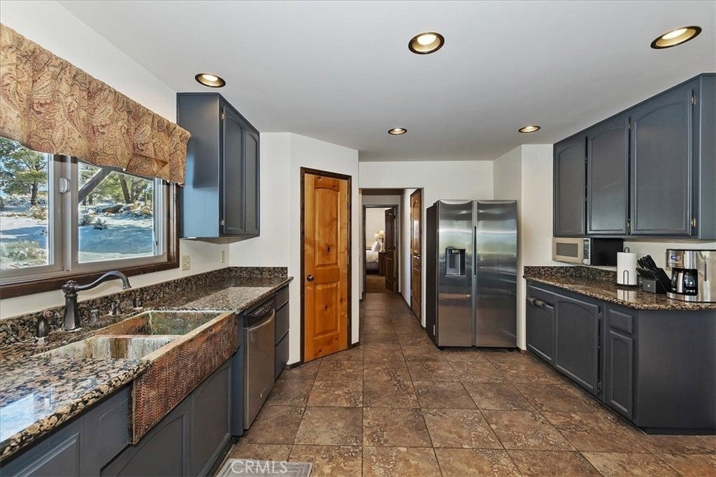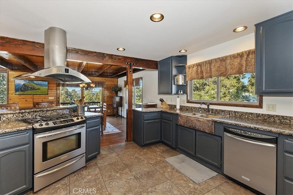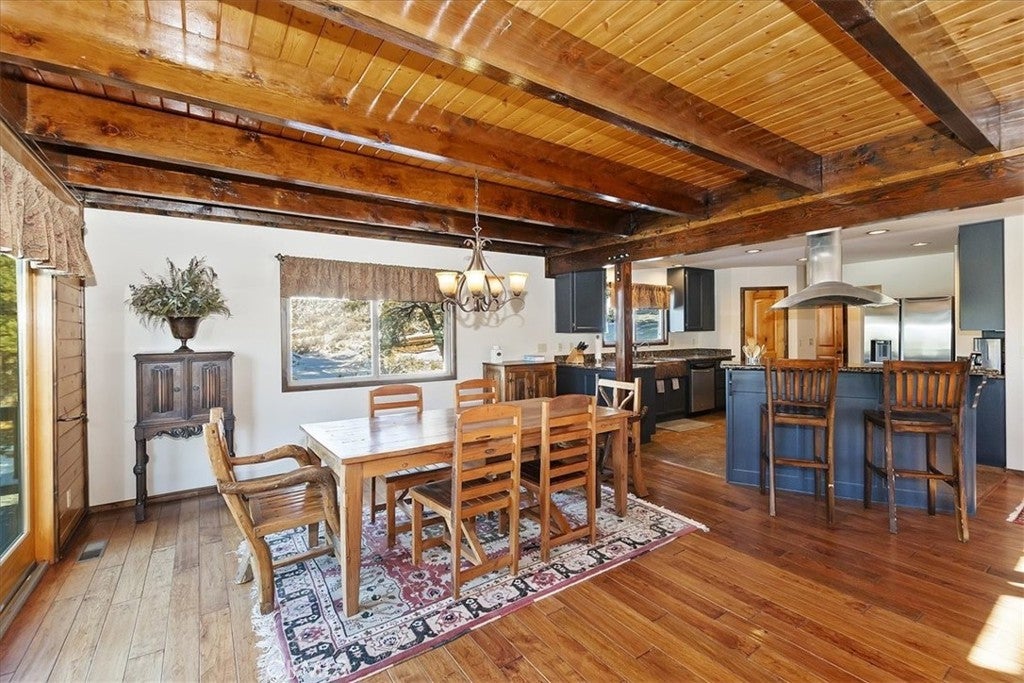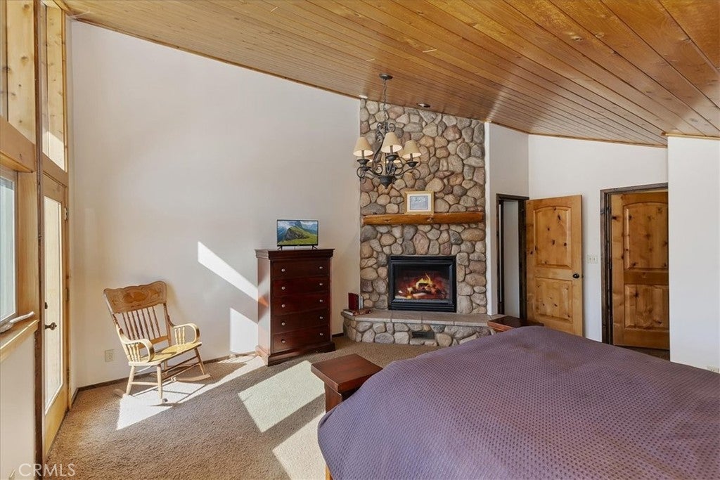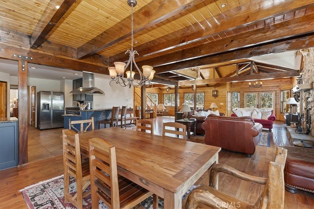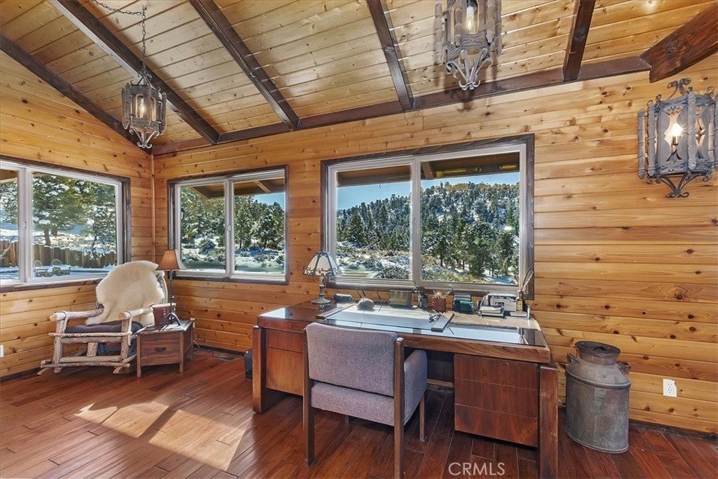 HOME, HOME ON THE RANGE... Welcome to your 10-acre mini ranch. You’ll love the views and the peaceful atmosphere here. This custom ranch-style home offers a tranquil setting, with five bedrooms (or four plus a loft) and four bathrooms. The home has its own private well and is about 3,300 square feet. Features include a spacious open floor plan, a floor-to-ceiling rock fireplace in the living room, and another in the main bedroom. There is a full kitchen with stainless steel appliances, including a range, dishwasher, microwave, refrigerator, granite countertops, a pantry, a breakfast bar, a spacious dining area, central forced-air heating, hickory wood floors, and a full laundry room with a deep sink. The home also features vaulted ceilings, a three-car attached garage, large redwood decks, and a three-stall barn, each with its own corral, an attached tack room with a half bath, a hay storage shed, a riding arena, and covered RV parking. All of this is set on 10 wooded acres in the middle of a pinion forest, with views of the surrounding hills and Baldwin Valley. The exterior has just been freshly painted and stained. This property is ideal for equestrian use but offers many other uses as well. Furnishingsare negotiable.