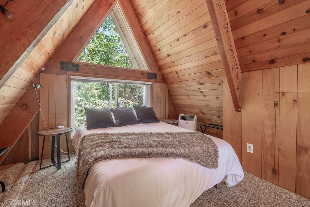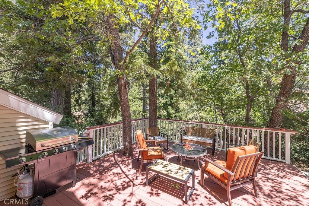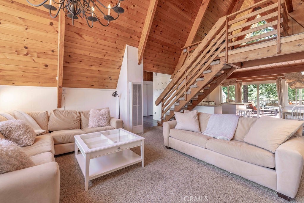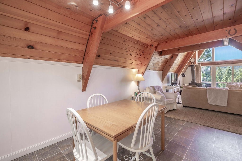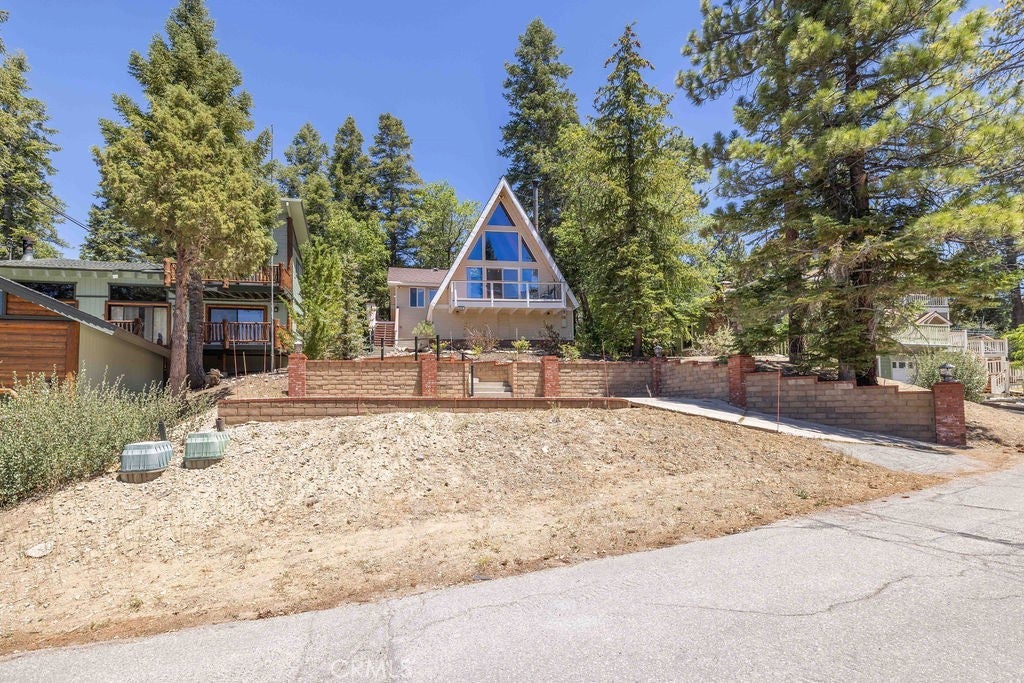 Tucked beneath a canopy of whispering pines, this picture-perfect A-frame is the ultimate mountain getaway! An enchanting retreat designed for cozy weekends, romantic escapes, and unforgettable memories. Located in the highly desirable Moonridge neighborhood of Big Bear Lake, this stylish mountain home is just around the corner from Bear Mountain Ski Resort, Big Bear Golf Course, the Alpine Zoo, scenic hiking trails, incredible mountain biking, Moonridge Coffee and Dank Donuts. Inside, you’ll be captivated by the dramatic architecture, soaring vaulted ceilings with exposed wood beams, iconic A-frame windows that flood the space with natural light, and a warm, inviting layout perfect for relaxing or entertaining. The spacious living room features a freestanding wood-burning stove, balcony lounging, and incredible views from every angle. Whether you're curled up by the fire after a day on the slopes or enjoying a quiet morning coffee, the cabin offers a true alpine experience. The open kitchen and dining area make hosting effortless, while the upstairs loft serves as a romantic primary suite; airy, tranquil, and surrounded by trees. And having two bathrooms is so convenient! With 1,066 square feet of living space, this turnkey cabin lives much larger than expected. Step outside to your private backyard deck with built-in seating and a gas fire pit, perfect for stargazing. An upslope lot and oversized driveway offer parking for 3 vehicles, an uncommon bonus in this sought-after area. Whether you’re looking for a vacation home, short-term rental investment property, or even a dreamy full-time residence, this gorgeous cabin is only 2.5 hours approximately from Los Angeles, Orange County, and San Diego, making weekend getaways to the mountains easy! Don’t miss your chance to own this iconic Big Bear A-frame in one of the most beloved neighborhoods in the mountains—schedule your showing today!