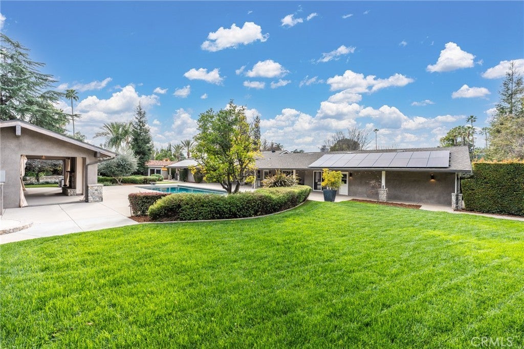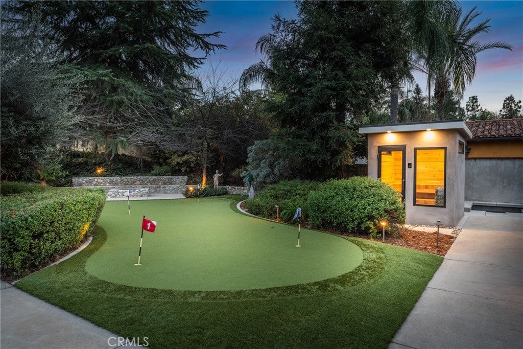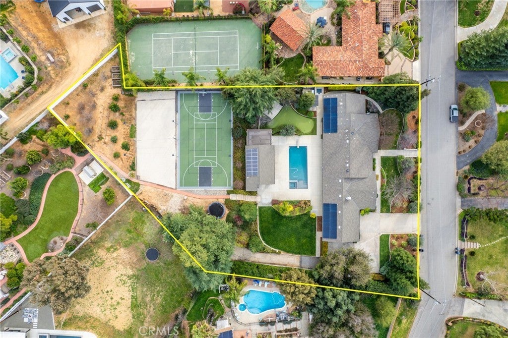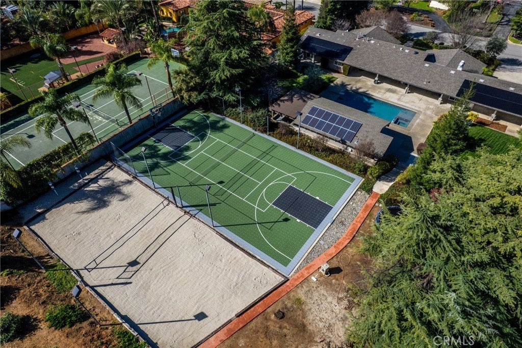 It’s not just a house, it’s an all-inclusive resort. This sprawling single story on 1+ acre lot is fully landscaped and loaded with luxurious amenities! You and your family will enjoy swimming, soaking in the jacuzzi, relaxing in the sauna, taking a brisk cold plunge, playing beach volleyball, basketball, or tennis, perfecting your game on the putting green, roasting marshmallows over the firepit, cooking in your outdoor gourmet kitchen, or simply unwinding in the poolside cabana with its fireplace and media system. This completely updated home has been meticulously designed and decorated, both inside and out. The interior and cabana were repainted in 2026. In the kitchen, discover Caesarstone quartz countertops, updated subway tile & faucet, and top-of-the-line appliances. Plenty of built-in features throughout, including a wet bar with custom cabinetry, a Sub-Zero wine fridge and beverage fridge, and a marble countertop. Your primary suite features a walk-in closet, an ensuite bath, and an adjoining office with direct patio access. With the addition of a separate exercise room, along with your resort-style backyard retreat, this estate is designed for both active lifestyles and supreme relaxation. A sprawling garden includes raised beds, three varietals of grape vines, and several fruit trees, including pear, Meyer lemon, Eureka lemon, avocado, mandarin, grapefruit, and Valencia orange. Updated WiFi Nest thermostats and security cameras. Owned solar with 50 panels. Electric car chargers in your garage. Additional space for RV parking. Schedule your private showing!