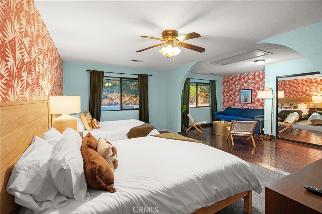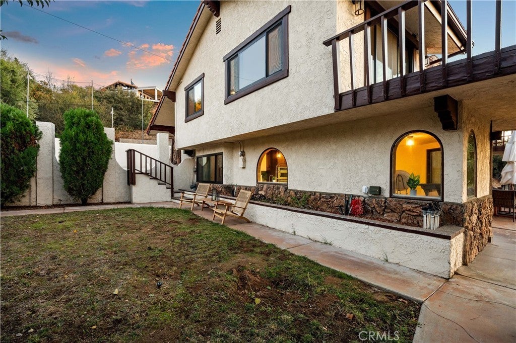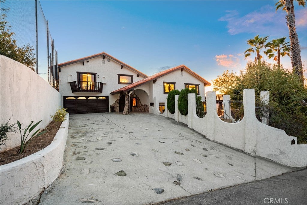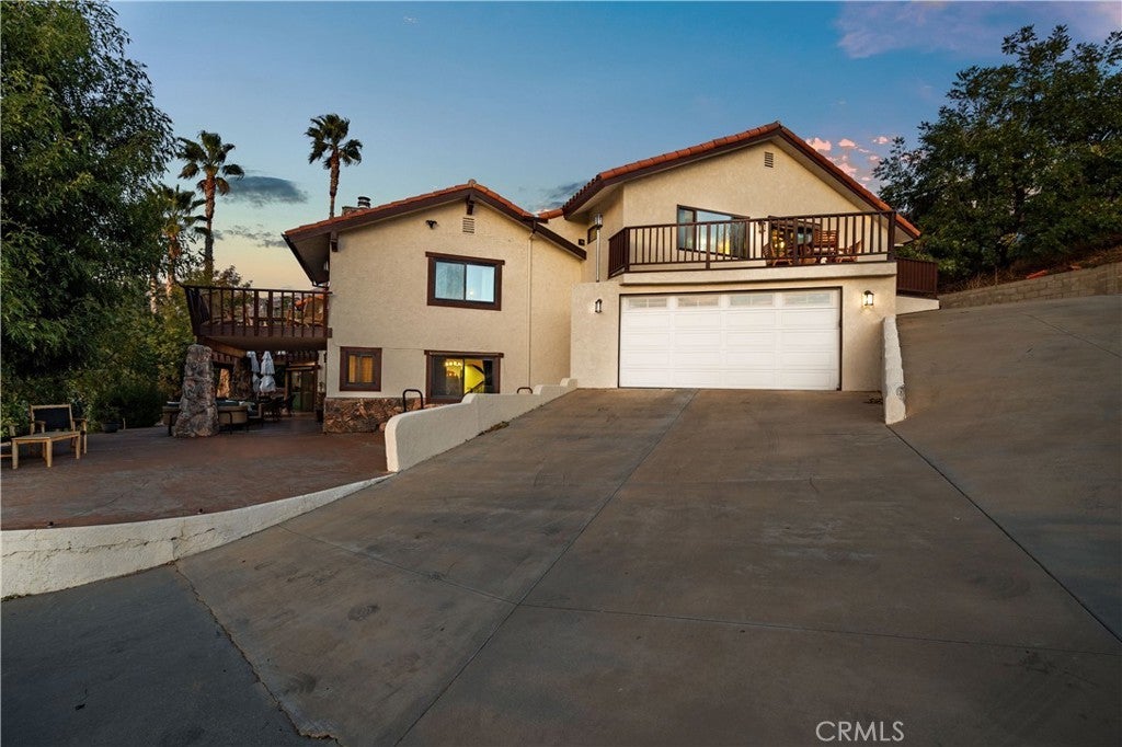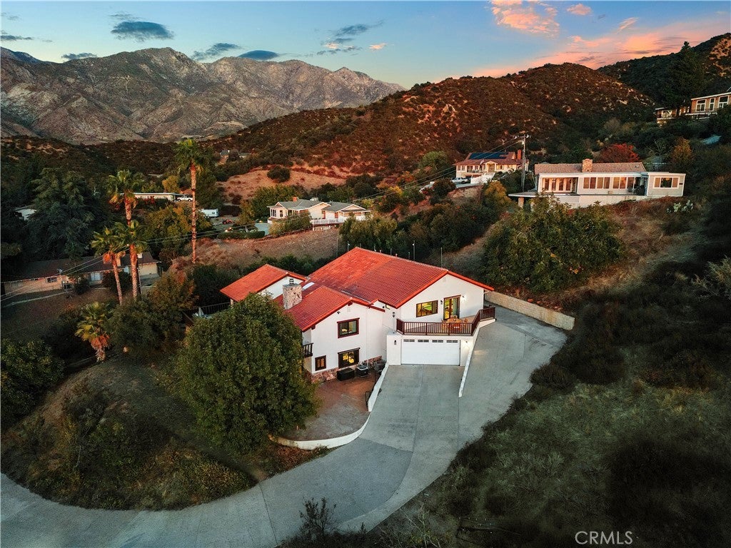 Welcome to an extraordinary hilltop Spanish-Mediterranean retreat with breathtaking mountain and city-light views. Privately positioned on 1.32 acres at the end of a quiet road shared by only four homes, this tri-level estate offers rare seclusion, panoramic scenery, and a lifestyle that feels like a permanent getaway. Spanning 4,371 square feet, the home features 5 bedrooms, 4.5 bathrooms, and a 4-car drive-through garage, thoughtfully designed for multi-generational living and memorable entertaining. From the moment you enter, soaring ceilings, floor-to-ceiling windows, imported wood accents, custom doors, and rich hardwood floors create warmth and timeless character. The dramatic living room showcases 20-foot ceilings, exposed wood beams, a striking stone fireplace, and an architectural catwalk that connects the living spaces while framing the incredible views. The main level also includes a den with built-in bar, formal dining room, spacious kitchen with island, guest bath, and mudroom/storage area—ideal for hosting with ease. This home offers two private primary suites, each with en-suite bathrooms and private balconies. One suite features a spa-inspired jetted tub perfectly positioned to soak in the scenery. The upper level includes a cozy lounge landing, two additional bedrooms, a full bathroom, a large laundry room, and an oversized bonus room currently used as a bedroom and game room. Newer windows and sliding doors open to multiple decks and patios, seamlessly blending indoor and outdoor living. Outside, enjoy a long private driveway, RV and boat parking, additional parking areas, solar power, a sand volleyball court, fruit trees including walnut, and a jacuzzi overlooking the hills—perfect for stargazing and unwinding at sunset. Conveniently located just minutes from Oak Glen’s apple orchards, vineyards, regional parks, and the shops and dining of uptown Yucaipa, yet feeling worlds away. No HOA. Offered fully furnished and ideal as a primary residence, second home, or potential vacation rental. Just 74 miles to Los Angeles and 41 miles to Palm Springs. A rare hilltop sanctuary—schedule your private showing today.