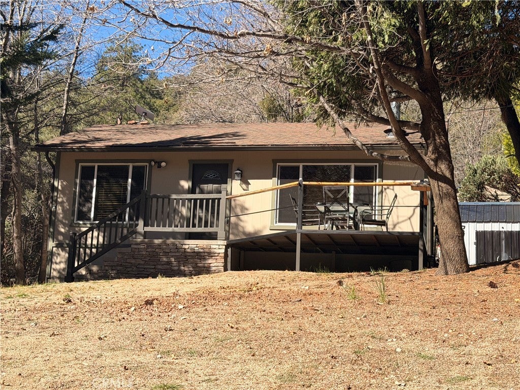 Charming Mountain Cabin WITH Bonus Lot in Angeles Oaks Come and take a look at this cute, well-maintained cabin nestled in the peaceful mountain town of Angeles Oaks. This inviting home features recent upgrades including new exterior siding and trim, a front deck, and a remodeled bathroom. Dual-pane windows and beautiful laminate flooring enhance comfort and style throughout the home. The kitchen includes all major appliances, and a new water heater was installed in 2025. Stay cozy year-round with a wood-burning stove and wall furnace. Both bedrooms are clean, fresh, and move-in ready. A vacant lot directly behind the home is included in the sale (APN 0305-652-28-0000). This makes a total lot size of 12,000 square feet. Currently used for driveway access, parking, and storage, this extra parcel offers excellent flexibility and potential for future use. The outdoor setting is just as appealing, with two storage sheds, two apple trees, and a spacious front deck—perfect for dining or relaxing beneath mature pine and cedar trees. This is a wonderful opportunity to own a charming mountain retreat with added land in a serene natural setting.