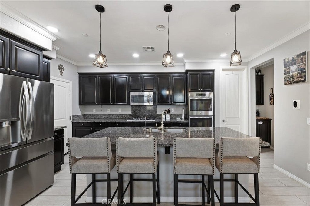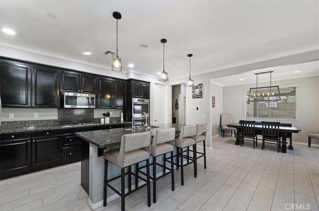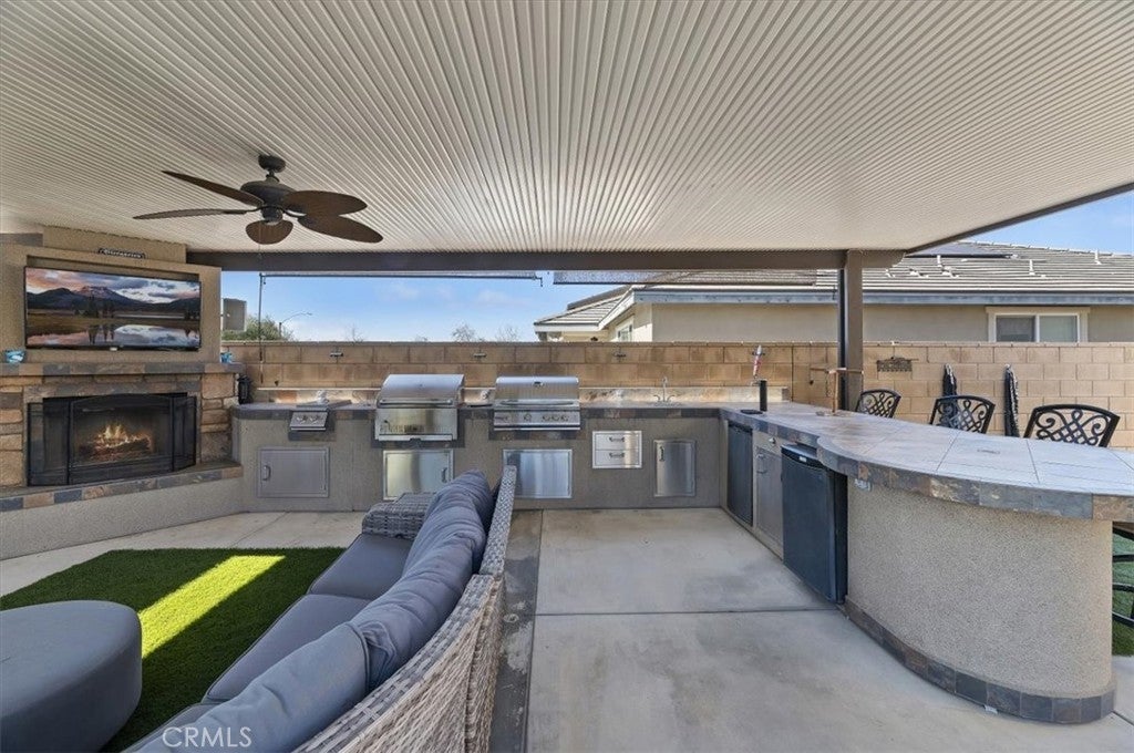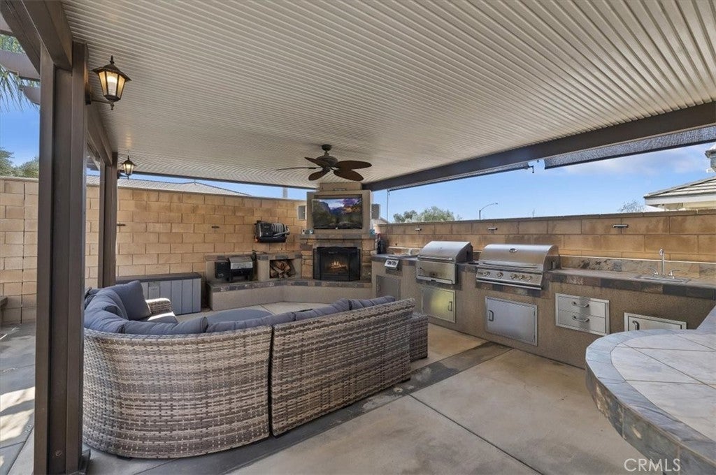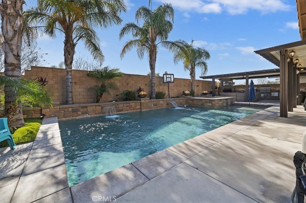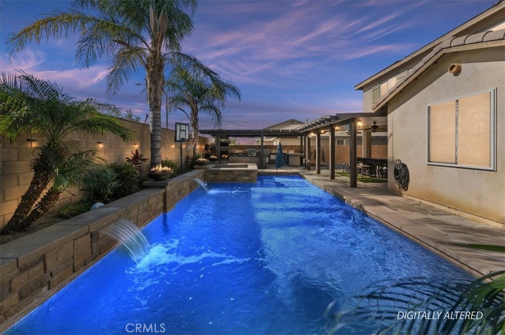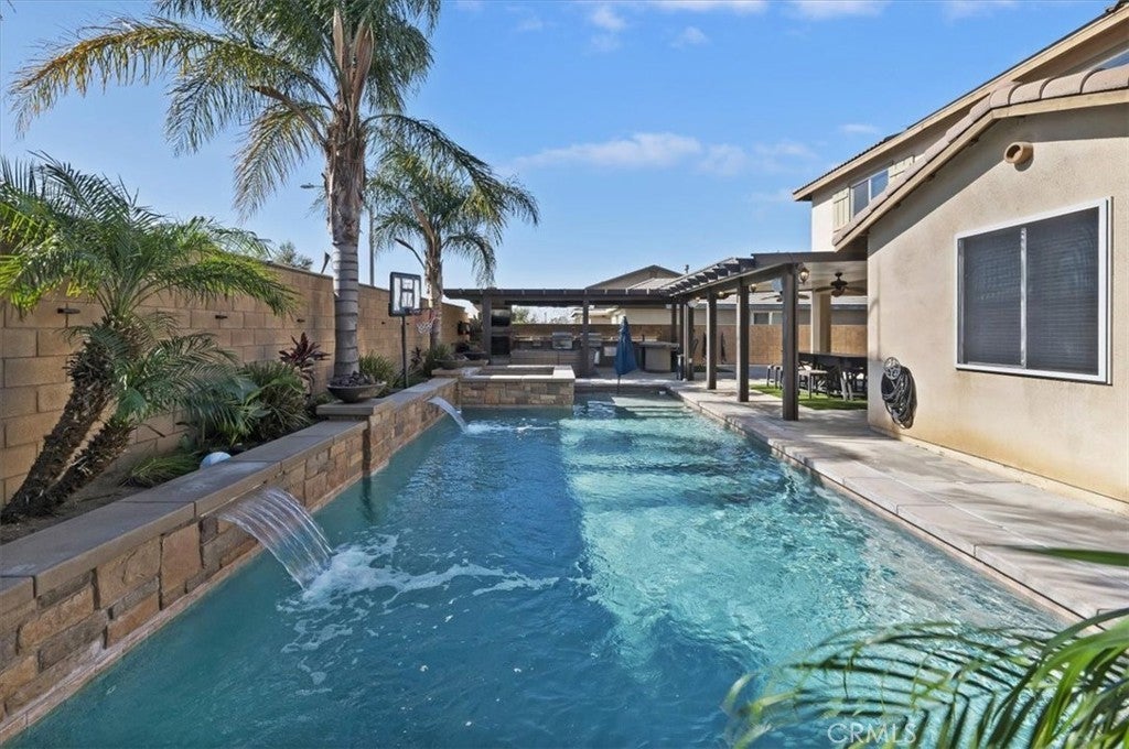 Hitting the market for the very first time! This well-maintained two-story home located in the Harvest Villages community of Jurupa Valley. If you’ve been searching for a home that truly checks all the boxes, your wait is over. This property offers exceptional space & flexibility, featuring 2 driveways with ample parking & dedicated RV access, ideal for parking an RV, camper, or boat & eliminating the need for off-site storage. Designed for year-round enjoyment, the backyard is an entertainer’s dream, showcasing a saltwater rectangular pool with sheer-descent waterfalls, beach entry, and an elevated spa. The outdoor space features a custom exterior fireplace with built-in wood storage, creating an inviting setting for evening gatherings. Fully equipped built-in barbecue area with multiple grills, an outdoor sink, refrigerator, & a tiled kitchen island with generous seating, all located under a covered Alumawood patio. A second covered Alumawood patio offers additional seating & outdoor entertaining space, making this backyard ideal for hosting. As you step inside, you’ll notice modern tile flooring throughout most of the first level, an office that can easily be converted into an additional bedroom, & a seamless open floor plan connecting the kitchen, family room, & dining area. The kitchen offers abundant cabinetry, stainless steel appliances, double ovens, a center island with seating & pendant lighting, a massive walk-in pantry, & a butler’s area, all overlooking the family room with a fireplace. The dining area is accented by a black farmhouse-style chandelier. A downstairs bedroom & full bathroom are conveniently located on the main level. The second level features a spacious loft, ideal for a media room or additional living area, along with a upstairs laundry room with extra storage and built-in shelving. Two generously sized secondary bedrooms share a full bathroom, providing comfortable accommodations. The primary suite serves as a private retreat, featuring a ceiling fan, dual sinks, a dedicated vanity area, a walk-in shower, and a soaking tub. The expansive walk-in closet is designed to easily accommodate a large wardrobe. Additional highlights include 33 solar panels owned by the seller, providing some energy savings. Everything is at your fingertips with a central location near MOST major freeways, Vernola Marketplace, and Eastvale Gateway for shopping and dining out. Don’t miss your chance to host poolside gatherings this year — act now!