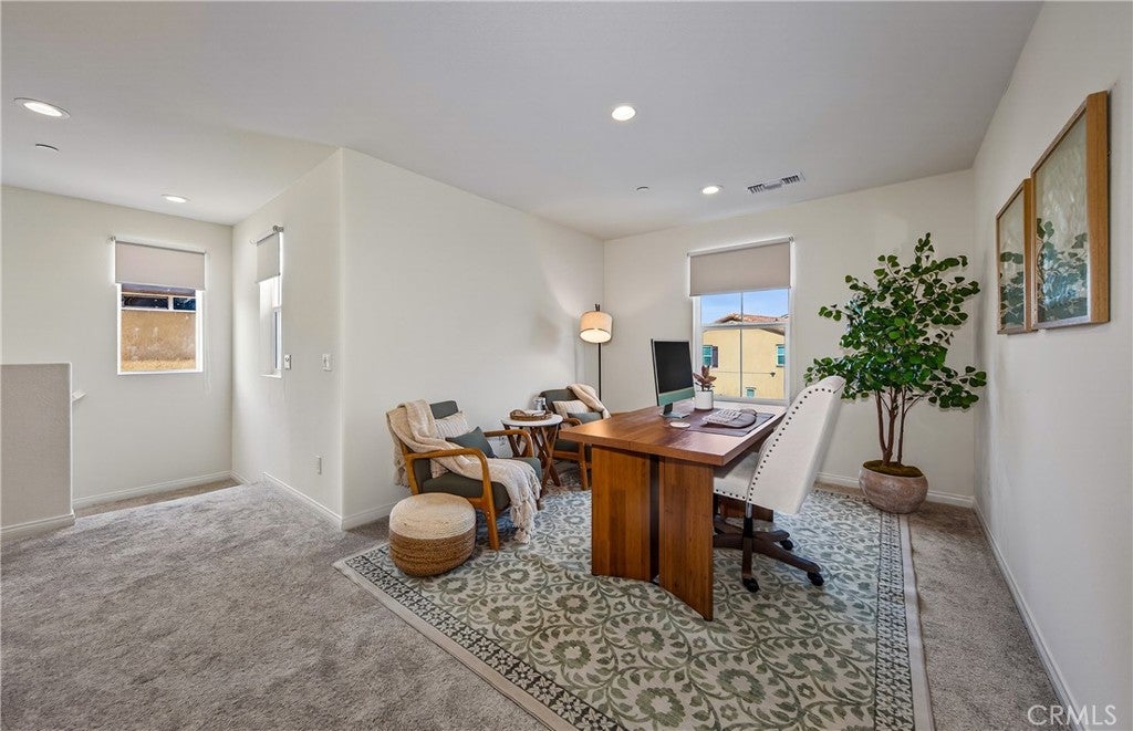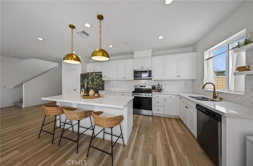 This home truly checks all the boxes: Prime location in the Spring Mountain Ranch community, smart layout, modern upgrades, and an easy, low-maintenance lifestyle. Ideal for a first-time buyer, growing family, or savvy investor, this thoughtfully designed residence offers comfort and functionality throughout. The open-concept first floor seamlessly blends the kitchen, living, and dining areas—perfect for everyday living, entertaining, and multitasking. The kitchen is a standout, featuring a large center island, upgraded quartz countertops, stylish backsplash, pendant lighting, recessed canned lights, and upgraded cabinetry, all complemented by durable vinyl flooring and 9-foot ceilings that enhance the sense of space and light. Media cord-hiding outlets add a clean, modern touch. Upstairs, you’ll find all three bedrooms, a versatile loft ideal for a home office, gym, or play area, and a convenient laundry room, keeping daily routines efficient. The bedroom layout offers privacy and separation from the main living spaces, while a downstairs half bath is perfect for guests. Additional highlights include: Leased Solar at approx. $117/month Low HOA of approx. $110/month Open floor plan with abundant natural light. Upgraded lighting and finishes throughout. Located in a well-maintained community close to shopping, dining, schools, and commuter routes, this home delivers modern living with long-term value. Come see if this is the home for you before it is gone...
