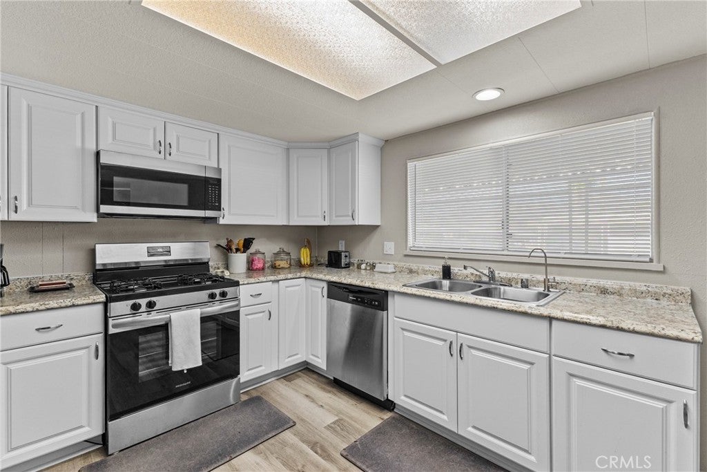 Upgrades galore at Casa Del Rey a 55+ active community bring your most picky buyers! Home features an open floor plan with a generous sized living room, Vaulted ceilings and new paint inside and out, recently installed double pane windows for more power efficiency and block unwanted noise, also newly installed roof. Recently installed laminate flooring in all common areas with carpet only in the bedrooms. Kitchen offers a combo of stainless steel appliances with plenty of storage room and features and extra sink. Updated bathrooms with very unique features. There is also a more cozy family room past the kitchen home is overall an entertainer. Home is a must see.