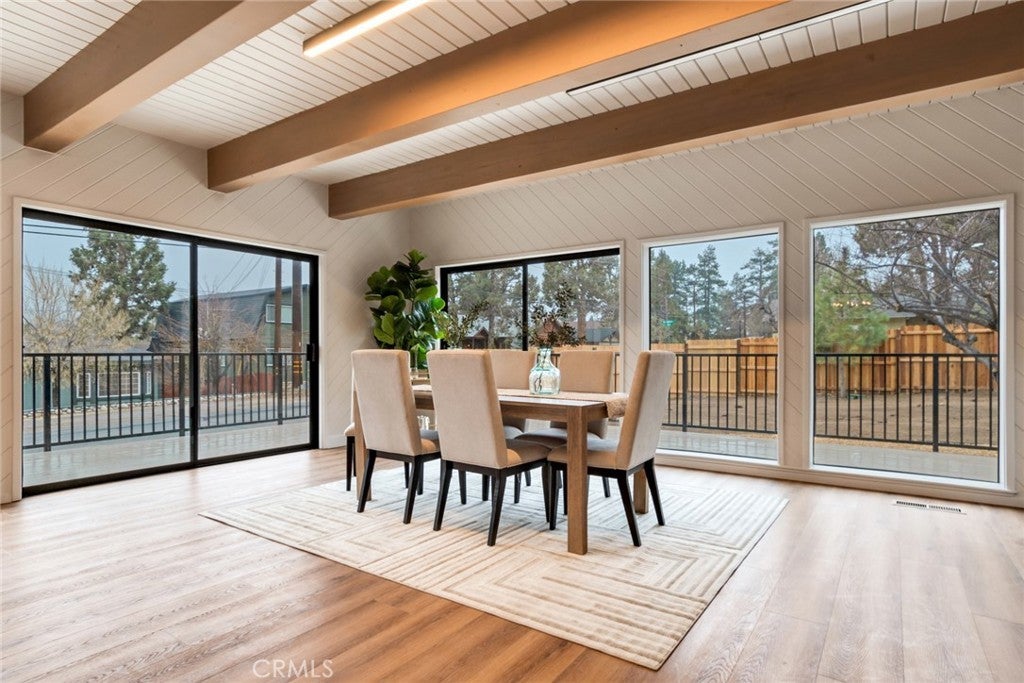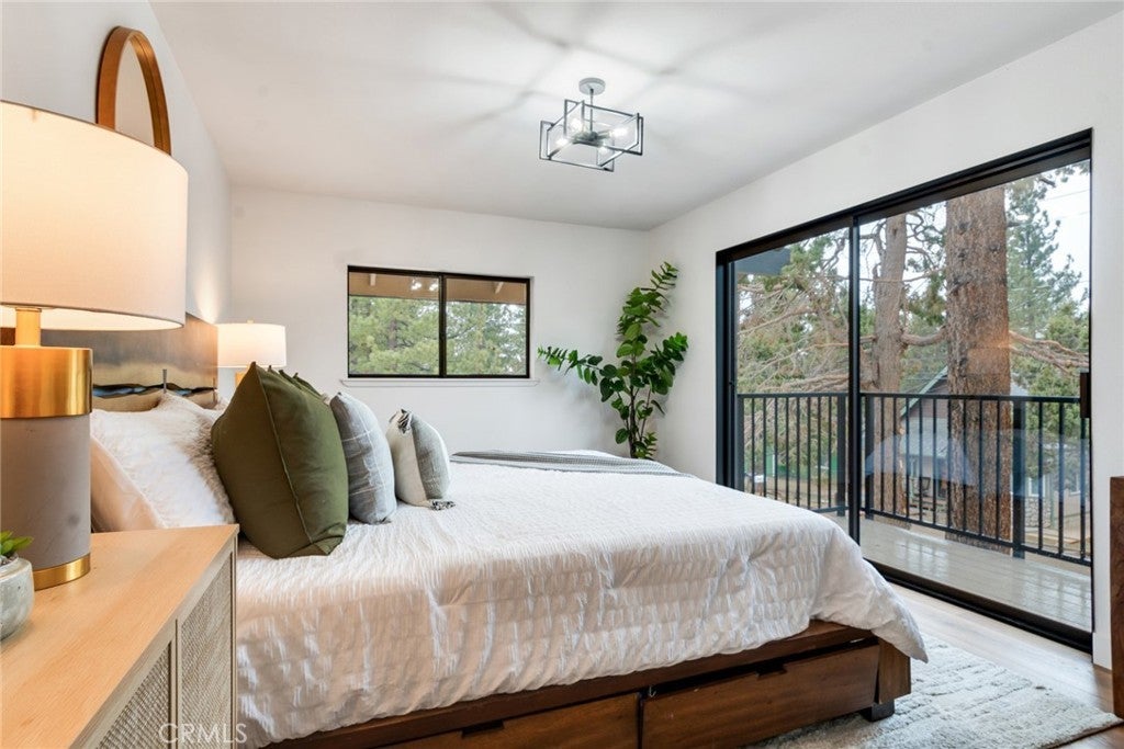 Fully renovated luxury mountain retreat just minutes to the slopes, Big Bear Lake, and The Village! This professionally designed 2,660 sq ft home offers 4 bedrooms, 3.5 baths, and a 2-car garage with brand-new systems throughout including HVAC, roof, water heater, electrical, insulation, and windows — offering lasting quality and comfort. High-end finishes include premium appliances, designer fixtures, and custom hardware. The spacious chef’s kitchen features a walk-in pantry, bar area, and wine fridge, perfect for entertaining. The primary suite boasts a private balcony with mountain and ski slope views, spa-style ensuite with double vanity, and walk-in closet. Three additional bedrooms include one with a private balcony and one with its own half bath. Bright great room with wall-to-wall windows, tongue-and-groove ceilings, original wood beams, and stone fireplace. Glass doors open to a wraparound deck, new hot tub, fenced yard, RV/boat parking, and ample space with potential for additional guest accommodations or flexible use, subject to local regulations.