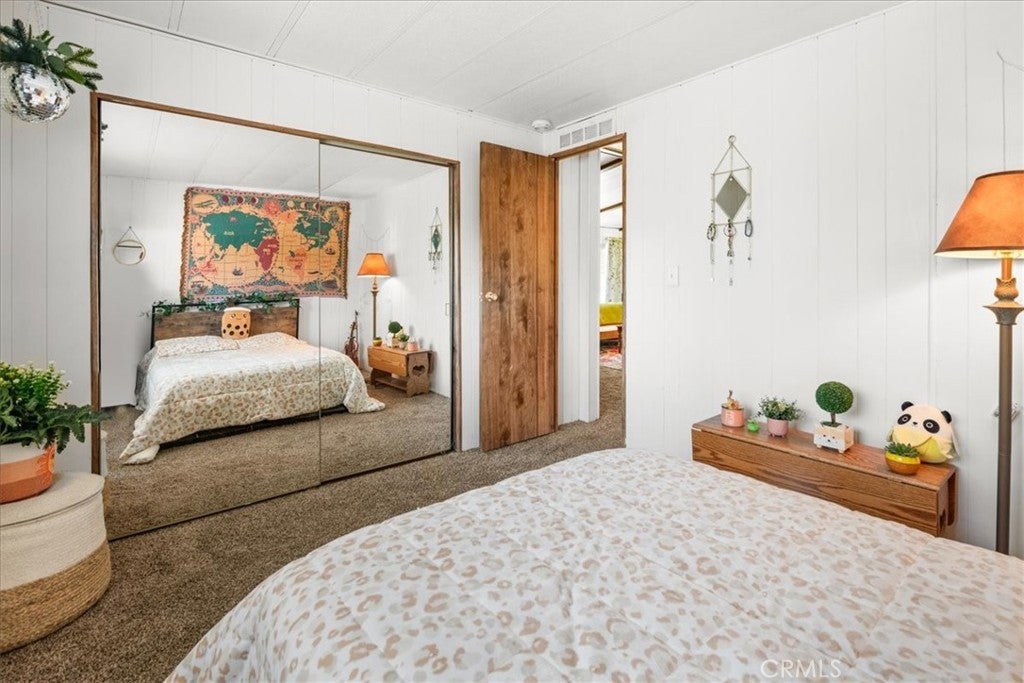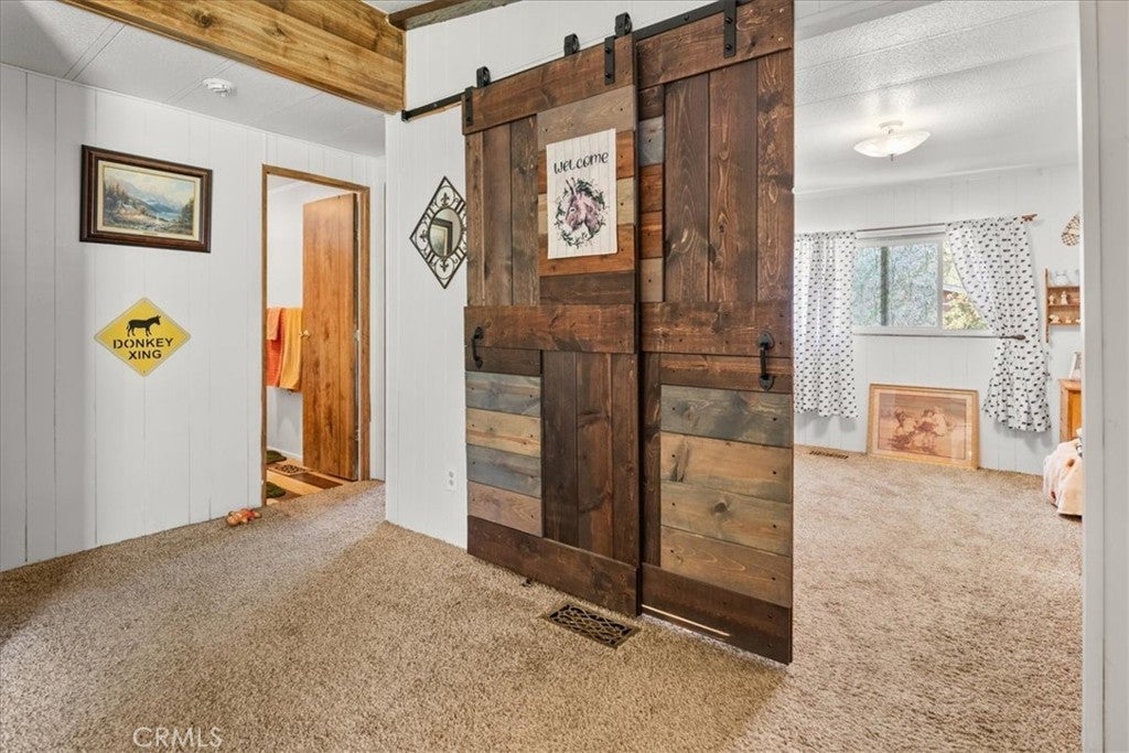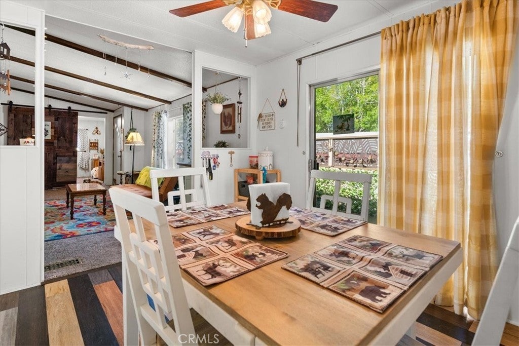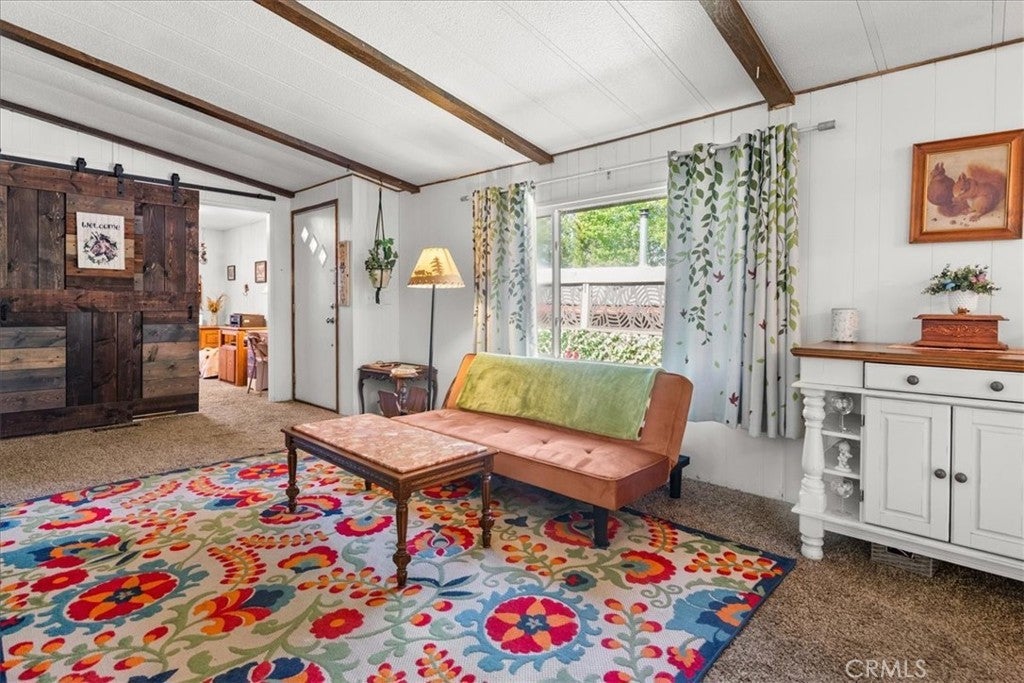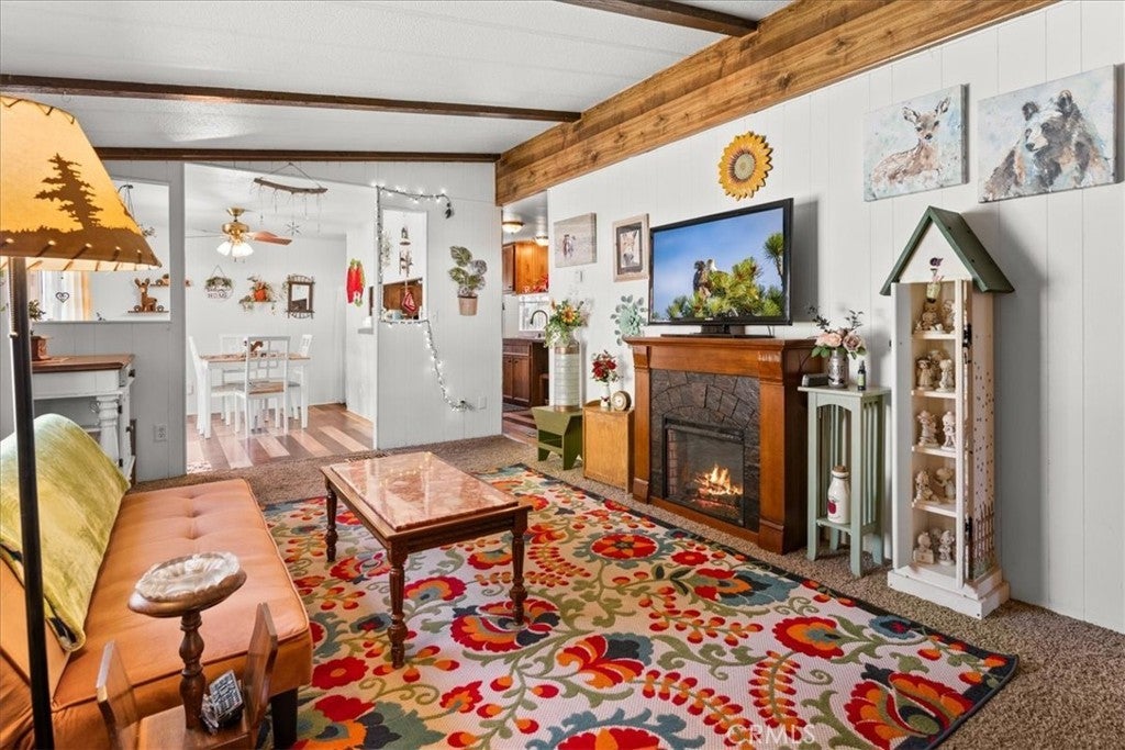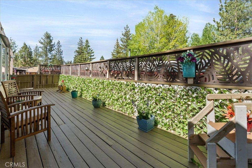 Own the Land & the Lifestyle in Big Bear! Welcome to your modern mountain sanctuary in the highly coveted Whispering Pines. Unlike many parks, here you own the land, providing long-term value and peace of mind. This 3-bedroom, 2-bath doublewide has been thoughtfully updated with stylish barn doors, a cozy electric fireplace, and fresh flooring and paint throughout. The clean, bright interior features a separate dining room that opens directly onto a private deck—ideal for crisp mountain mornings. The property offers a new water heater and rare outdoor space, including fenced front and rear yards, plus a storage shed. Because the home backs up to a common ground easement, you enjoy an extra sense of privacy. Located just 15 minutes from the Lake, the Village, and the slopes. Financing available.