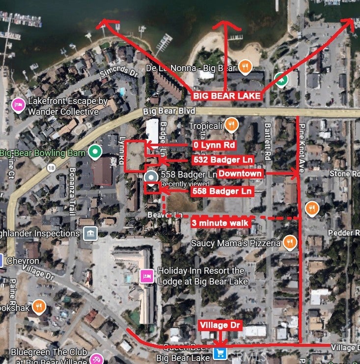 Welcome to 532 Badger Ln. A prime commercial opportunity in the heart of Big Bear Lake’s Village. This 1,866 sq.ft. updated retail building, formerly a lighting and home goods store, offers excellent visibility and flexibility within the highly sought-after Village Specific Plan area. The property supports a wide range of potential uses and is zoned Commercial Lodging, creating a unique opportunity to convert the existing structure into a boutique B&B or other lodging concept. Located just steps from Big Bear Lake, the Village’s restaurants, shops, and year-round attractions, this is a true walkable destination that benefits from strong pedestrian traffic and consistent tourism. The property may also be purchased in conjunction with an adjacent lot (0 Lynn Rd - offered at $749,900) that includes preliminary plans for a 24-unit hotel, providing a compelling assemblage opportunity for developers or investors seeking scale in a premier location. Ideal for owner-users, investors, or developers looking to capitalize on one of Big Bear’s most vibrant commercial corridors. Buyer to conduct all due diligence with the Planning Commission regarding permitted uses, zoning, and development potential. Seller is willing to give concessions to buyer at closing.