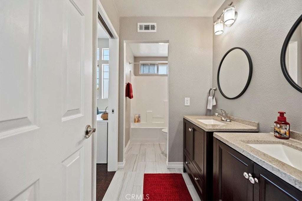 Desirable Corona home that features 4 bedrooms, 3 bathrooms. Natural light, large windows, and glass doors maximize spacious formal living and dining room with high ceilings. Updated kitchen with granite countertops, stainless steel appliances refrigerator included, double oven great for the holidays, recessed lighting. Designing a family room with a fireplace is a great opportunity to create a cozy, functional space for gatherings. Built in cabinets in family room. Downstairs bedroom with a bathroom that is great for a guest or extended family to stay. Upstairs features a Jack and Jill bedroom/ bathroom layout. It gives private bedroom access while sharing one full bathroom efficiently with double vanities. Upstairs primary bedroom and bathroom layout is designing to create a calm and comfortable retreat. Primary bathroom features double sinks, newer vanity, soaking tub, separate walk-in shower, and closets have been upgraded with closet organizers. Ceiling fans throughout the home. Washer and dryer are included. 3 car attached garage with direct access ample amount of storage in garage. Gorgeous private backyard that features a resurfaced inground pool and spa with no back neighbor and views of the hills behind, Large alumawoood patio with ceiling fans. Built in BBQ. Great curb appeal. This a is a must-see turnkey home!