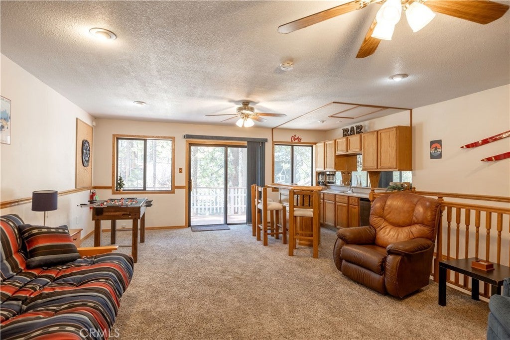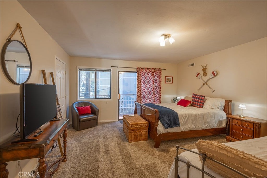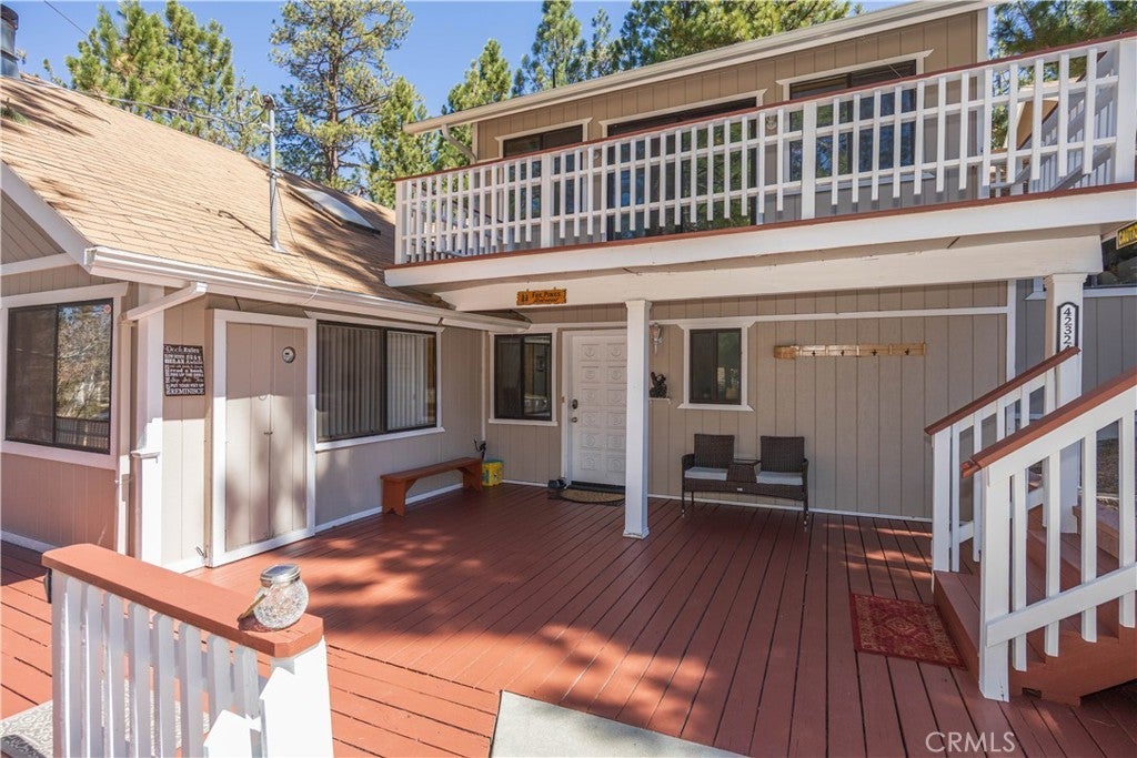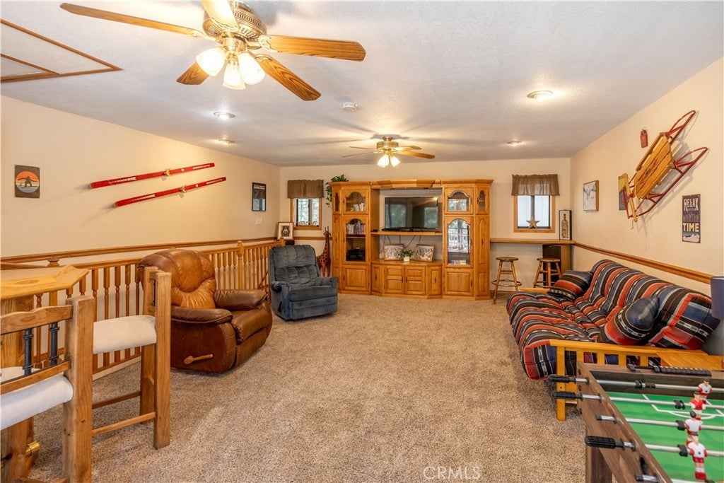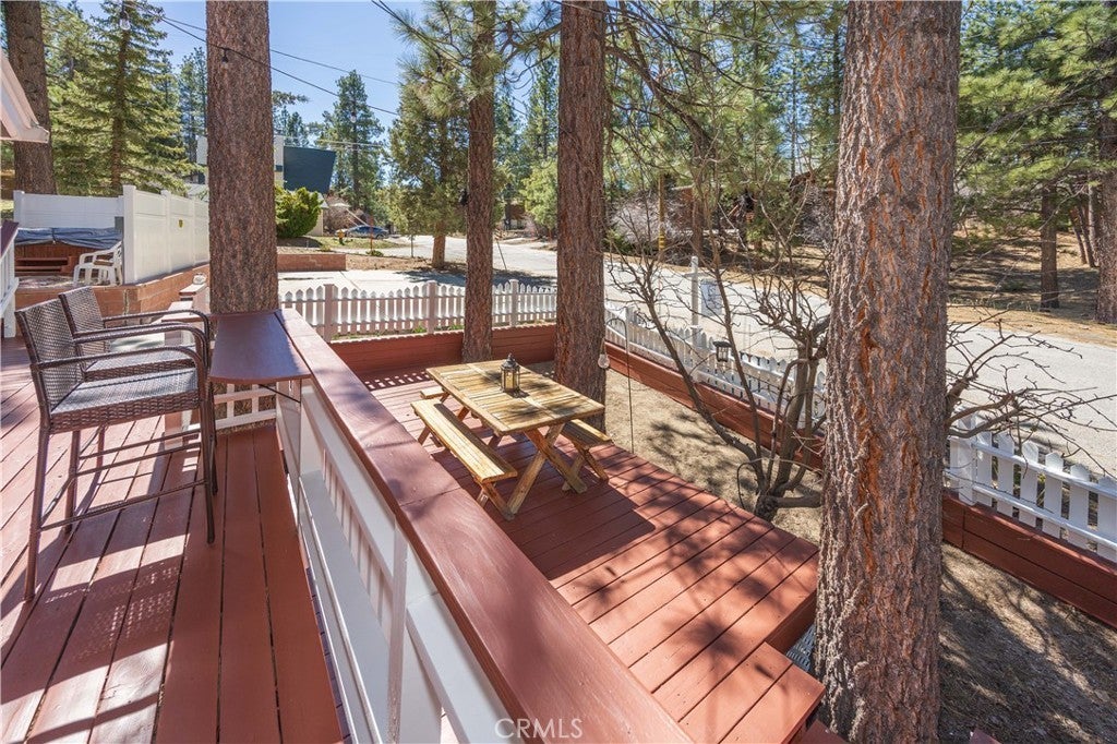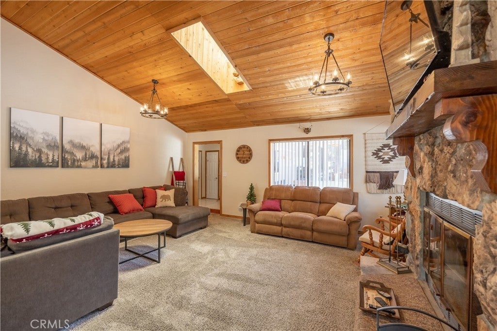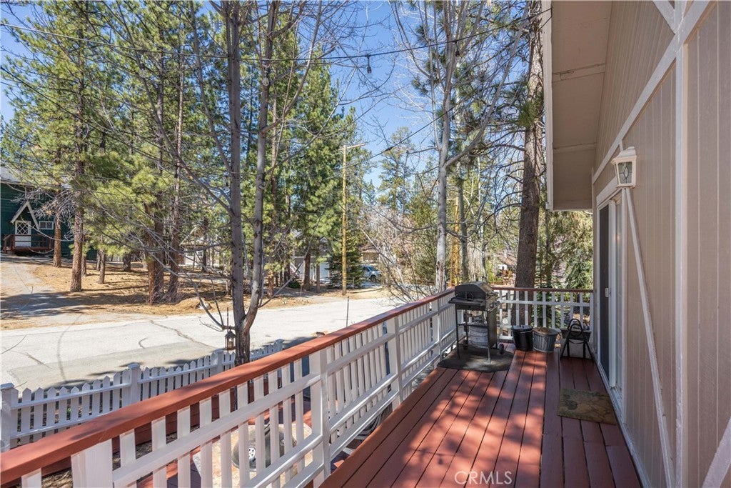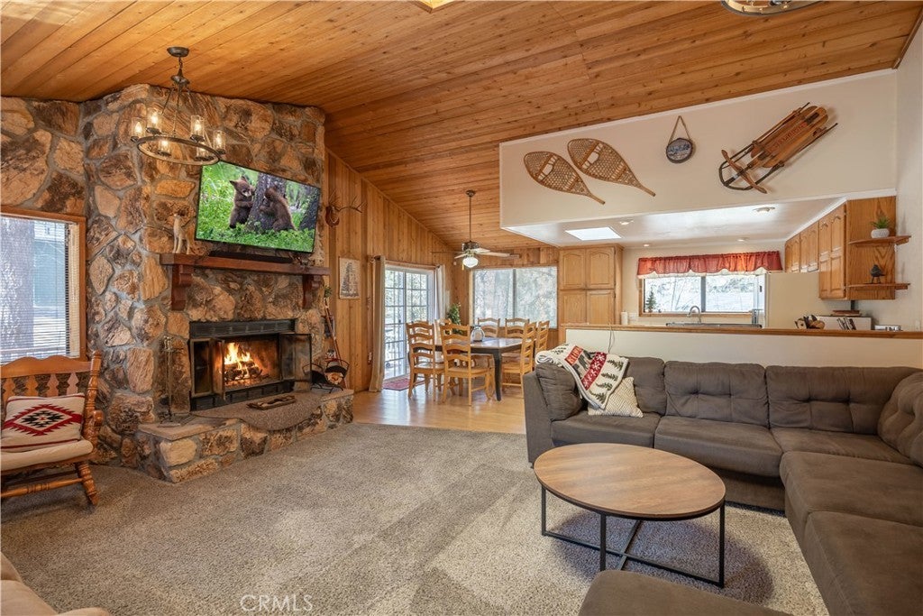 Experience the best of Big Bear living in this well-maintained Fox Farm home, tucked away on a quiet, peaceful street far from traffic. Built with a comfortable open-concept layout, the interior centers around a sun-drenched "Great Room" with high wood-beam ceilings, natural skylights, and a solid floor-to-ceiling stone fireplace. This space flows right into the kitchen—fitted with a stainless-steel range and handy pull-out pantry storage—and a dining area where glass sliders open to a large cedar deck. It is a great spot for a summer BBQ or a soak in the outdoor hot tub, which has been recently updated with a brand-new heater and digital controller. The home’s three bedrooms include a roomy primary suite and a guest bath with both a soaking tub and a separate shower. A standout feature is the upper-level entertainment area: a massive, dedicated game room with a built-in wet bar, built specifically for hanging out with friends and guests after a day on the mountain. Beyond the living space, the home offers practical features that make mountain living easier, like a newly installed high-efficiency gas furnace, a two-car garage, and a dedicated workshop for tools and projects. The flat, oversized lot also provides plenty of room to park a boat or an RV. Located just minutes from both ski resorts and the main grocery stores in town, this property is a solid, turnkey choice for a full-time home, a weekend getaway, or a seasonal rental.