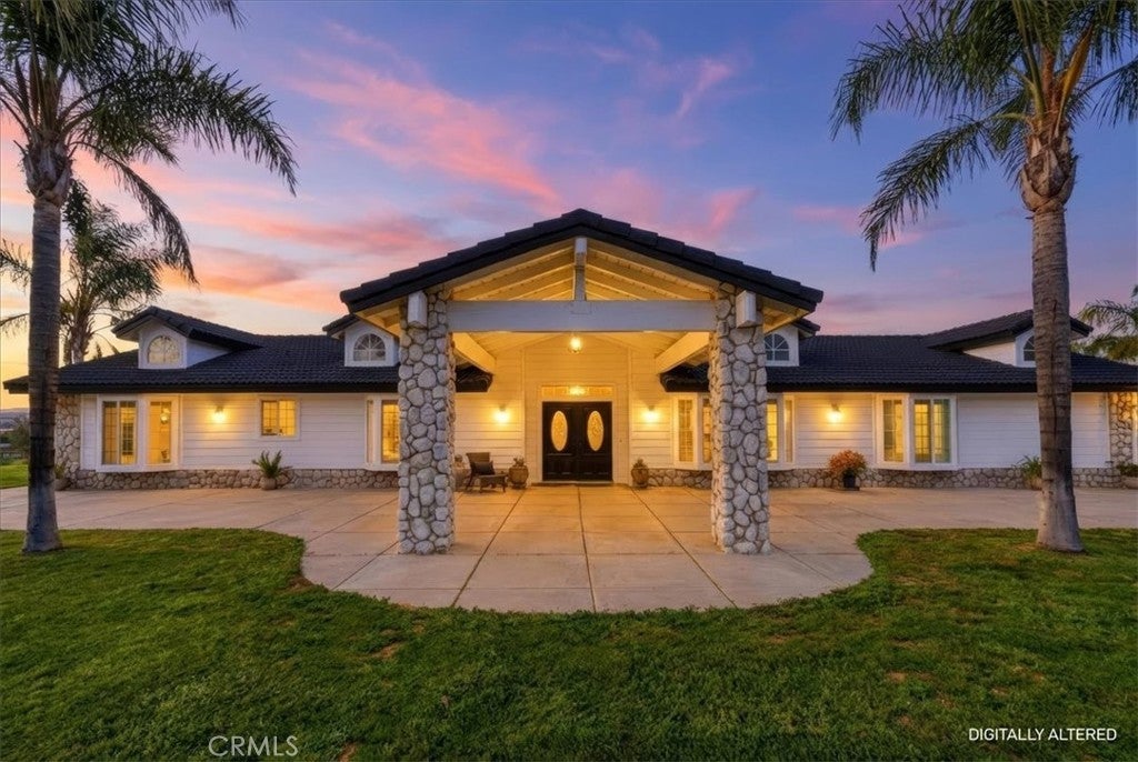HUGE WAREHOUSE 7,200 SQFT ON 10 ACRES of land with a GORGEOUS CUSTOM BUILT HOME that has amazing views. RARE opportunity to own this property that has so much to offer. LIVE AND WORK OR PERFECT FOR HOBBYIST. It is gorgeous with an expansive open floor plan and perfect for a large family. Beautiful BRAND NEW TILE ROOF, BRAND NEW TILE WOOD-LIKE FLOORS and BRAND NEW INTERIOR AND EXTERIOR PAINT. 4 spacious bedrooms and 3.5 bathrooms allows for plenty of space and separation. The ENORMOUS kitchen features brand new stainless steel appliances such as double ovens, perfect for holiday cooking, a cooktop with a downdraft and new dishwasher. The kitchen overlooks the large family room where your whole family can enjoy and you can entertain for large gatherings. Living room features a rock fireplace with a heaterlator Quadra-fire-insert blower that will warm the whole house up and surround sound. One bedroom and full bathroom is on opposite side of the home, and the primary bedroom is oversized with a walk-in closet. The WORKSHOP IS MASSIVE with 7200 sqft (60x120 feet) and 2 14 foot high roll-up doors that you can drive SEMI TRUCK THRU! 2 additional 10 foot roll up doors as well. The workshop has reinforced extra thick stamped concrete perfect for parking a SEMI truck or heavy equipment. It was constructed to be a 2 story building (please see permits or city). This property is located in the County of Riverside and was rezoned recently for storage parking as well. Perfect way to make extra income. There are 5 entry ways to get on the property making a perfect space for separation if you run a business from the property. It is also horse property and would make a great ranch. The workshop is also built to make the workshop an indoor barn. Possible future development adds even more flexibility for this property. There are endless possibilities and usages for the new buyer. Septic system was just pumped and serviced and the propane was just filled.