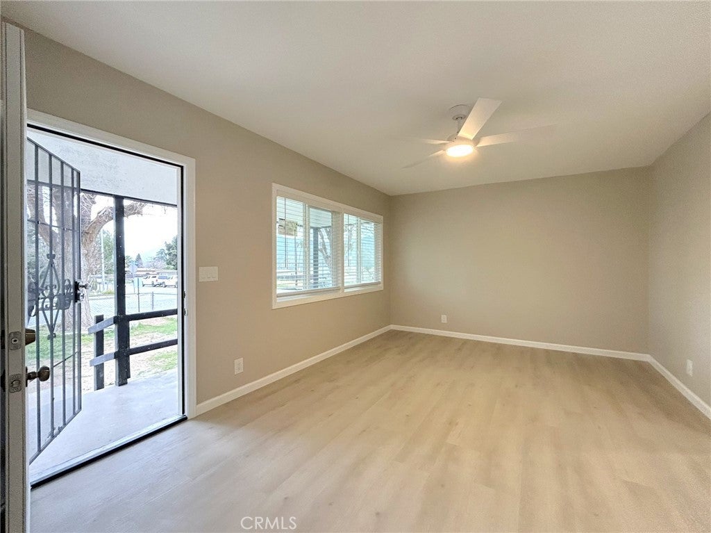 Newly Updated Single-Story 2-Bedroom in Banning! This unit has New Exteriot and Interior Paint, New Windows, and No Common Walls. Brand-New Vinyl Plank Flooring throughout and a New Ktitchen and Bathroom. All-New Kitchern Cabinets, Countertops, Stove/Oven (gas), Refrigerator, and Garbage Disposal. Ceiling Fans throughout, a Window AC Unit, a Wall Heater, and Washer/Dryer Hookups (garage). Other features include a Fenced Yard with a Covered Patio and a Single-Car Detached Garage. Tenant pays Trash, Sewer, Gas and Electric, but Water is Provided! Will Consider 1 Small Dog--No Cats Please.