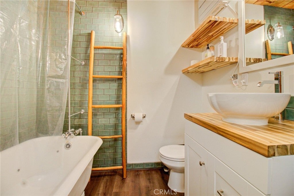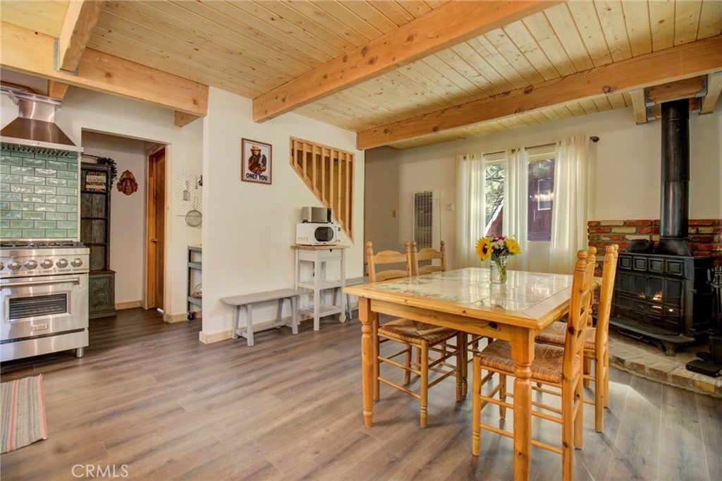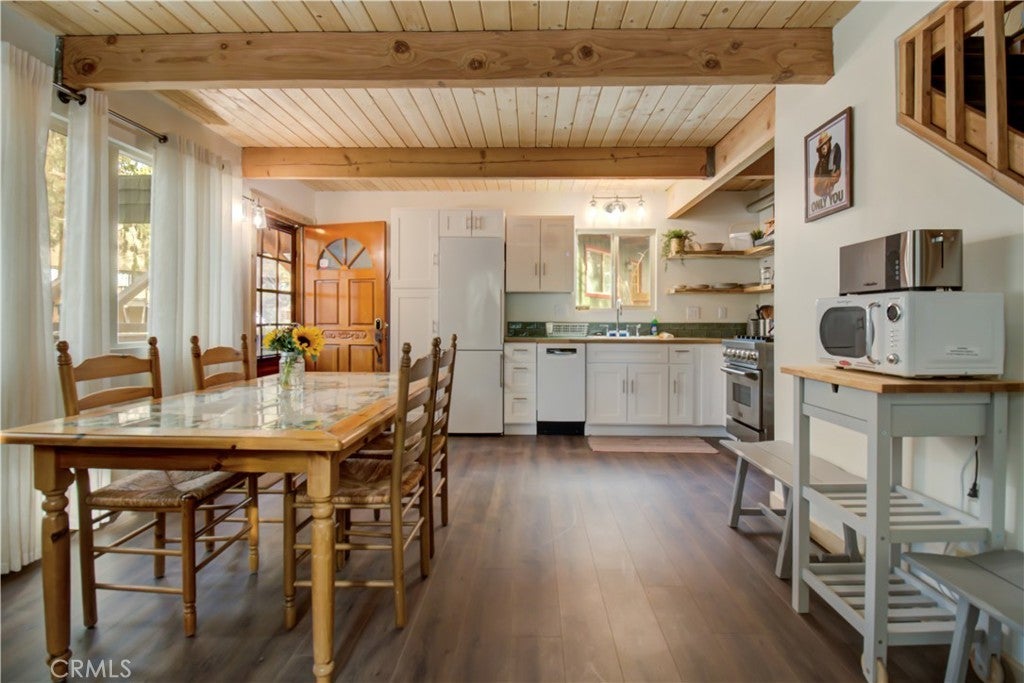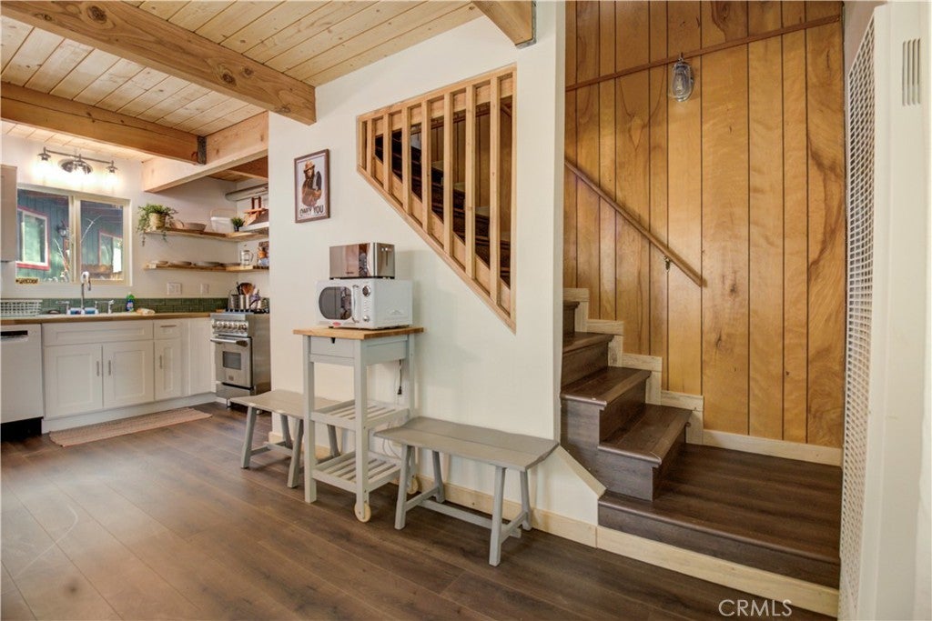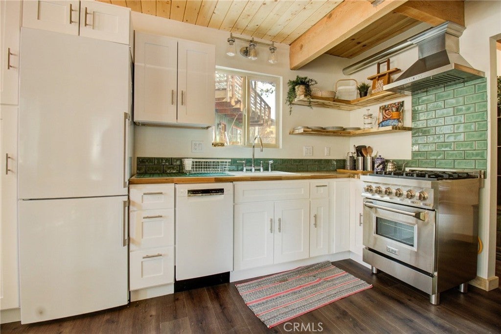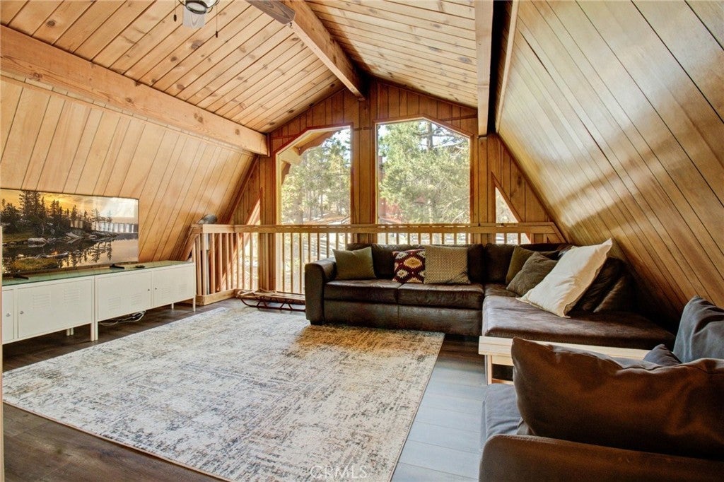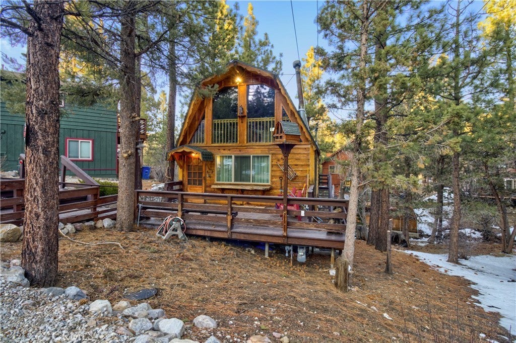 Beautifully remodeled mountain cabin tucked along a quiet dead-end road in Big Bear City, offering privacy, treetop views, and that true cabin-in-the-woods feel. Renovated down to the studs, this home blends clean, modern finishes with warm mountain character throughout. Upgrades include newer appliances, updated double-pane windows, and a thoughtfully designed bathroom featuring a clawfoot tub, stylish bowl sink, and custom touches. The functional multi-level layout provides comfortable living space with beamed ceilings, a cozy fireplace setting, and abundant natural light. Step outside to enjoy three separate decks—ideal for morning coffee, outdoor dining, or relaxing under the pines. Two of the decks overlook the trees, creating the peaceful retreat atmosphere buyers seek in a Big Bear getaway. A seasonal creek running through the backyard adds to the tranquil setting and enhances the true mountain experience. The unfinished buildup area offers valuable additional space with potential for a game room, workshop, laundry room, or generous storage—perfect for mountain gear, seasonal items, or future customization. Location is a standout feature. Situated in a tucked-away neighborhood yet centrally located, you’re just a 10–20 minute drive to the Alpine Zoo, golf course, ski resorts, grocery stores, and The Village for shopping, dining, and entertainment. Even better, the National Forest and scenic hiking trails are right out your front door, providing immediate access to year-round outdoor recreation. Whether you’re looking for a full-time residence, weekend escape, or short-term rental investment, this property offers upgrades, flexible space, and a prime mountain setting. A fantastic opportunity to own a move-in-ready Big Bear cabin in a desirable location. Information is deemed reliable but not guaranteed. Buyer and buyer’s agent are responsible for independently verifying all information.